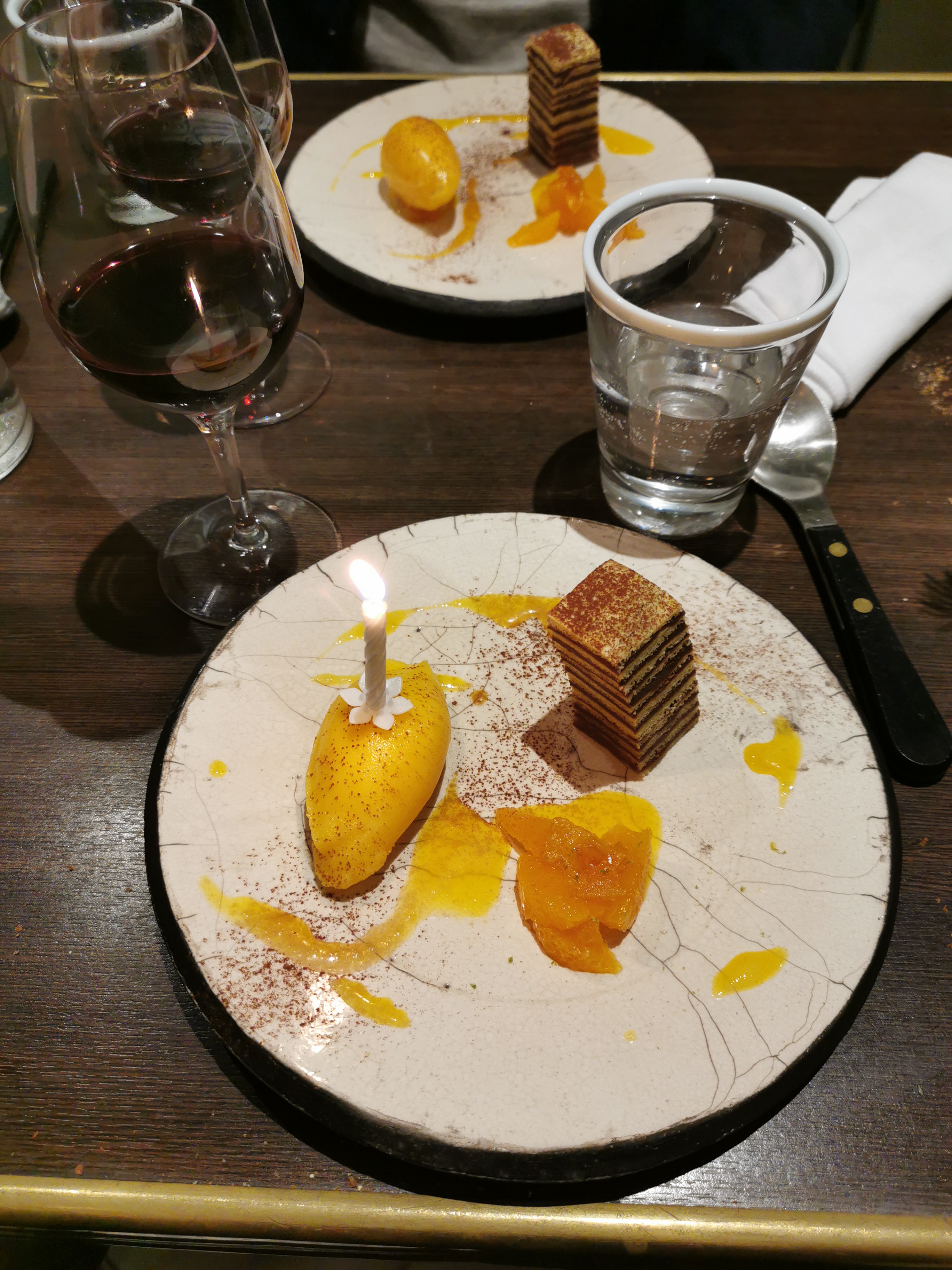 Endroit étrange. Lorsqu'elle était occupée, l'atmosphère était correcte, lorsqu'elle était presque vide, elle semblait presque austère. Ma nourriture (ris de veau) était savoureuse, bien que trop riche, celle de ma femme était un très bon plat de langoustines. La raison pour laquelle cela a été réduit est que le serveur a emporté la nourriture que ma femme mangeait encore. Nous avons eu les 5 dégustations dont 3 sur 5 étaient excellentes et ma femme était encore en train de savourer lorsque le serveur a ramassé les assiettes et les a emportées sans demander - pas des gars géniaux. Le serveur était sympathique mais trop impatient et pas très bien formé. La bouteille de vin que nous avons commandée était un blanc sec mais il n'en restait plus, notre serveur nous a donc recommandé une alternative dans le même style, qui était un vin doux - encore une fois, pas génial. Dernier point mais non le moindre, la nourriture est à un prix raisonnable, mais pas le vin, les bouteilles les moins chères coûtent 65 € - ce qui, à mon avis, était cher pour ce qui est proposé.