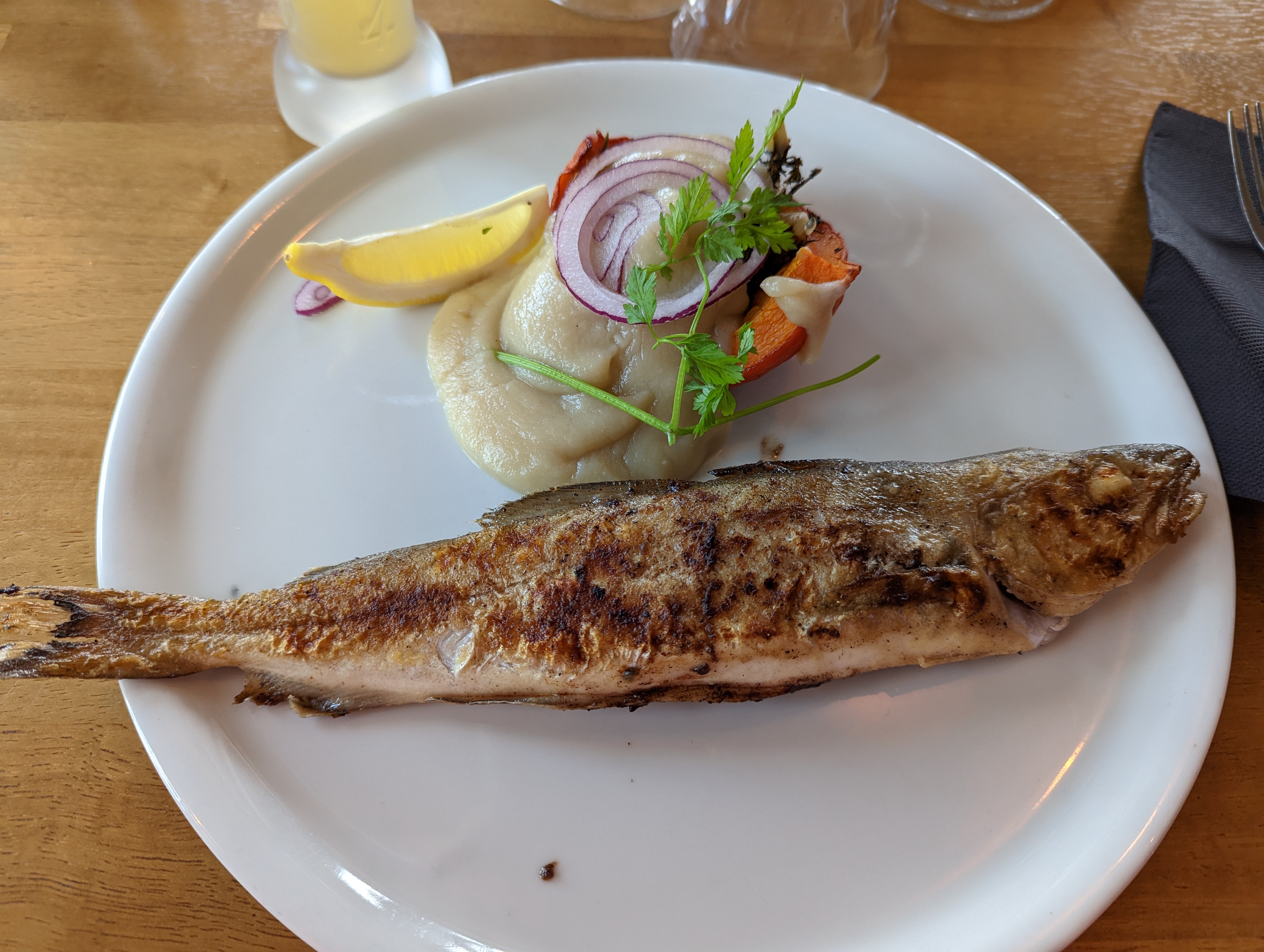 Restaurant certainement en rodage, le lieu est vraiment sympa, la vue est sympa, mais le personnel, qui au passage est très agréable, ne suit pas Il faut demander plusieurs fois les choses. Côté cuisine je suis assez déçu, j'ai voulu prendre un repas un peu diète. Entrée crudités, plat poisson et salade de fruits en dessert. Mis à part le dessert le reste est très gras ce qui est un peu indigeste. Côté addition il faut compter 18 euros midi entrée plat et dessert. Je ne pense pas y retourner tout de suite.