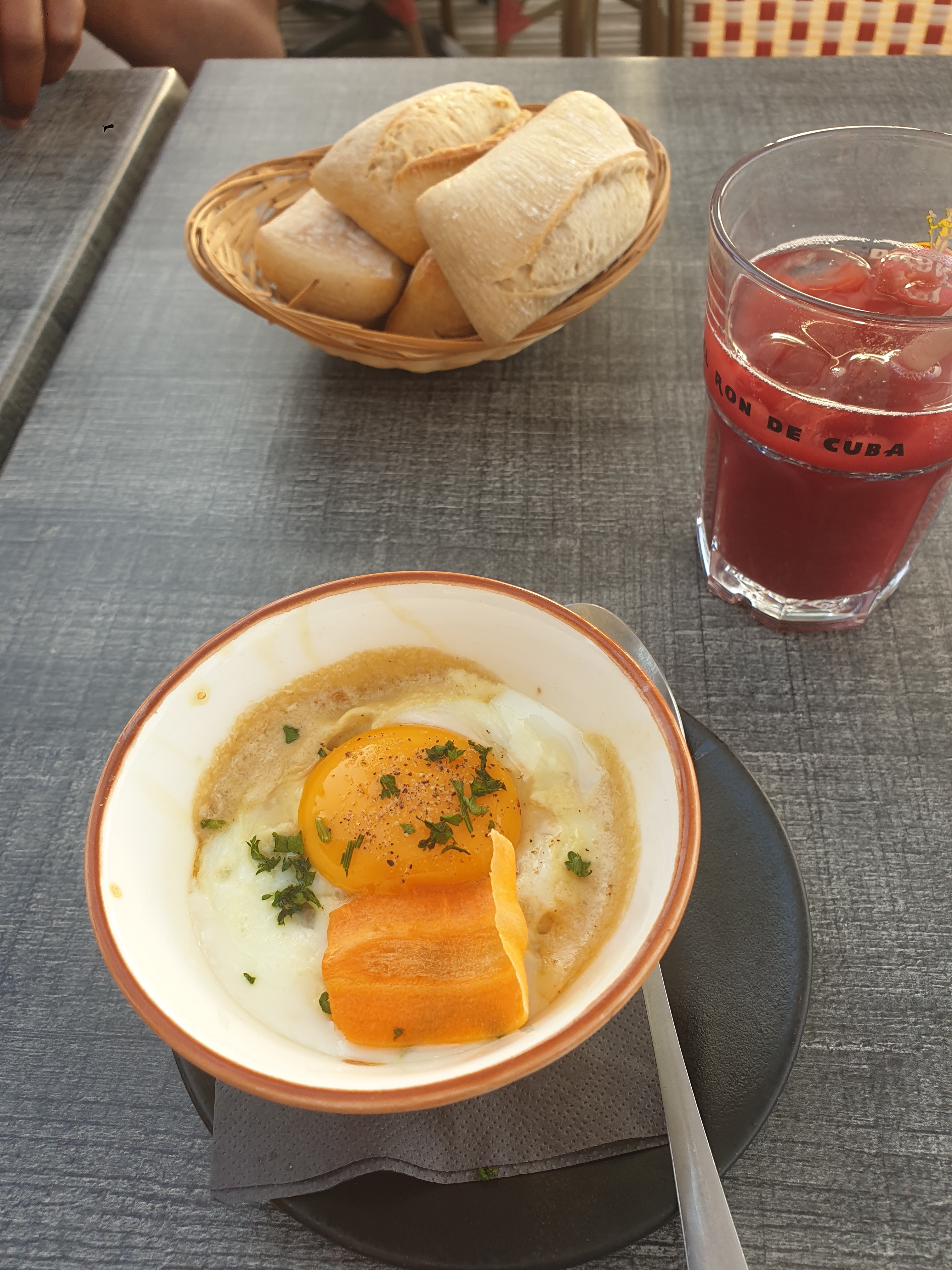 Restaurant très bien placé avec une déco sympa. Ne pas s'attendre à un concept autour de la volaille et de l'œuf malgré le nom du restaurant et la déco axée sur le poulet. Peu de choix sur la carte à mon sens qui ne correspond pas a ce qui est proposé sur internet et le camembert ( le 1/2) à 20e sans frite est un peu cher . Le serveur agréable qui omet de demander ce que nous souhaitons boire en mangeant et nous avons du aller au comptoir chercher un verre de vin. Le cuisine généreuse et plats très bons . Le cuissot à la main lourde sur les assaisonnements ( poivre, vinaigrette et miel ++) . Peu de monde pour un samedi soir . Nous y avons tout de même passé un bon moment