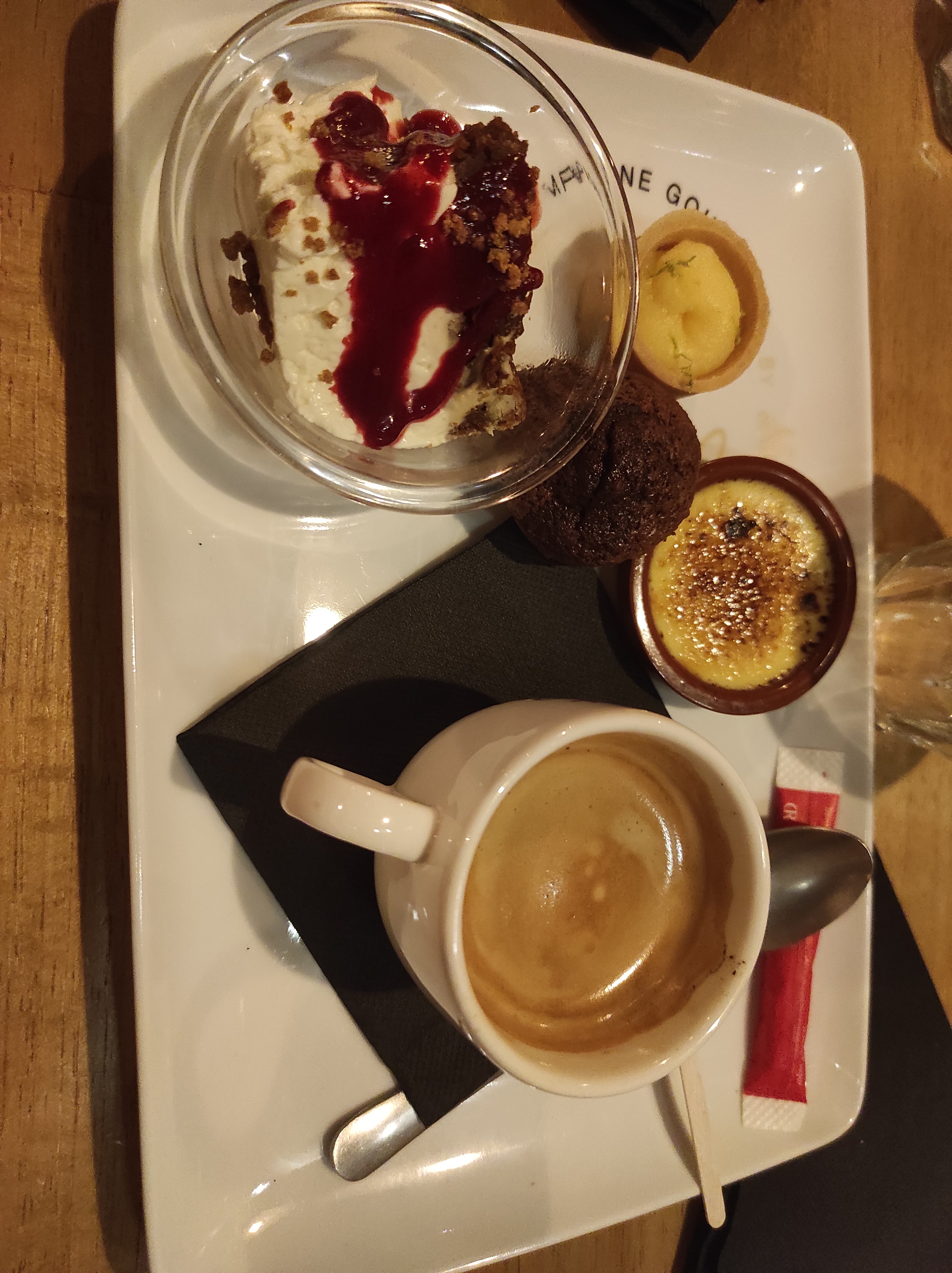 Une catastrophe ! La verrine pour l'entrée n'est pas du tout adaptée, très compliqué pour aller chercher la nourriture dedans. La malheureuse tranche de citron avait 2 gros pepins. Le cochon était beaucoup trop sec difficile à avaler et on cherche la sauce.les mignatures pour le thé gourmand vraiment pas bonnes du tout et pourtant je ne suis pas difficile. Rapport qualité prix médiocre