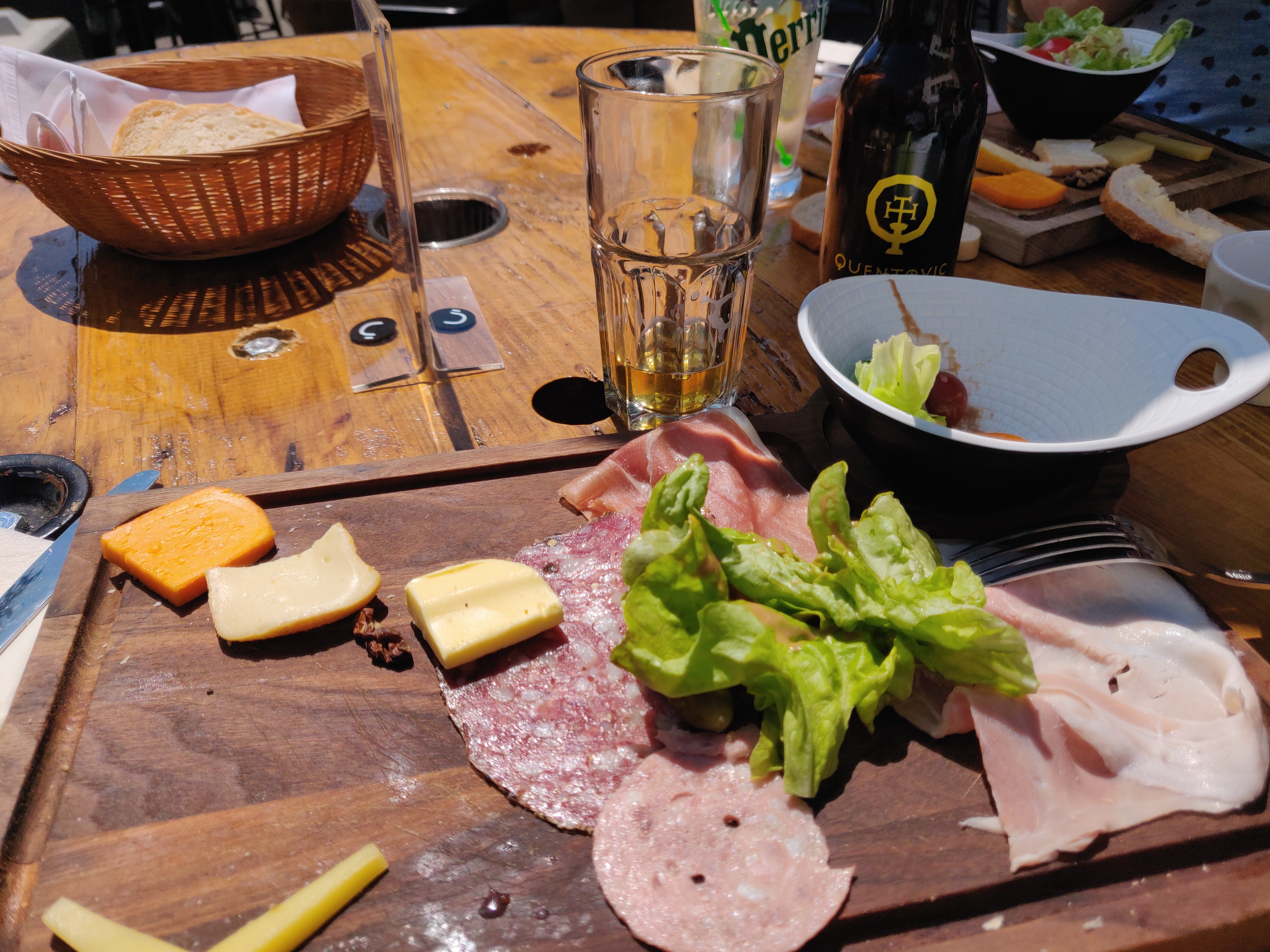 Personnel aux petits soins. Nous avons pris 2 planches, elles étaient très copieuses. Le cadre de la terrasse intérieur est tout simplement un moment de paie et de bonheur. Je recommande en tous points ce restaurant.