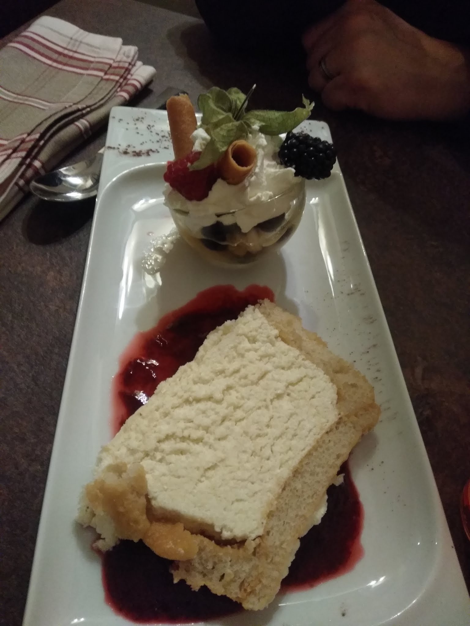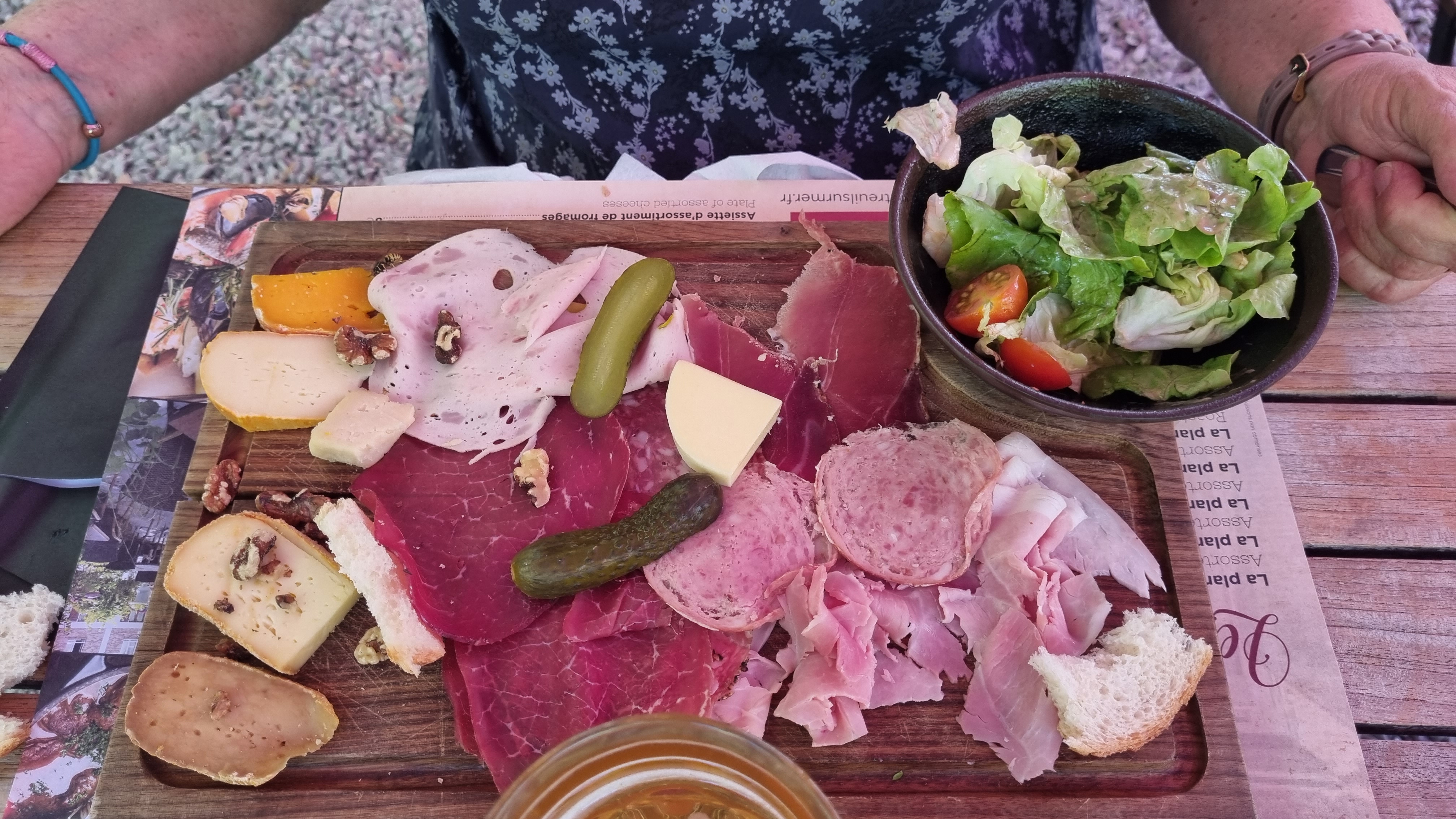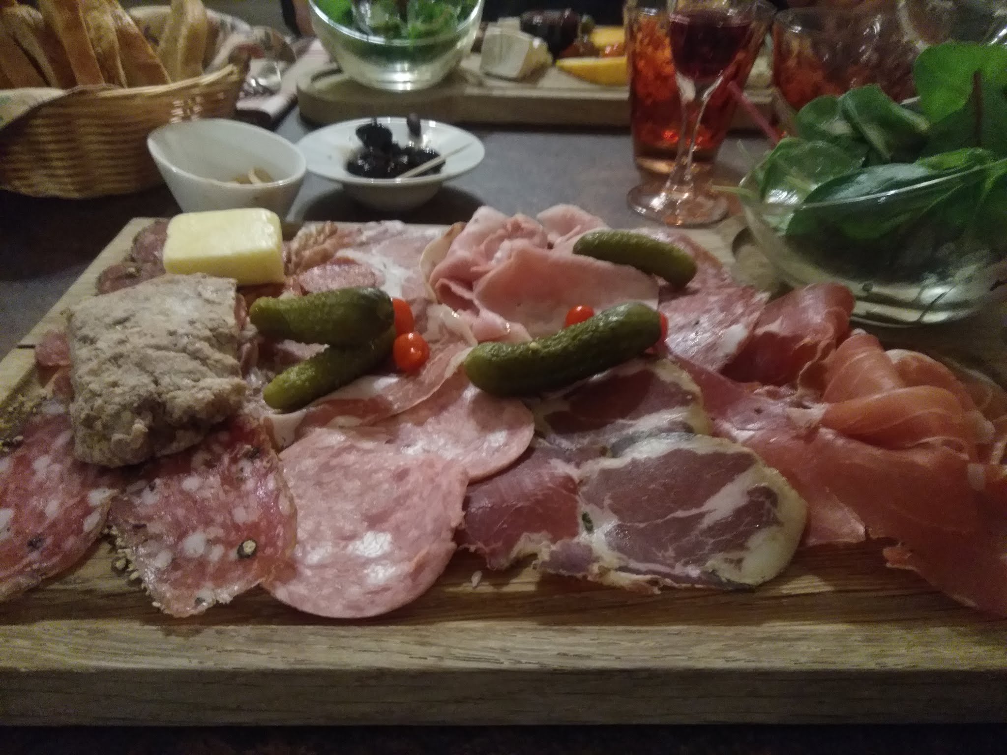 Planche de charcuterie de très bonne qualité et une charlotte délicieuse, peut être juste un peu trop de coulis fruit rouge à mon goût mais ça, ca dépend des personnes, à te faire