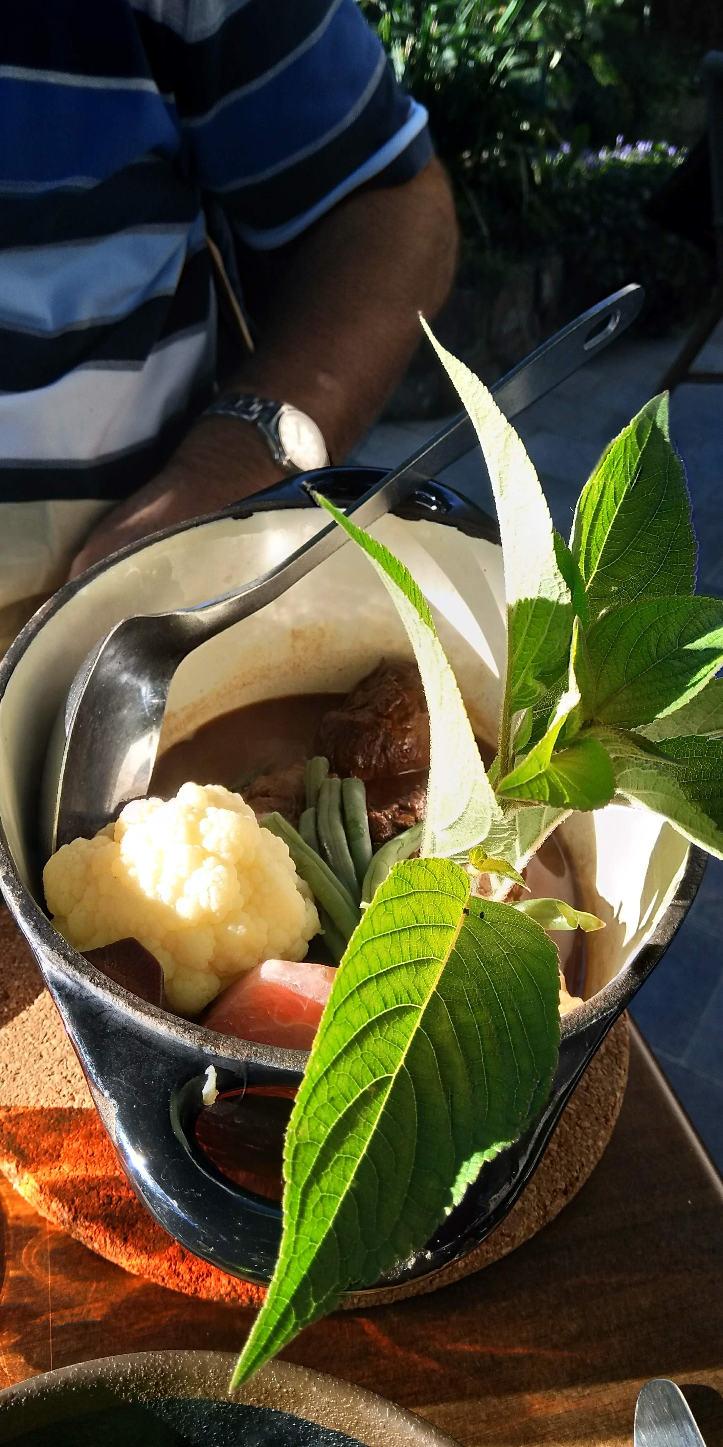 On m'avait chaleureusement recommandé ce restaurant. Quelle déception. La viande était parfaite. Oui mais... L'accompagnement était littéralement carbonisé. Pour la première fois de ma vie, je me suis autorisée à le signifier (non sans gêne). Le cuisinier est venu m'expliquer que c'était normal, que c'était une recette à l'ancienne, nécessitant de faire brûler le poireau ensuite mélangé au reste de la marmite. Brûler était peu dire. Immangeable. Peut-être suis-je mal tombée ce soir là....