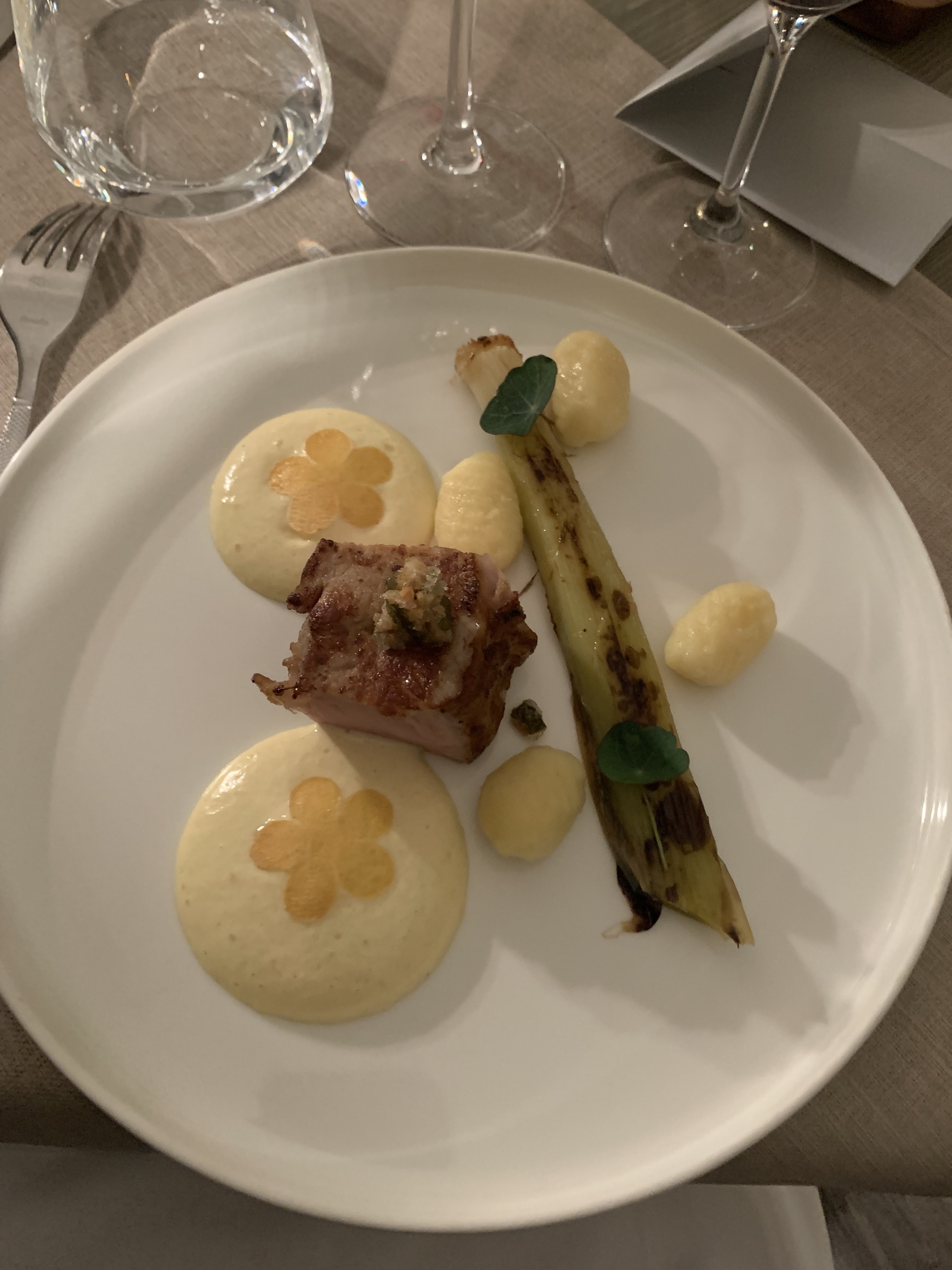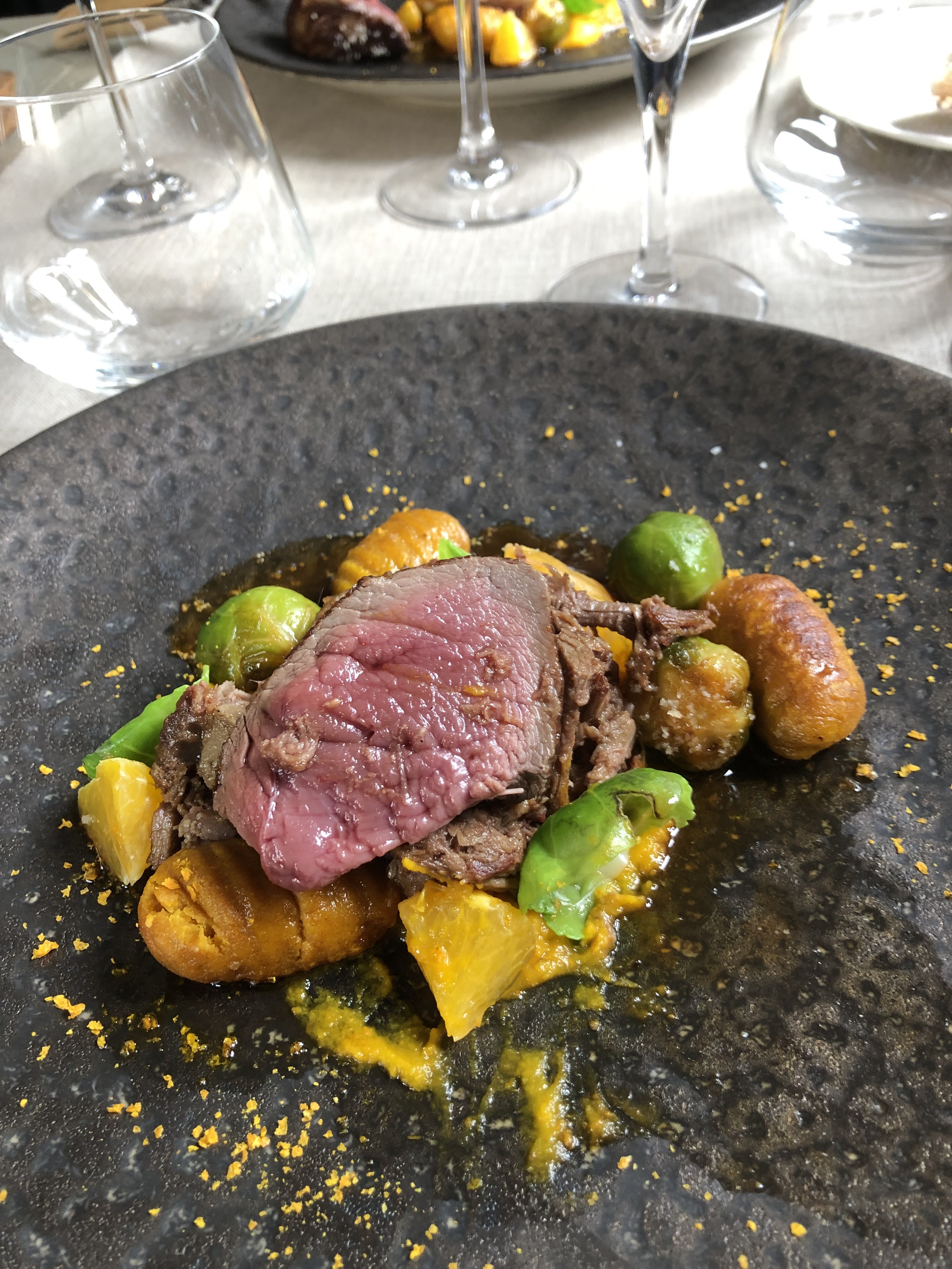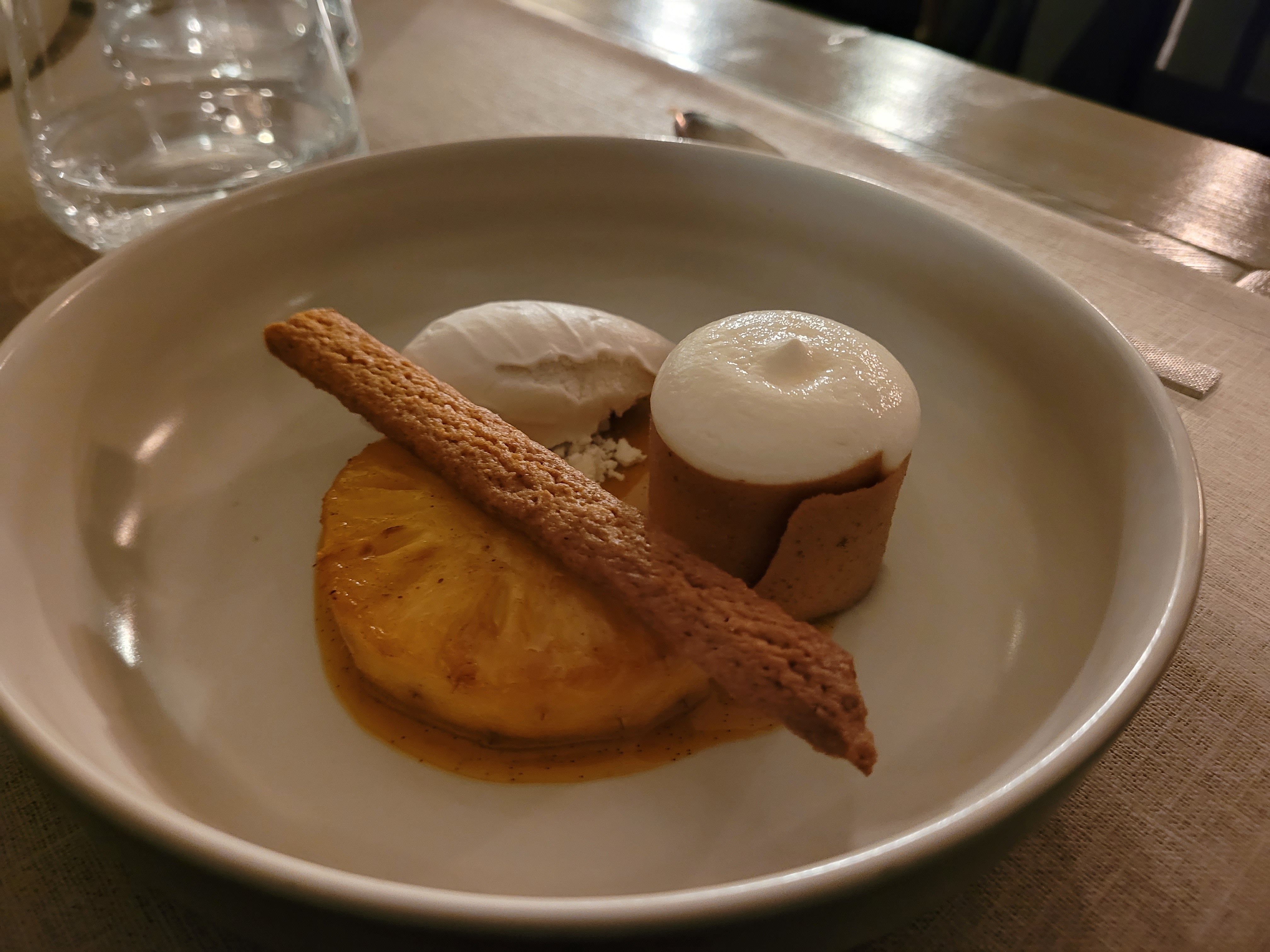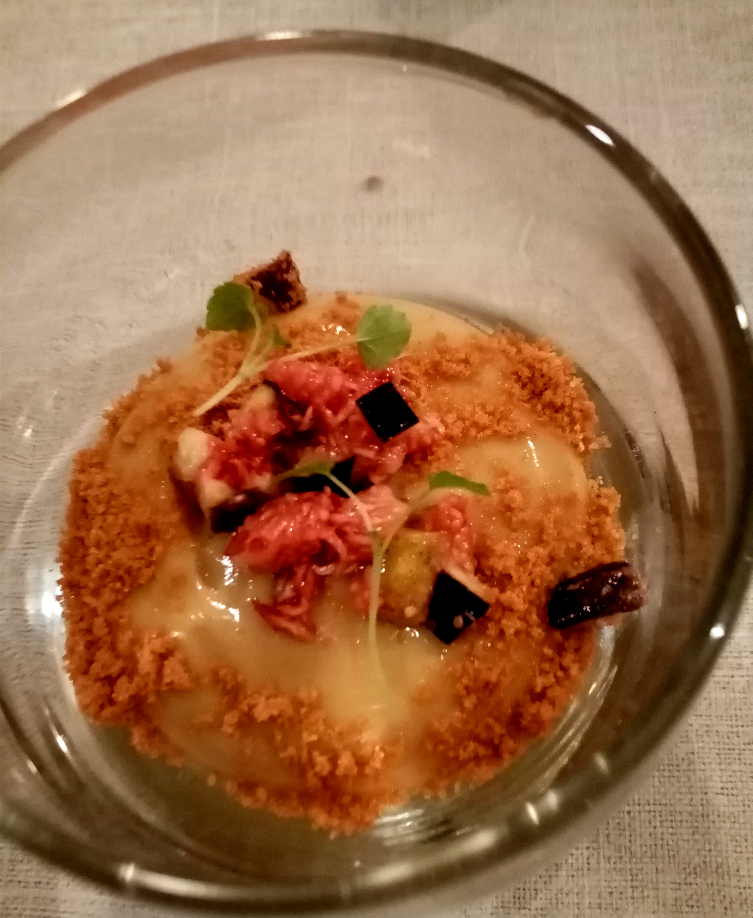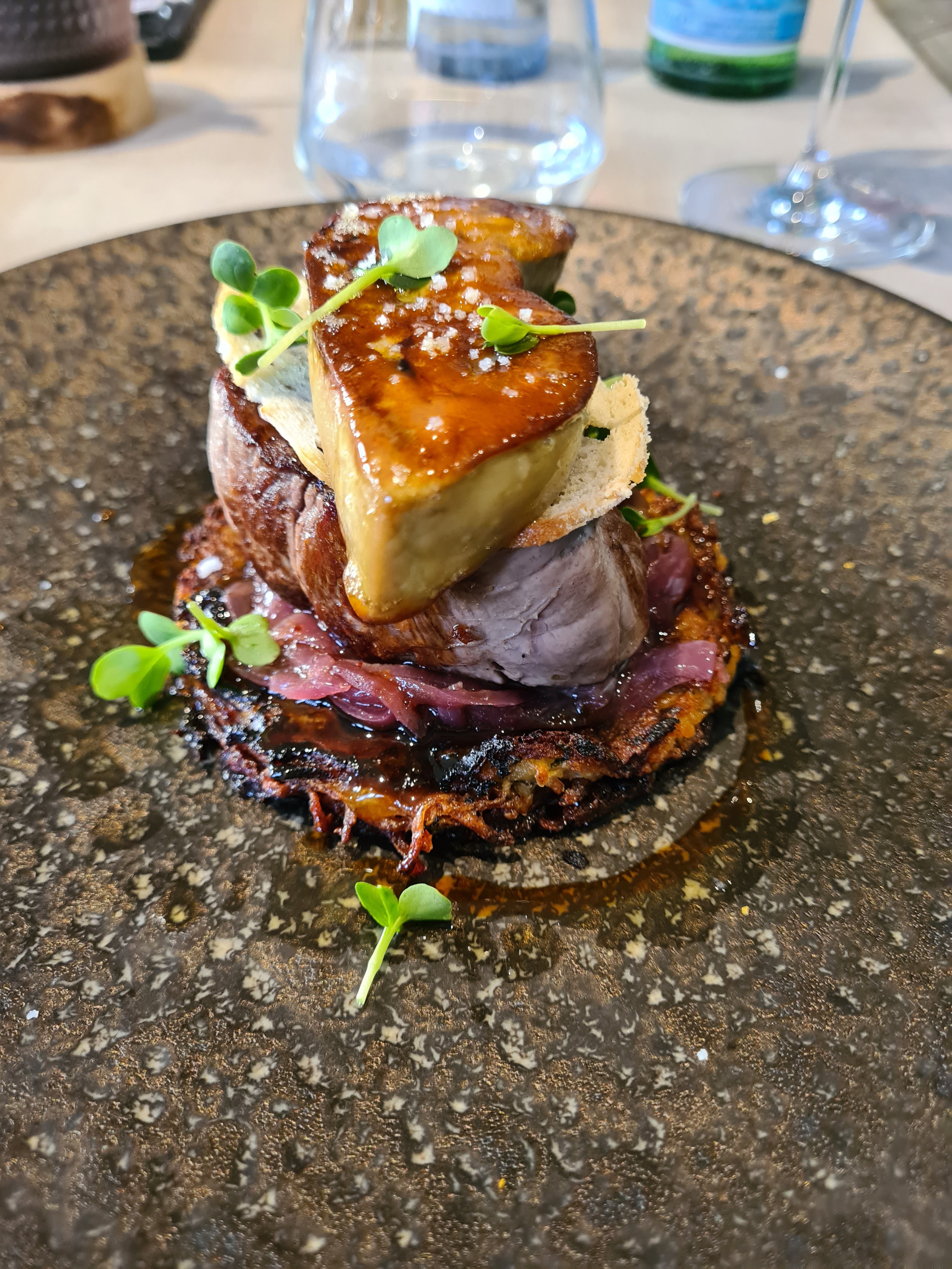 Nourriture très ambitieuse. Une étoile de moins à cause de la recommandation de vin, c'était un peu médiocre pour être honnête. Mais la nourriture était délicieuse !