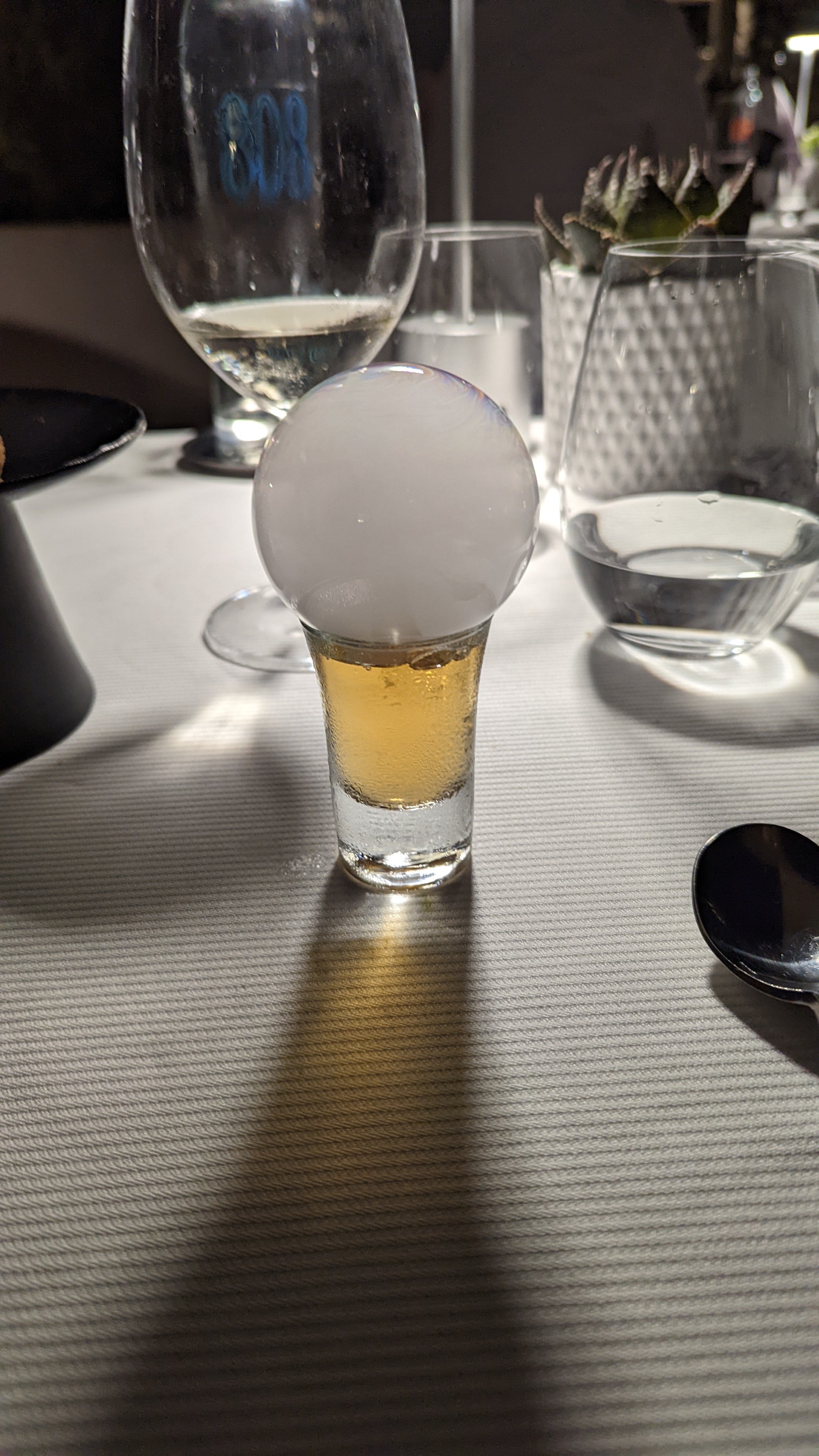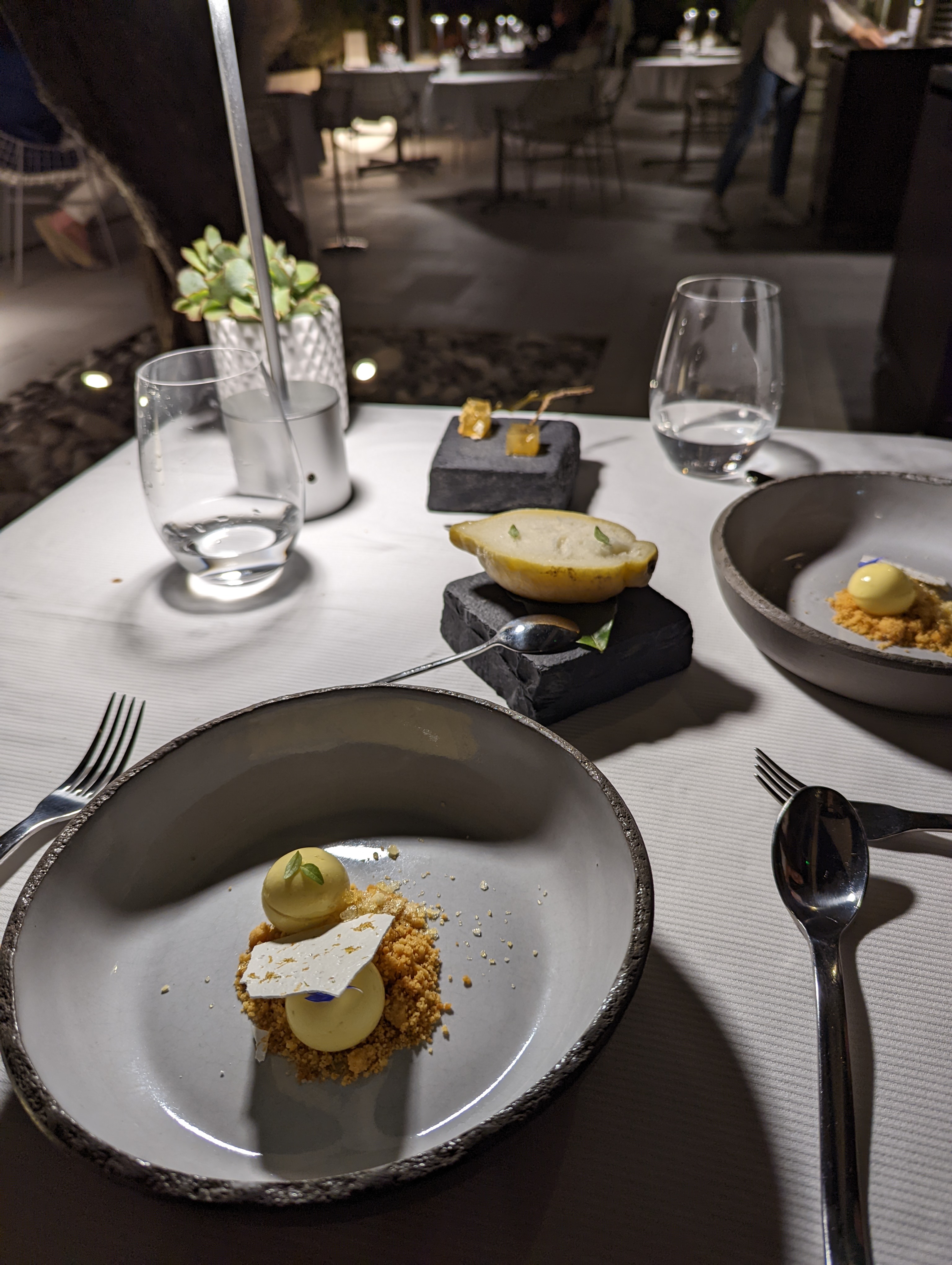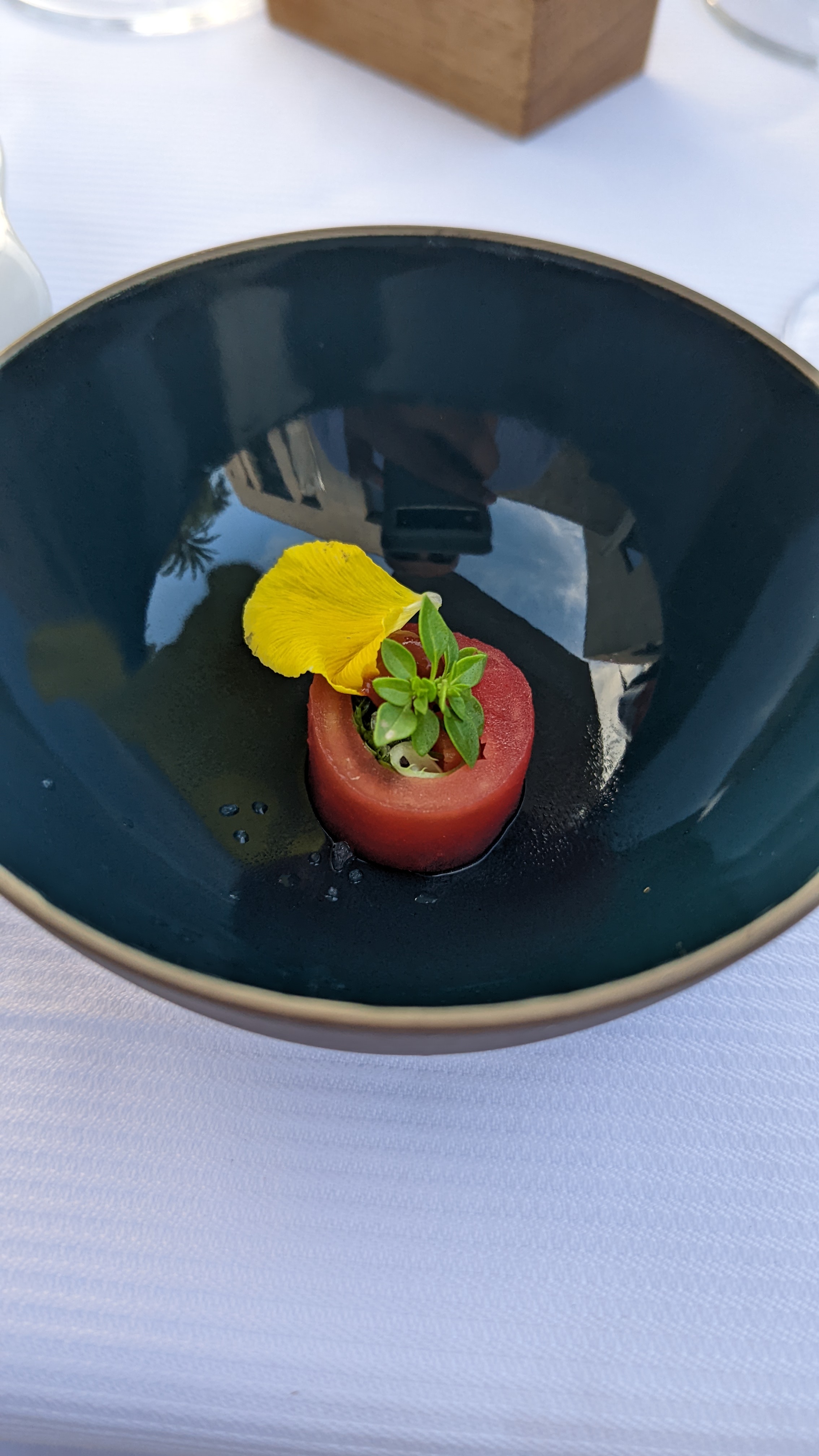 Je suis venue seule avec mon enfant de 4 ans, et nous avions passé une expérience superbe et unique, en plus d’un cadre vraiment beau et agréable. Le personnel était vraiment adorable, et ont portés beaucoup d’attention envers mon enfant. Il y avais une chanteuse accompagnée d’un musicien, et cela amenait une ambiance vraiment chill et apaisée. Le plat était bon. Le diner tournait autour des agrumes, et n’étant pas une très grande fan de cela j’ai quand même apprécié le repas. Je recommande à 100% ! Merci à eux.