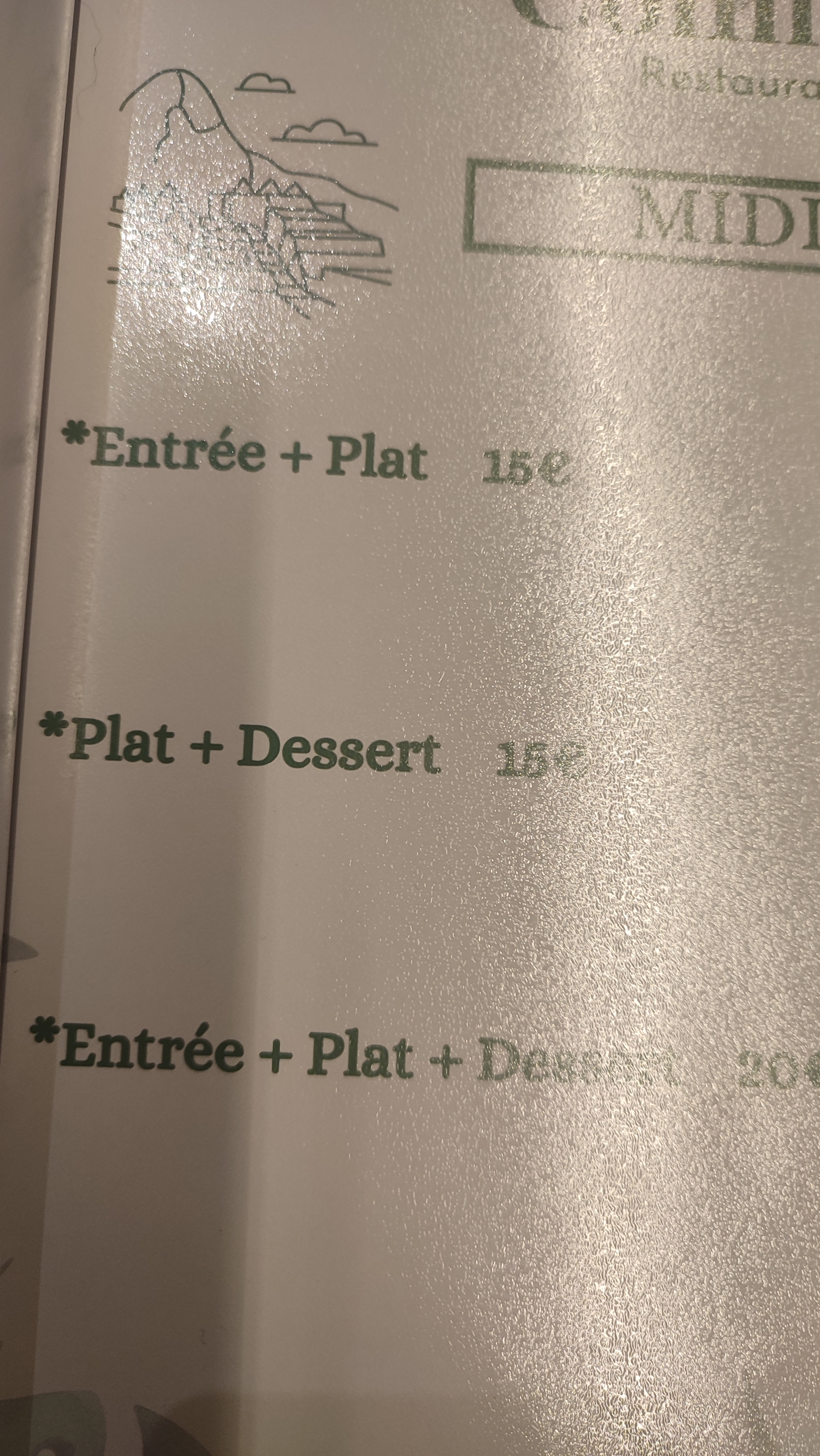 Vraiment excellent et très bon rapport qualité prix (formule entrée plat 15e) Manque plus que des serviettes en tissue pour limiter les déchets et ça sera parfait!