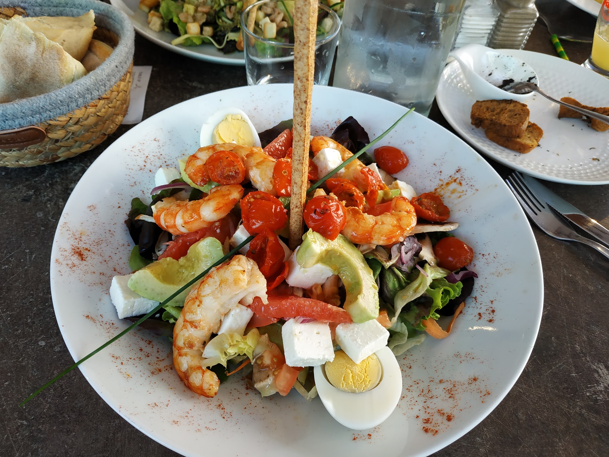 Repas entre amis une très bonne salade de calamar. Service et accueil au calme op une belle terrasse je recommande