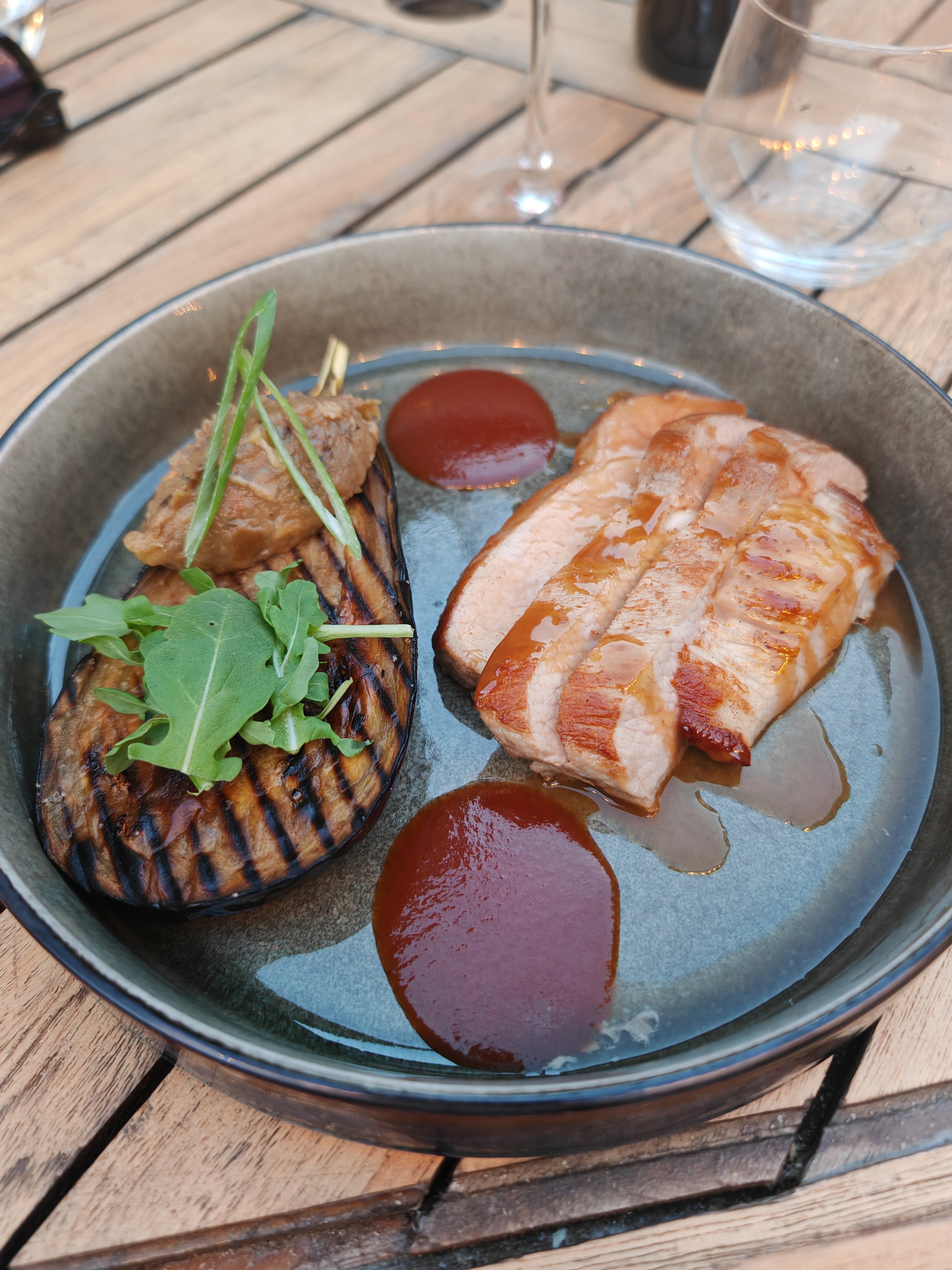 Restaurant découvert par hasard, lors d’une balade. Monsieur a pris le veau confit sauce chorizo et moi le travers de porc sauce caramel au risotto fris. Une réussite tant gustativement que visuellement, nous nous sommes régalés !!!