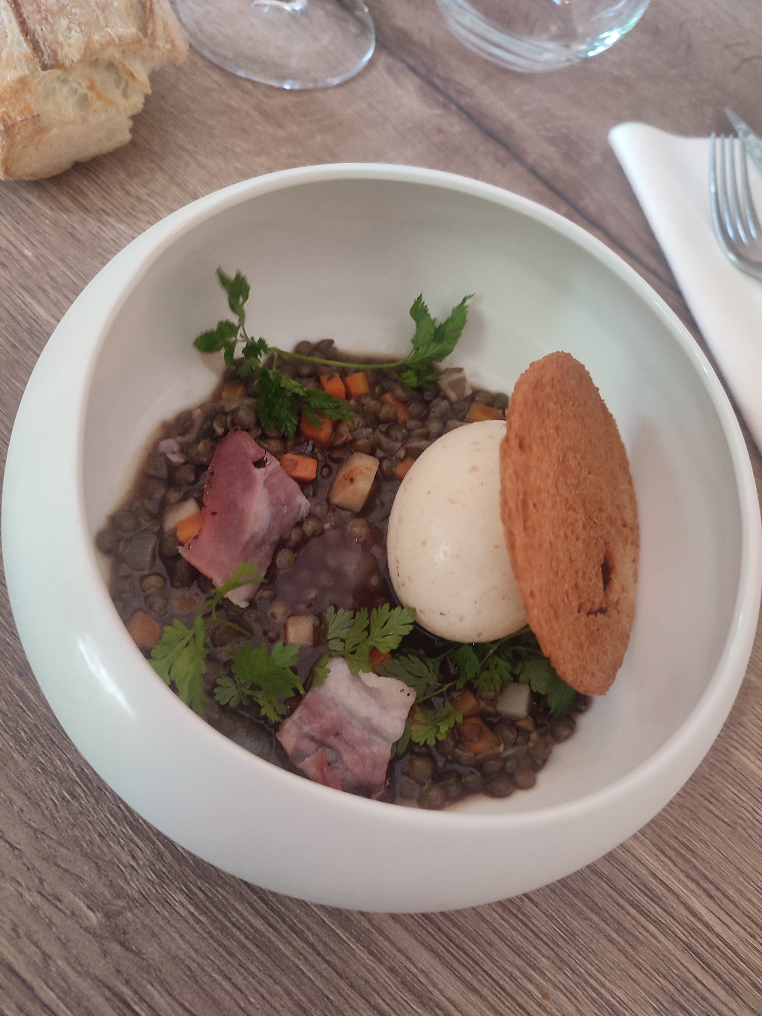 Cadre très agréable, ombragé avec un service aux petits oignons. Super cuisine moderne avec des ingrédients du terroir et simple. La sélection de vin est qualitative