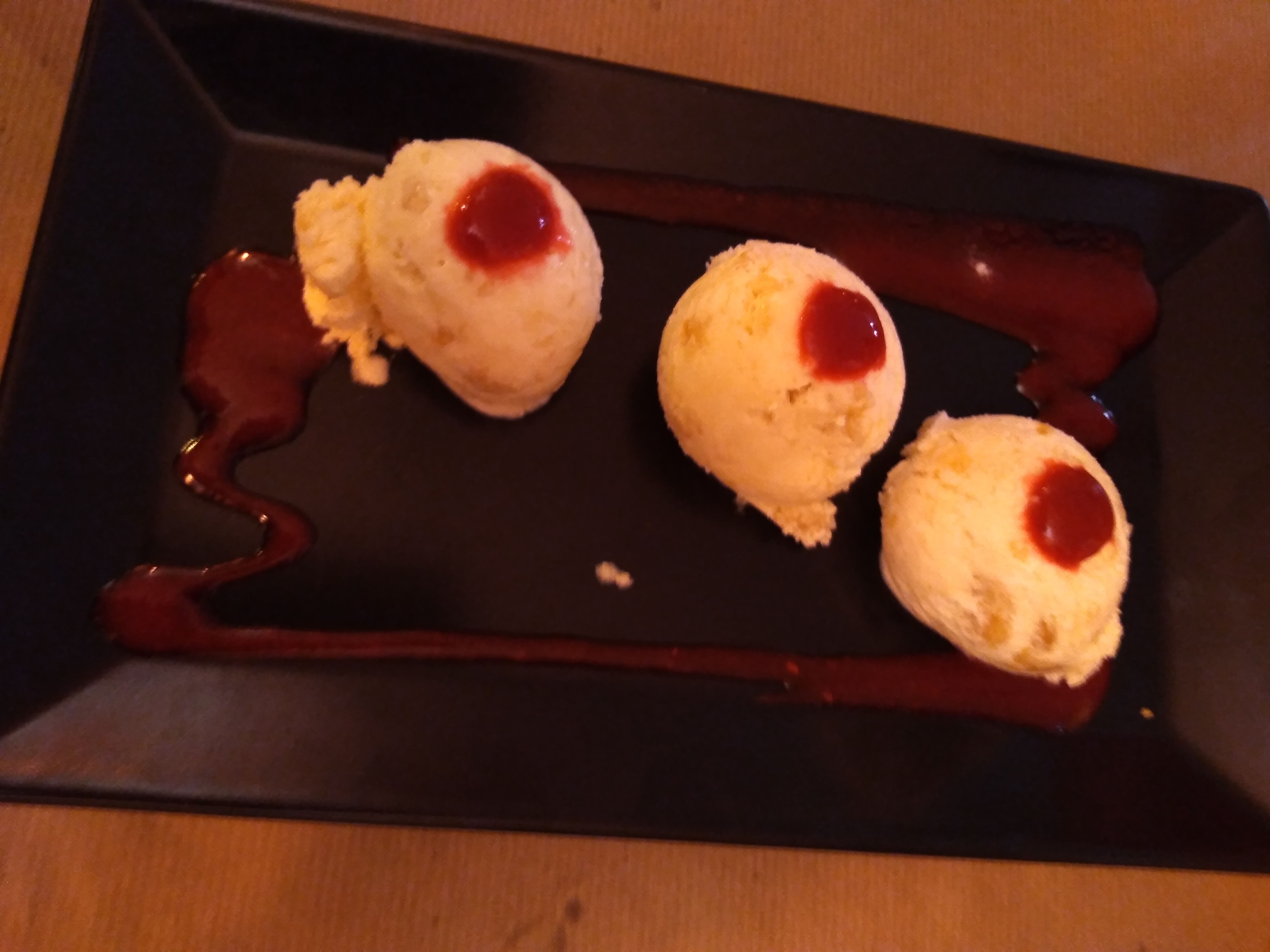 La glace au nougat etait bonne le poisson un peut moins je l’ai trouvé basique le restaurant est chaleureux