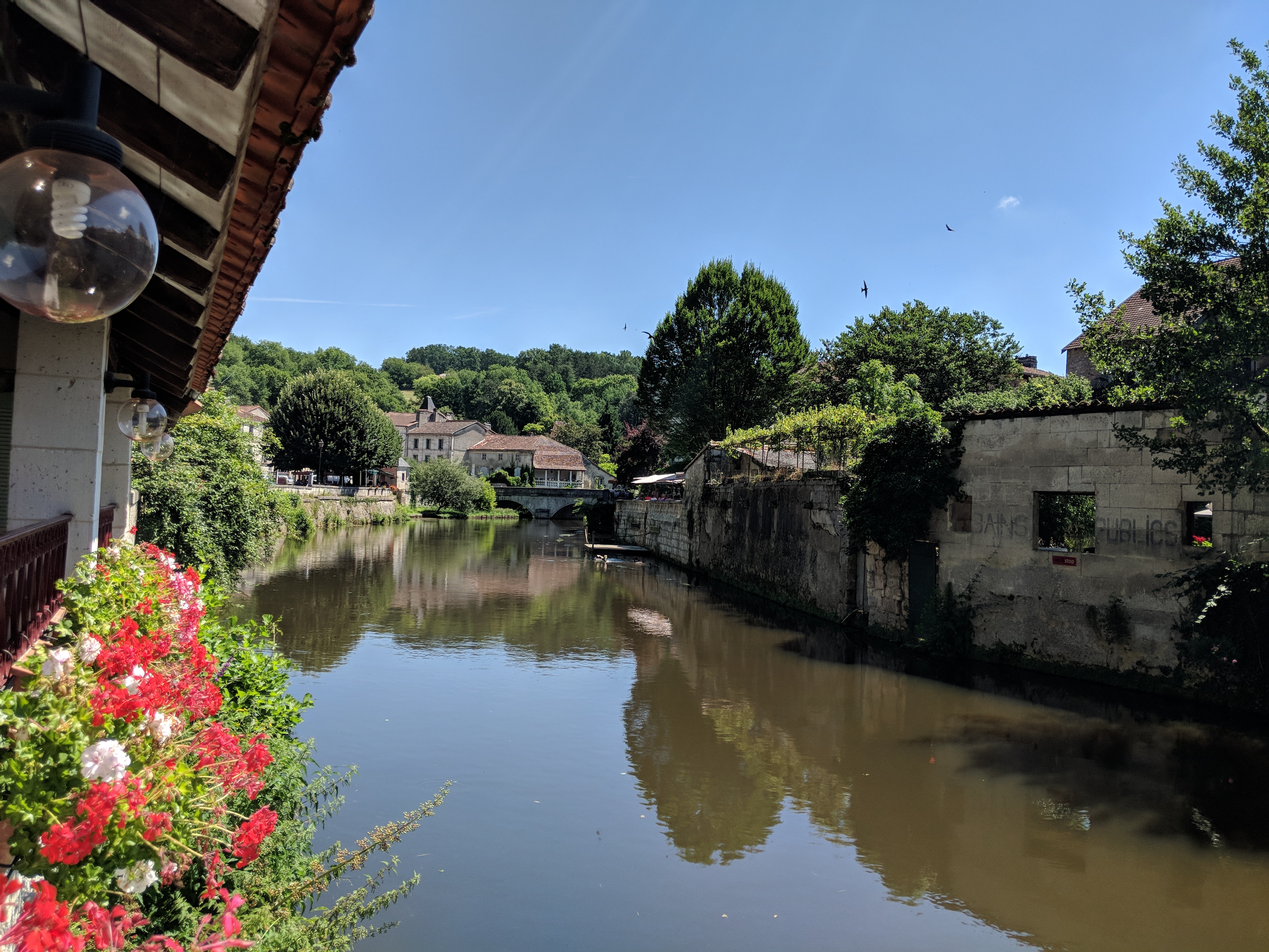 Lieu reposant au bord du canal de la Dronne à BRANTÔME. Bonne restauration goûteuse et personnels sympathiques et accueillants.