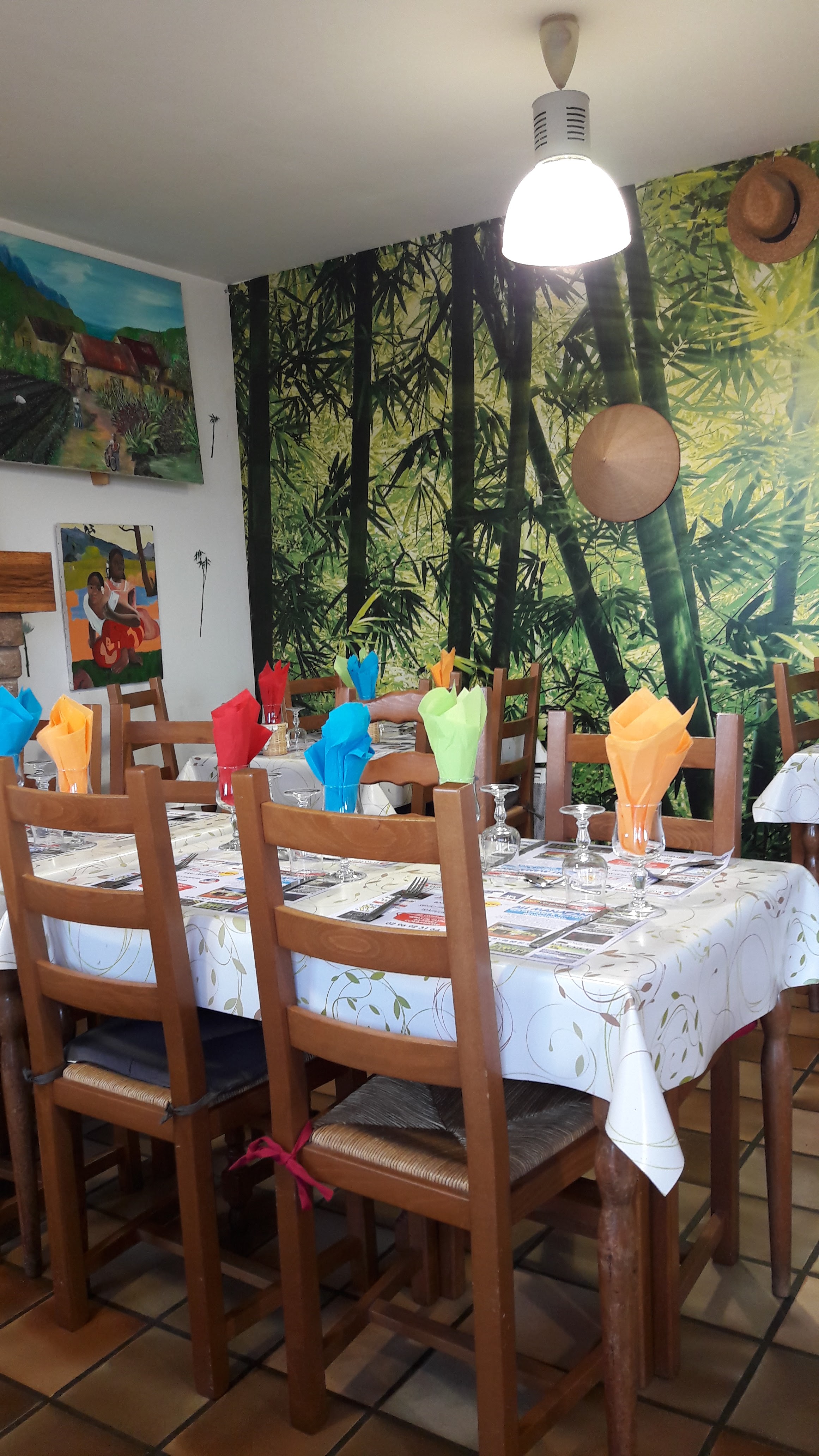 Lieu agréable, coloré, joyeux. Excellent accueil. Service parfait assuré par un jeune avec une belle présence, soucieux du bien être de chacun(e). Plats copieux, bien préparés, cuits à point (notamment le poisson et le poulet fermier).Tout est fait maison, les desserts aussi. Nous nous sommes vraiment régalés ! N'oubliez pas de goûter les excellents cocktails maison ( le rhum arrangé ) et vous serez transportés à la Réunion ! Nous serons ravis d'y revenir rapidement. Ne changez rien. Bonne continuation !