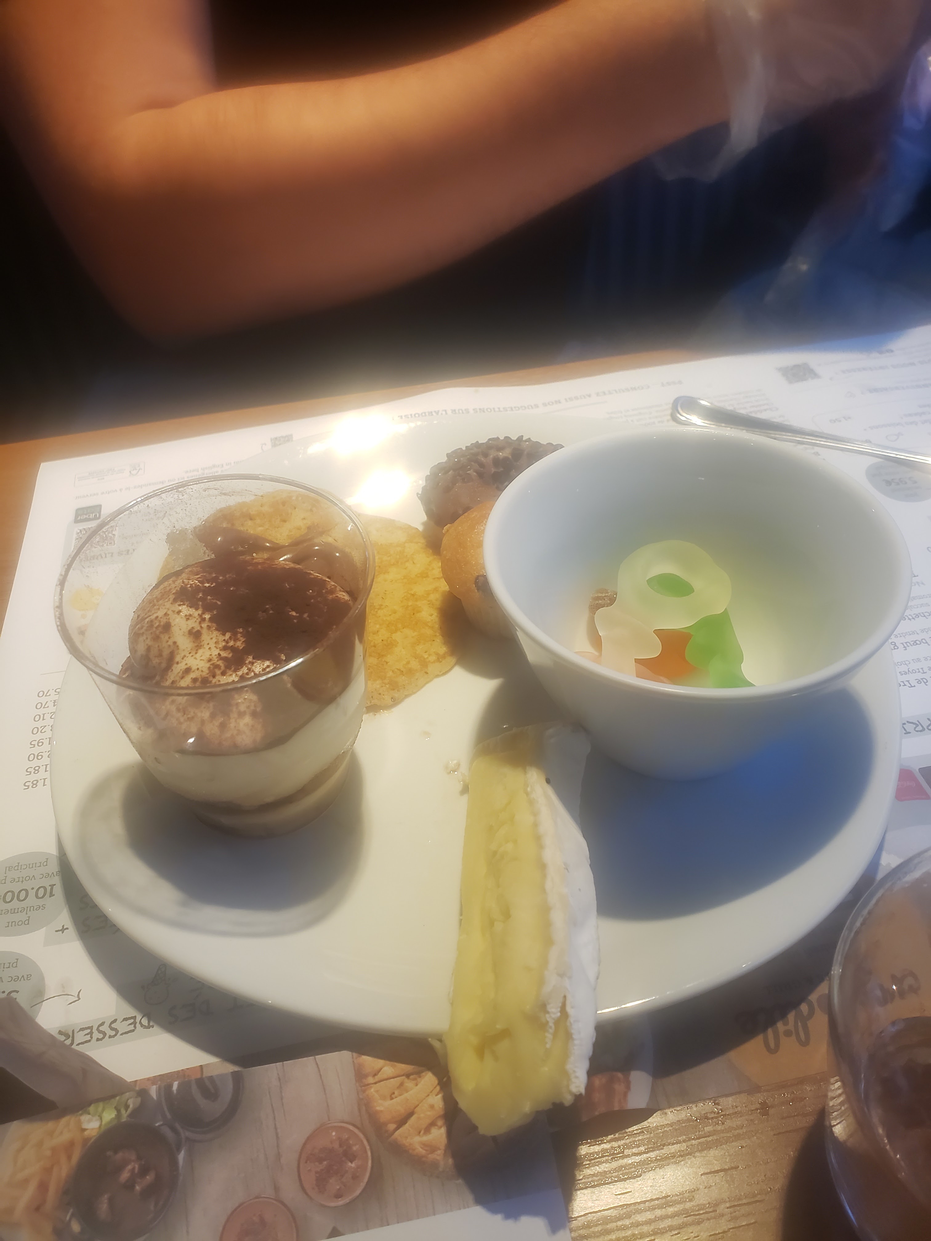 Première expérience et très bon repas.Entree plats et desserts. A recommander.