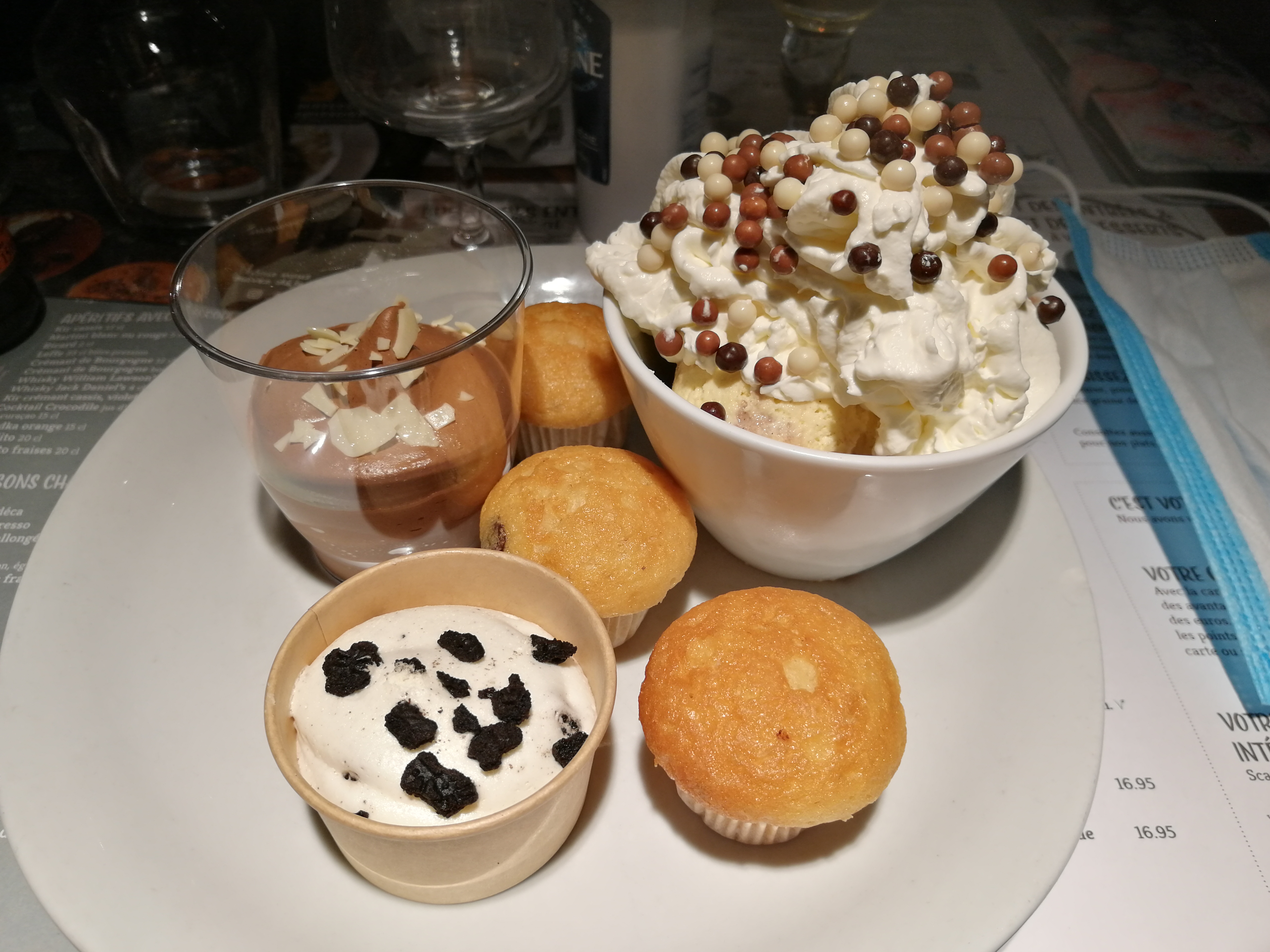 Le plat principal était correct en quantité et bon, par contre nous avons pris le supplément entrée 7€45 et dessert 7€45 pas top, la plupart des desserts 🍨 me semblaient congelés et pas trop de goût , ça fait cher quand-même , déçue 😞