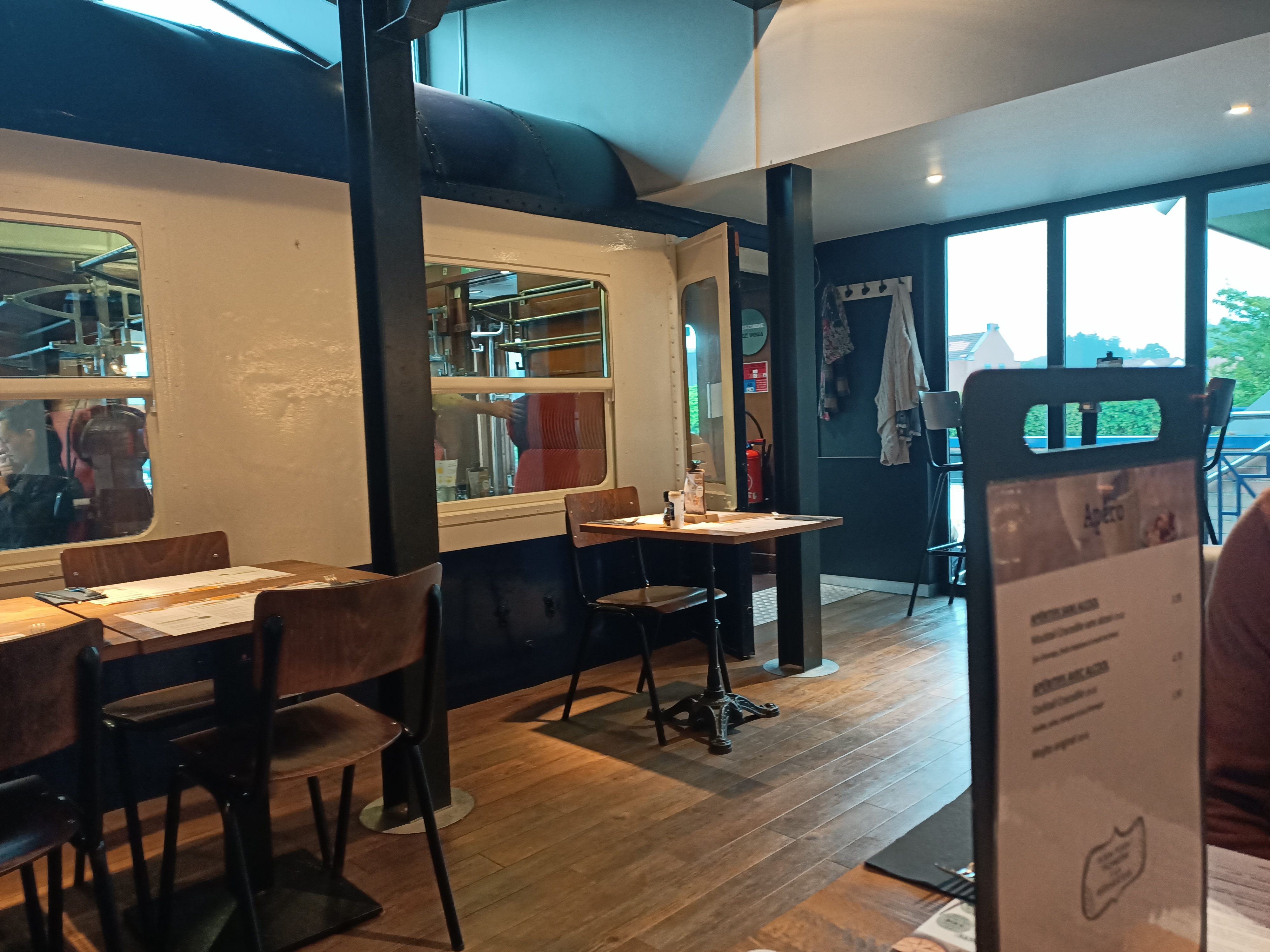 Lieu atypiques et original restauration en wagon ou en salle , seul petit bémol, pour les formules (plat dessert)le service des plats chaud est plus long, mais je pense que le service en self en est un peu la cause , sinon l'atmosphère y est chaleureuse