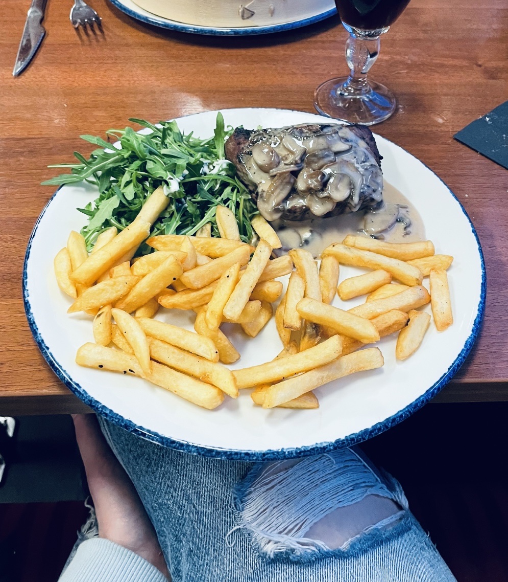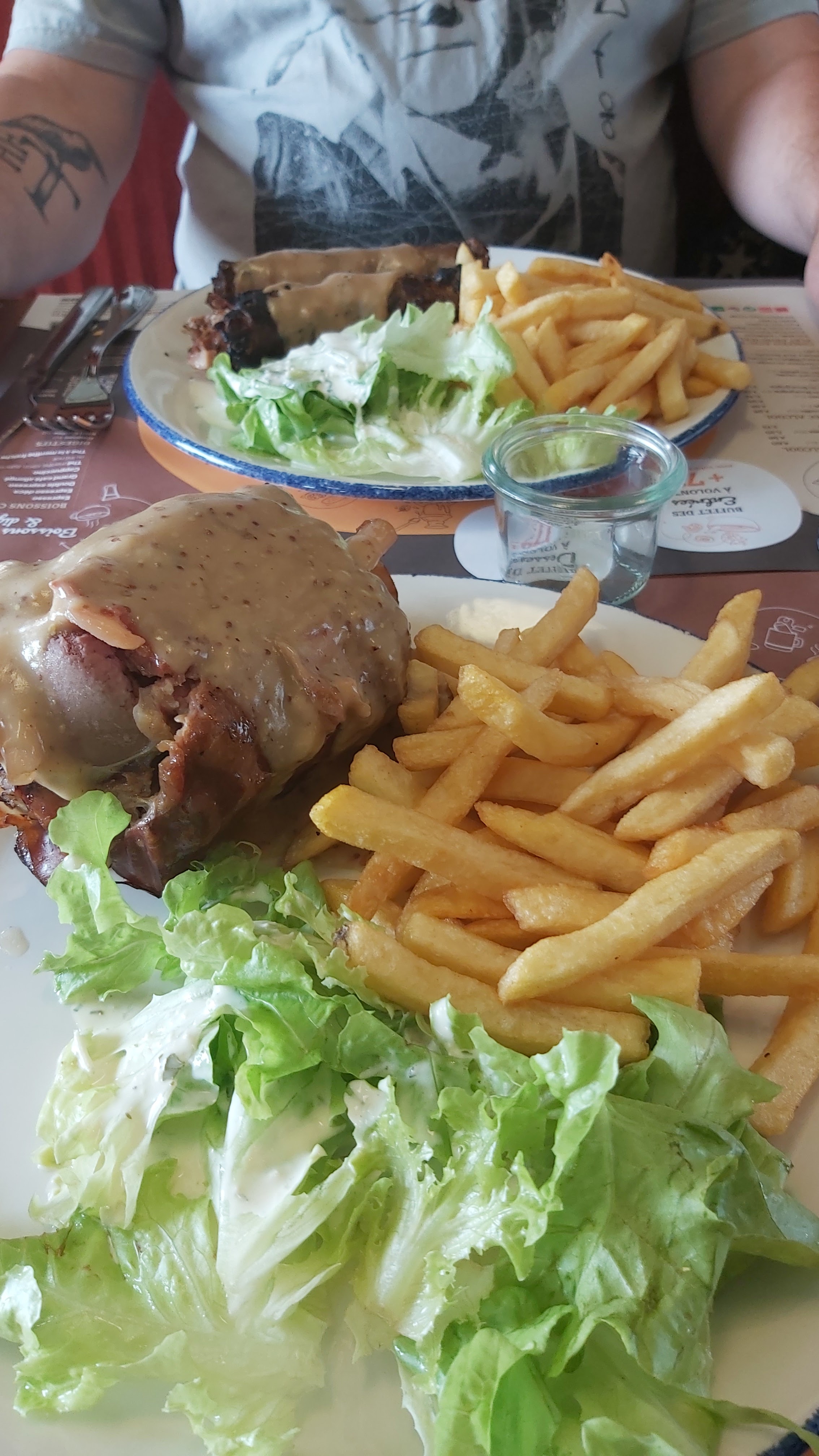 J’adore ce restaurant ! Il y a un buffet des entrées et un buffet des desserts à volonté ! J’ai pris un cheeseburger avec des frites et une sauce au poivre. J’ai pris la formule des desserts à volonté, miam ! Les boissons sont à volonté si vous prenez un plat principal, ça c’est cool car c’est devenu rare d’avoir les boissons à volonté dans un restaurant. La sauce dans le burger est exquise ! Je n’ai pas mis 5 étoiles car c’est quand même assez cher, j’ai payé 21,40€ pour le plat et les desserts à volonté. À part cela, tout est super et très bon !