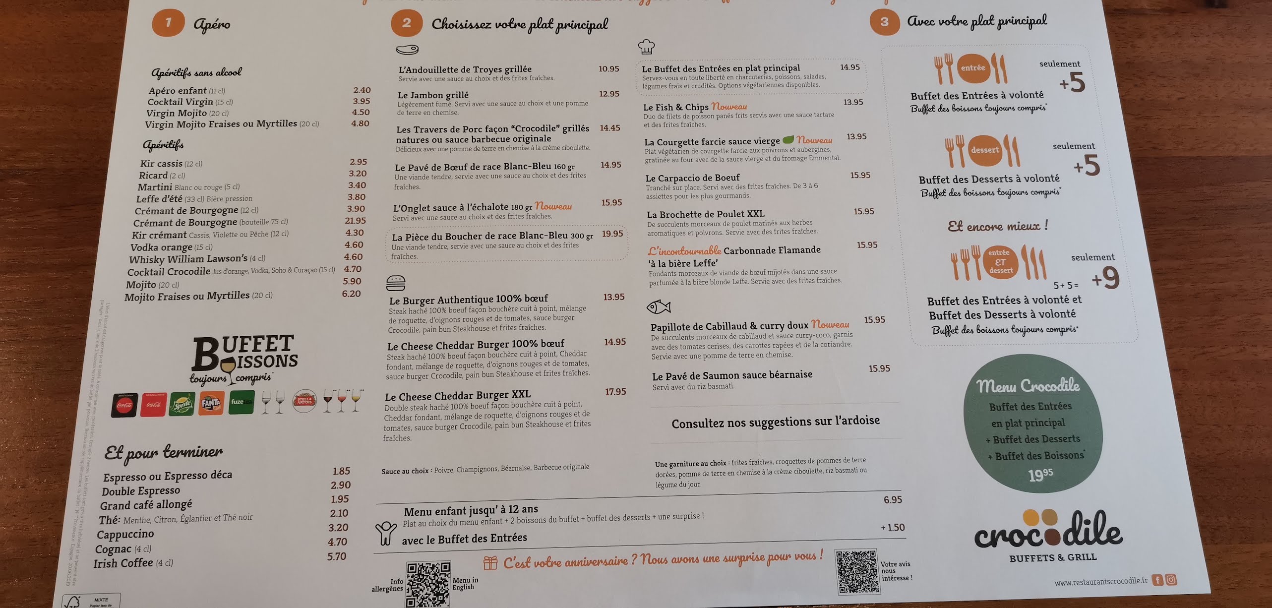 Franchement je n'avais jamais mangé dans un Crocodile et je n'ai.pas était dessus. Repas + buffet desserts à volonté c'est top surtout pour le tarif. Seul hic ... les boissons sont un peu trop diluées