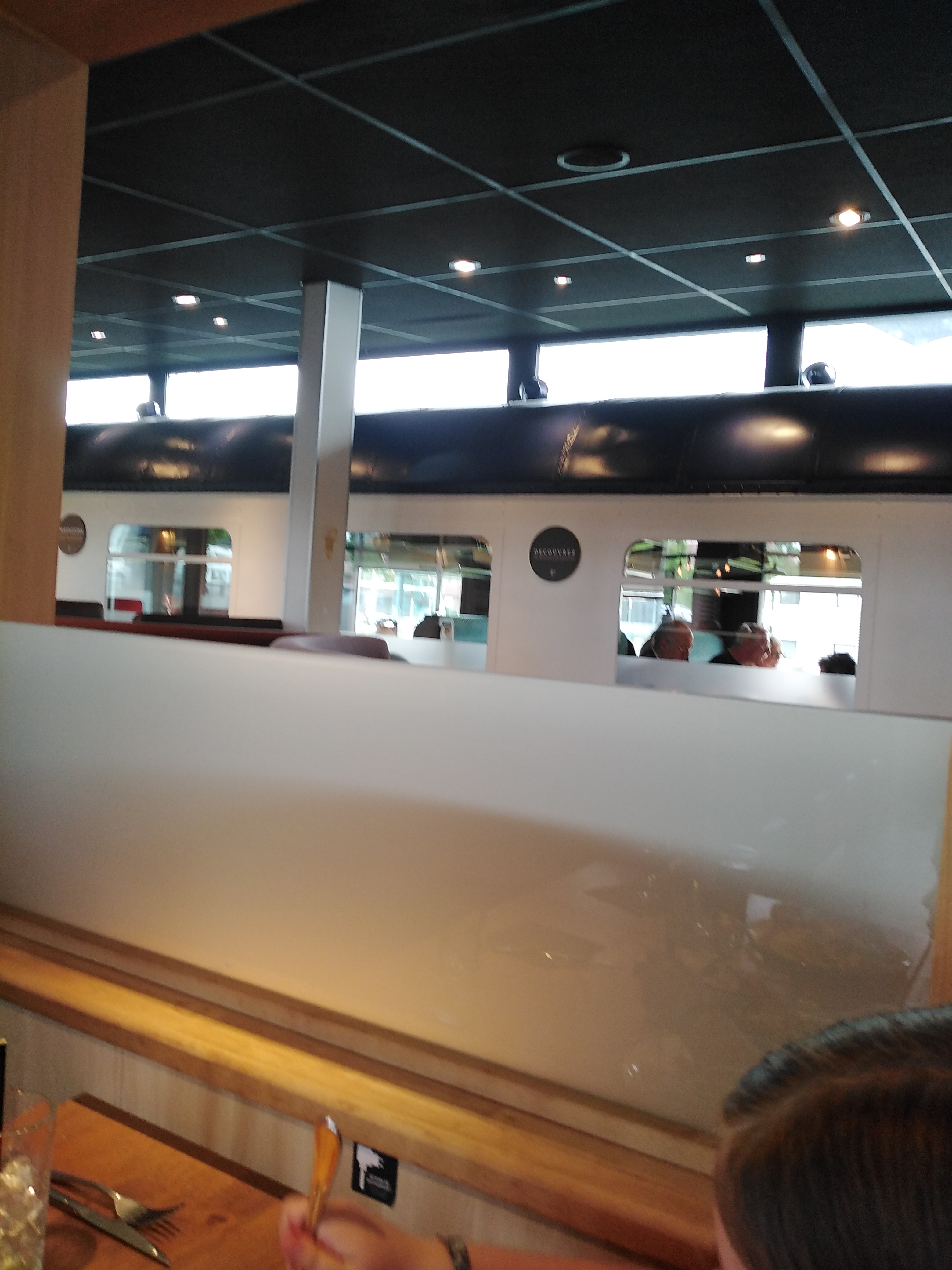 Une chaleur insoutenable dans le wagon, des enfants insupportable, les tarifs assez cher, 1 h pour recevoir le plat principale,je n’ai donc pas passé un bon repas.
