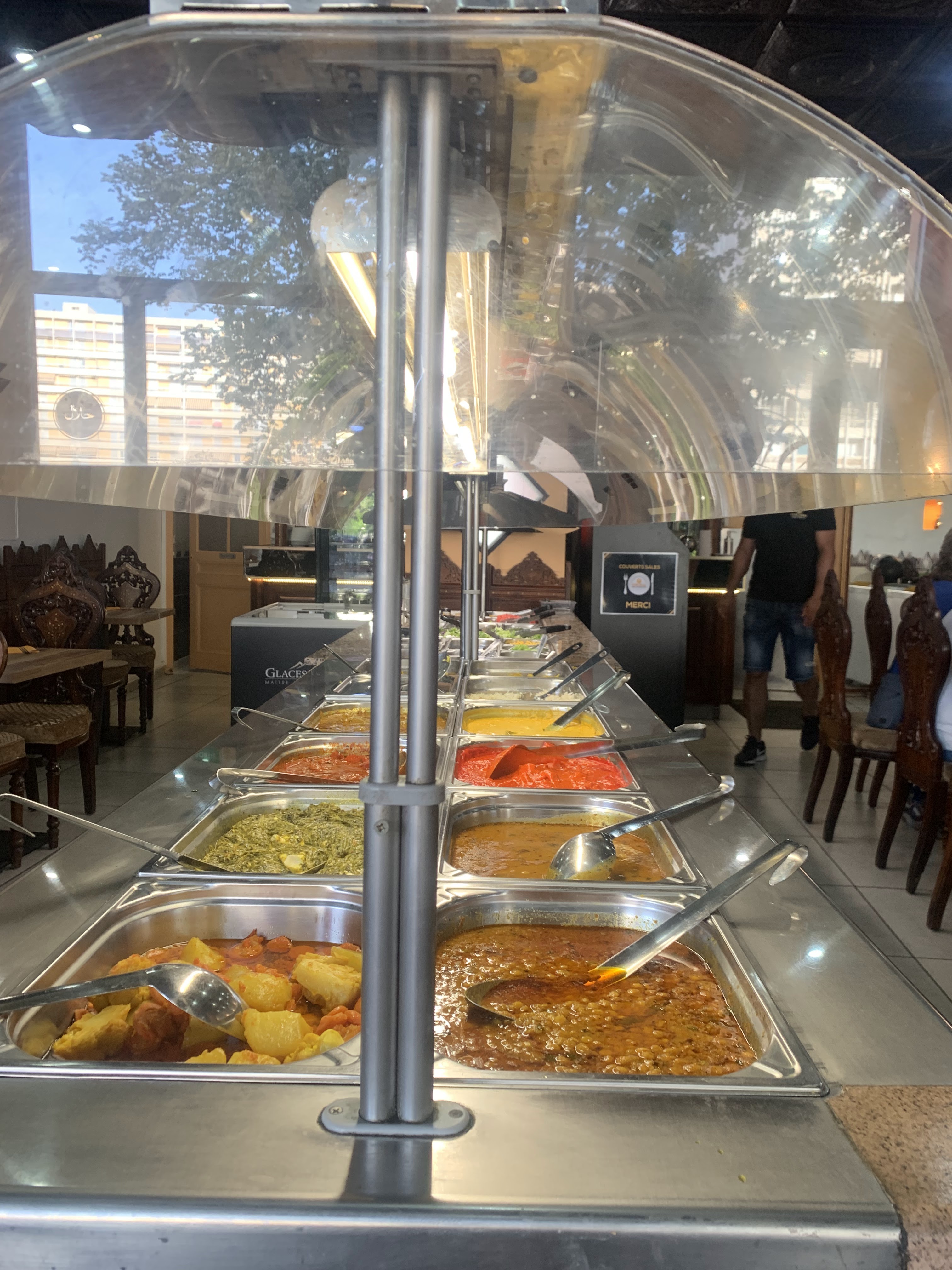 Lieu grand, table espacée, ambiance indienne et chaise confortable. Le buffet à volonté est bien garni avec pas mal de variétés que ce soit pour les entrées froides ou les plats chaud. Les plats sont bien cuisinés, bien épices et savoureux. Nous sommes loin des buffets à volonté bas de gamme. La viande est halal. Le buffet à volonté du soir est à 19,90€, excellent rapport qualité prix.