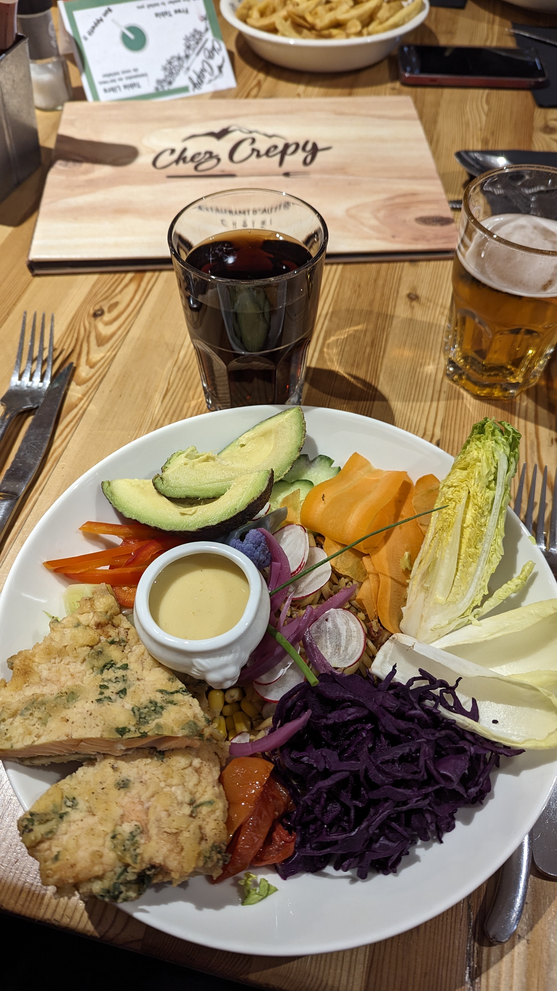 Le printemps est arrivé au bar Chez Crepy, le toit est enlevé et le soleil rentre dedans. Encore un excellent déjeuner toujours délicieux.