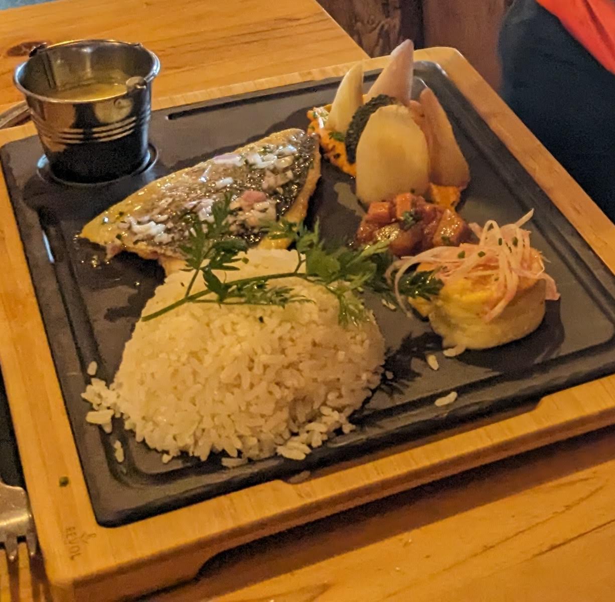 Nourriture incroyable. La meilleure polenta que j'ai jamais eue avec le menu du jour au saumon. La nourriture est sortie très vite !