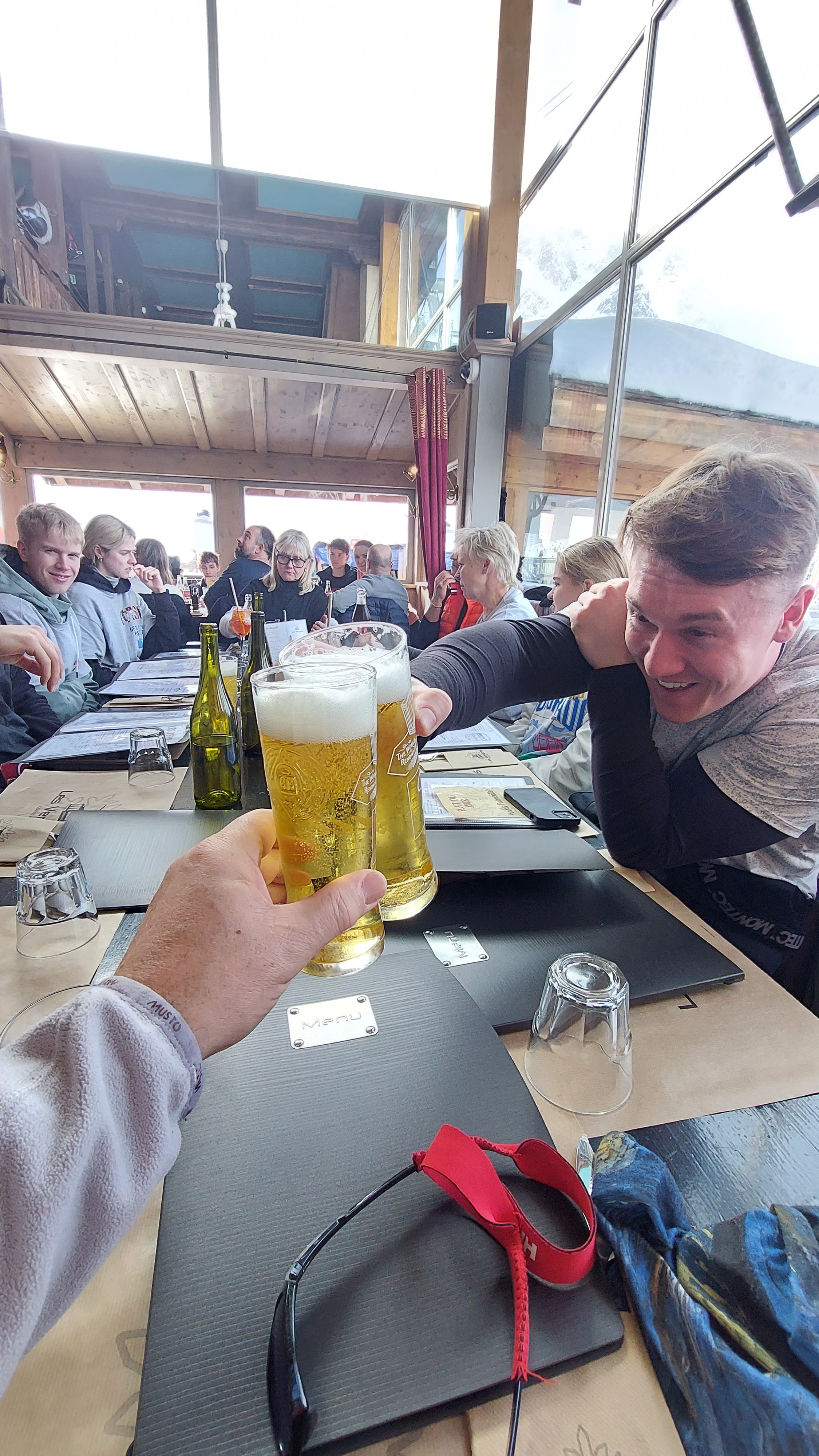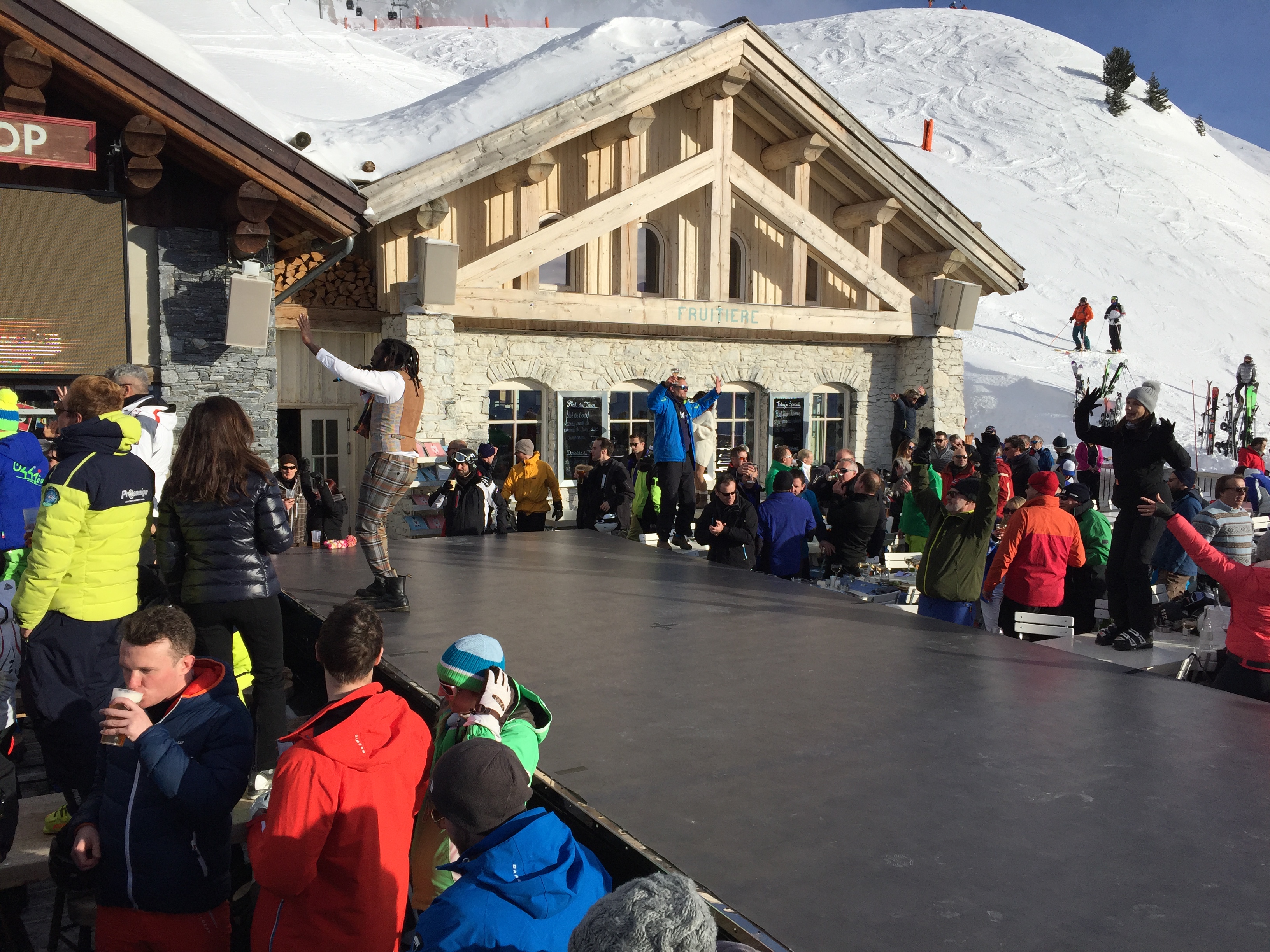Je me suis aspergé de champagne, après-midi idéal. Très animée. C'est un incontournable si vous êtes dans les 3 vallées. Je recommanderais d'y arriver vers 2 heures et demie.