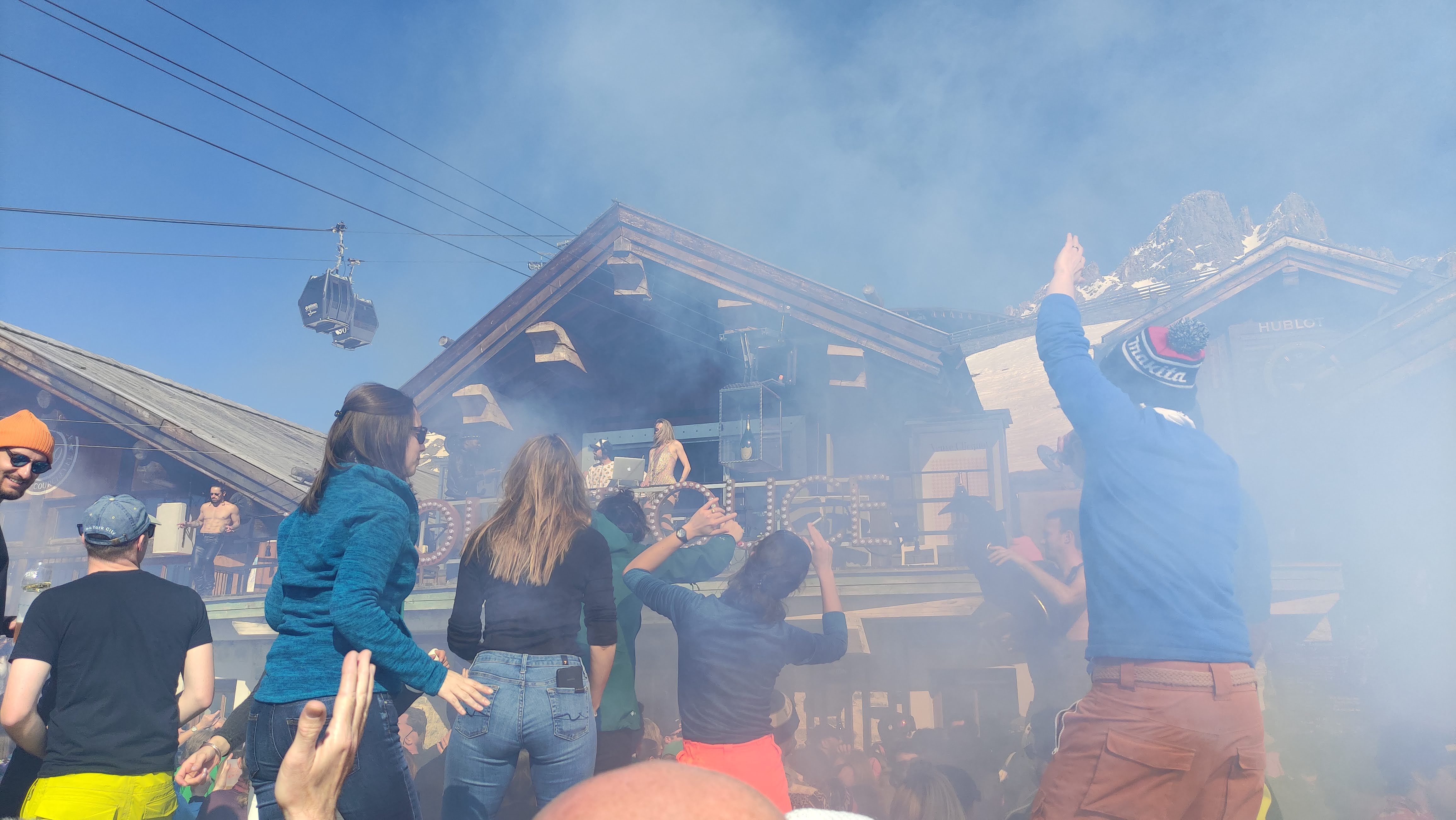 L'atmosphère de cet endroit est la meilleure ! A mi-hauteur de la montagne, entouré par les Alpes enneigées. Vous dansez, vous buvez, puis vous dévalez la montagne en ski ! C'est merveilleux!