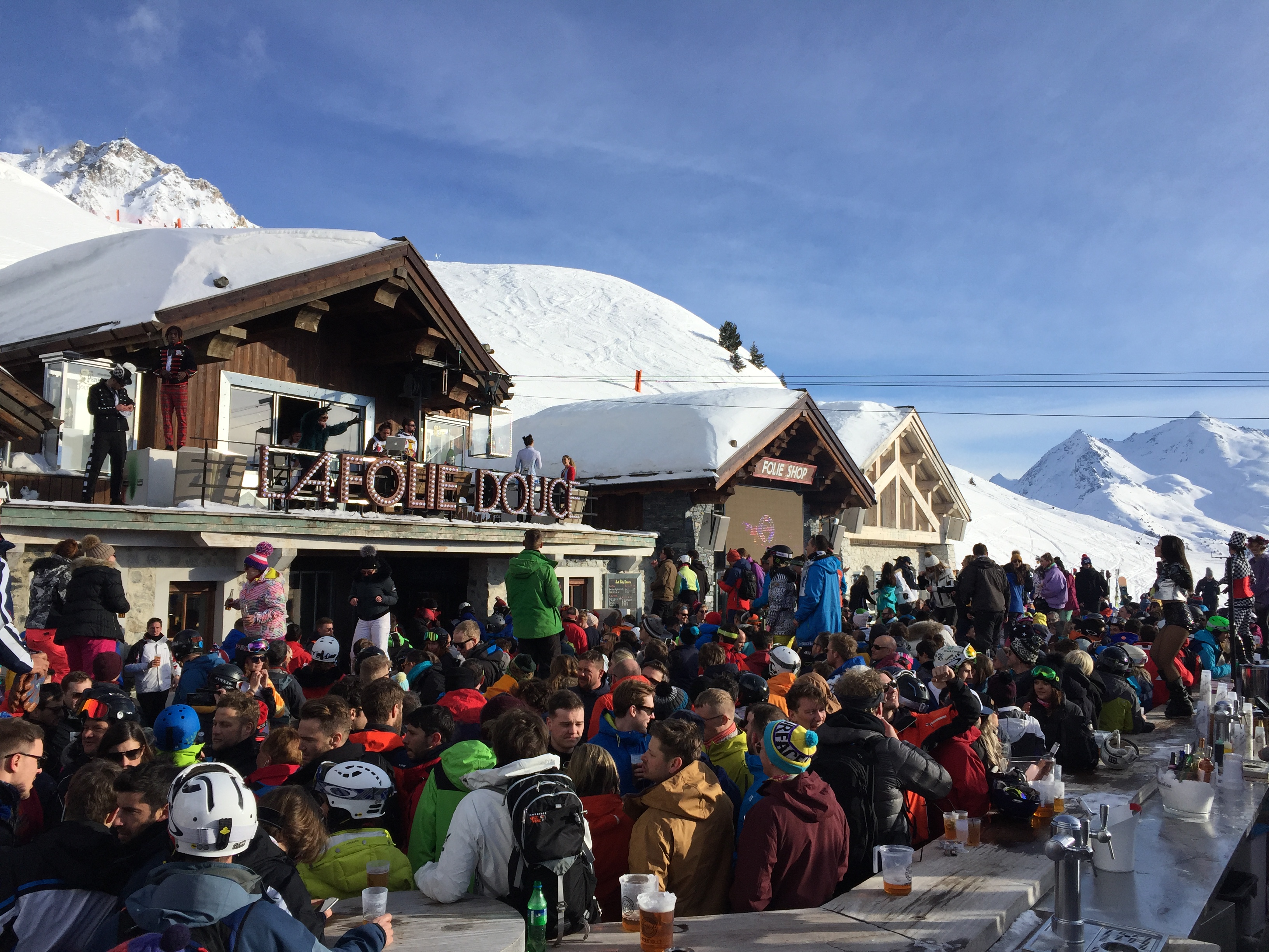 Lorsque vous êtes dans les stations de ski des 3 Vallées, LA FOLIE DOUCE est l'endroit idéal pour l'APRÈS SKI. Super ambiance, super spectacle, bonne musique, superbe point de vue.
