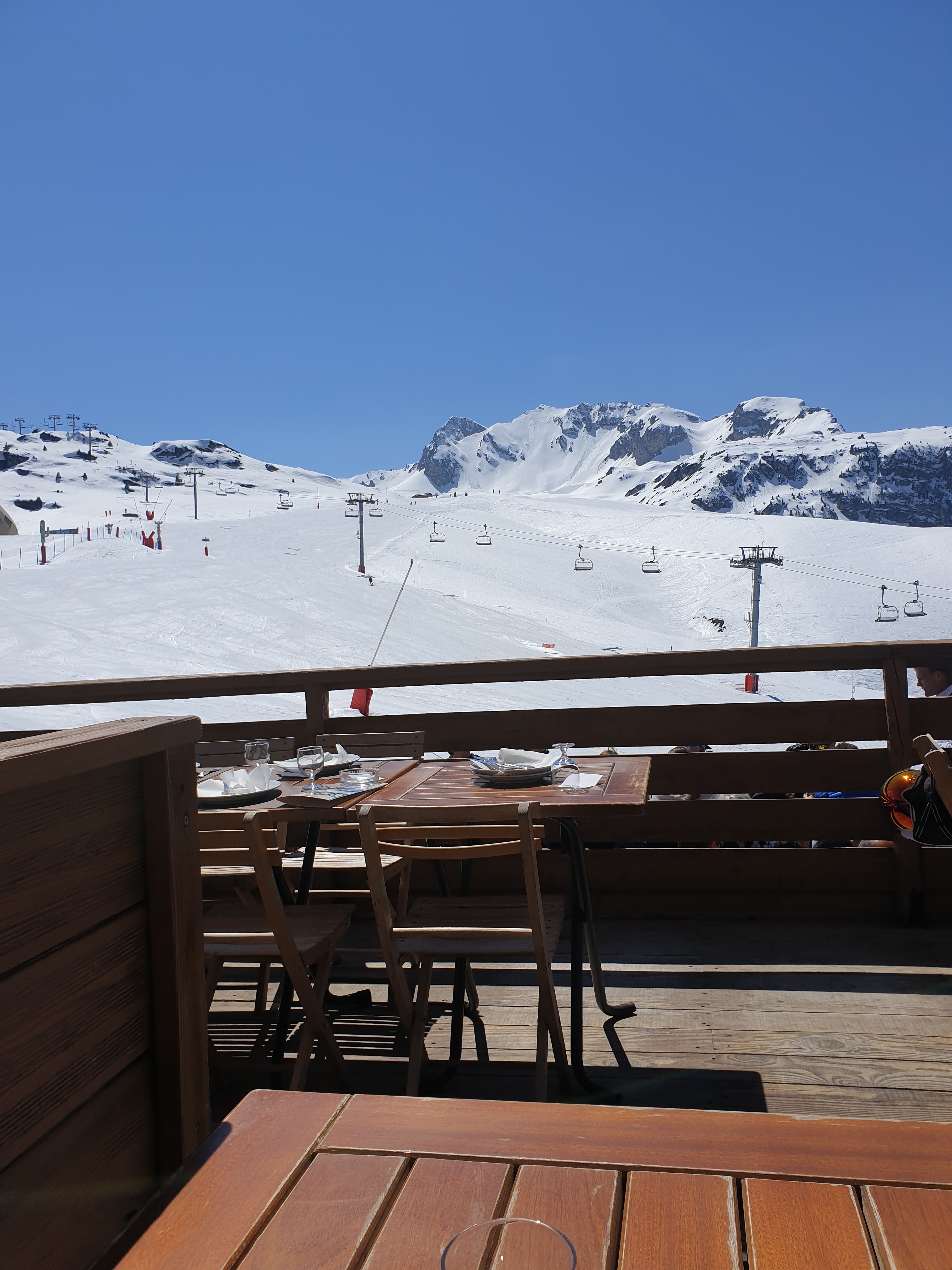 Nulle part mieux sur 3 vallées pour dîner sur la terrasse avec une vue magnifique. Service un peu lent mais on est en vacances non ? La nourriture est de bonne qualité et les pâtisseries excellentes. Il faut réserver pour intérieur/extérieur le midi.