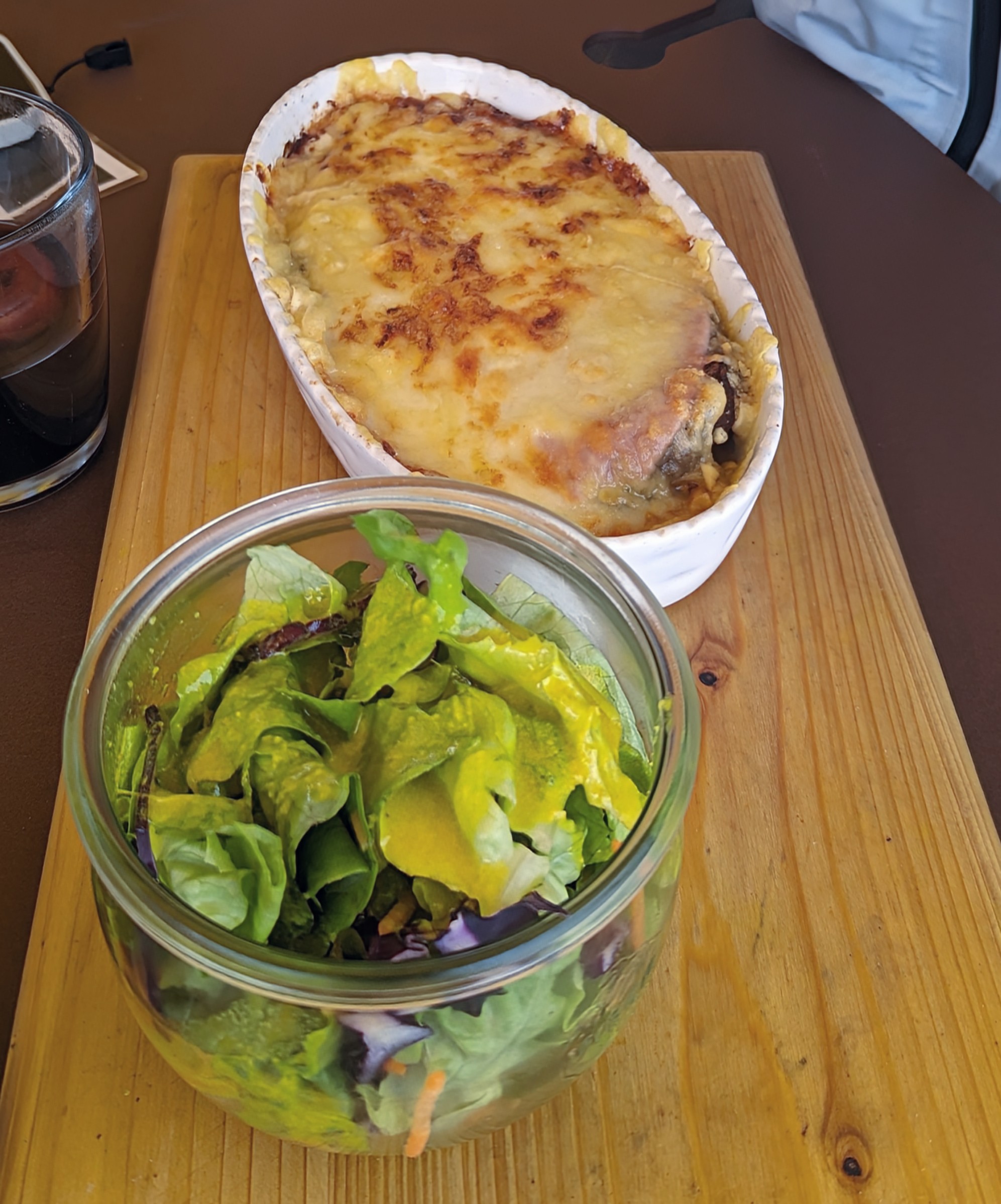 Nous sommes arrivés beaucoup plus tard que prévu et malgré tout nous avons reçu un accueil chaleureux. Nous avons eu droit à une lasagne ricotta, chèvre, pesto, extraordinaire ainsi qu'une planche fromages et charcuteries excellentes. Notre chien à eu droit à son bol d'eau... Dessert fabuleux...Le tout pour un prix très raisonnable au vu de la vue et du service. Bref très belle découverte où nous avons hâte de revenir lors de notre prochain séjour aux Saisies