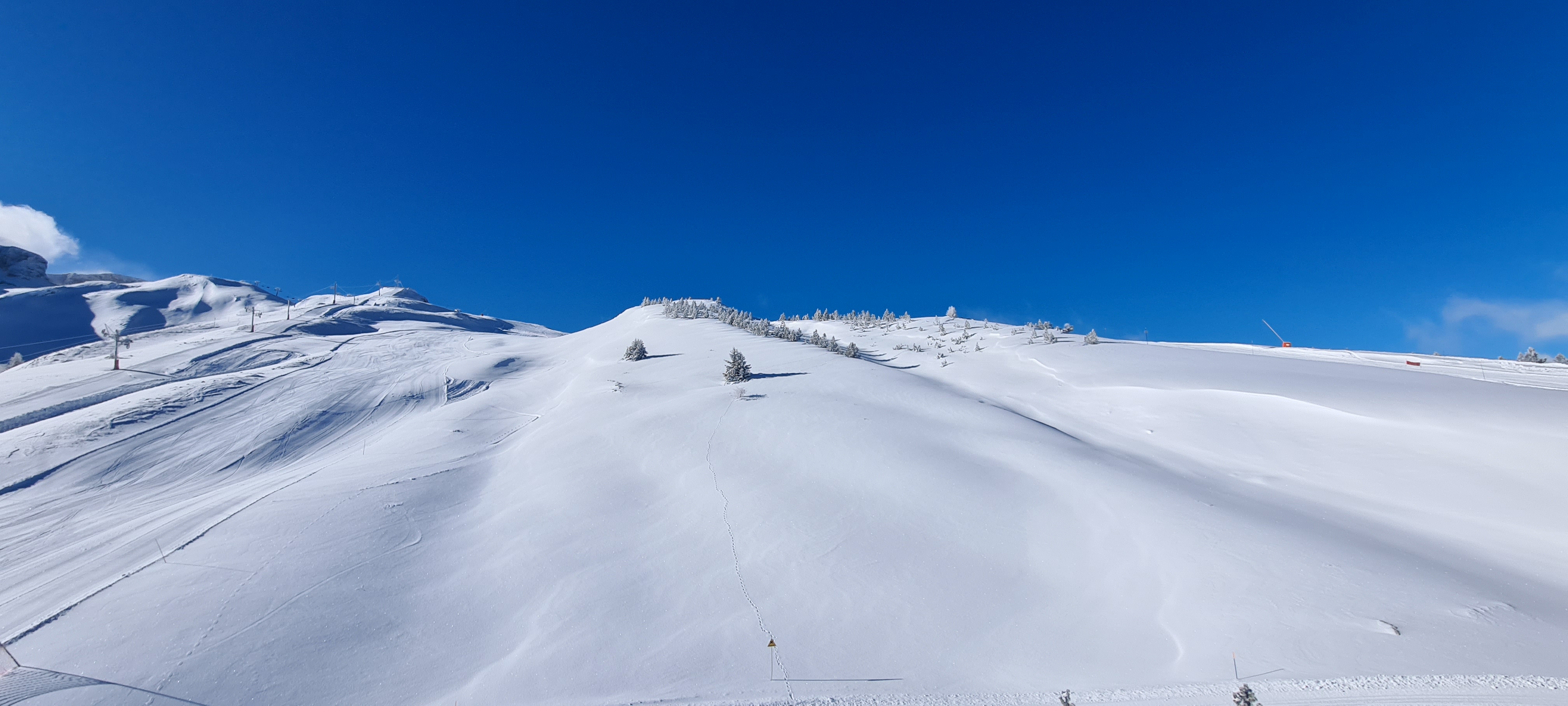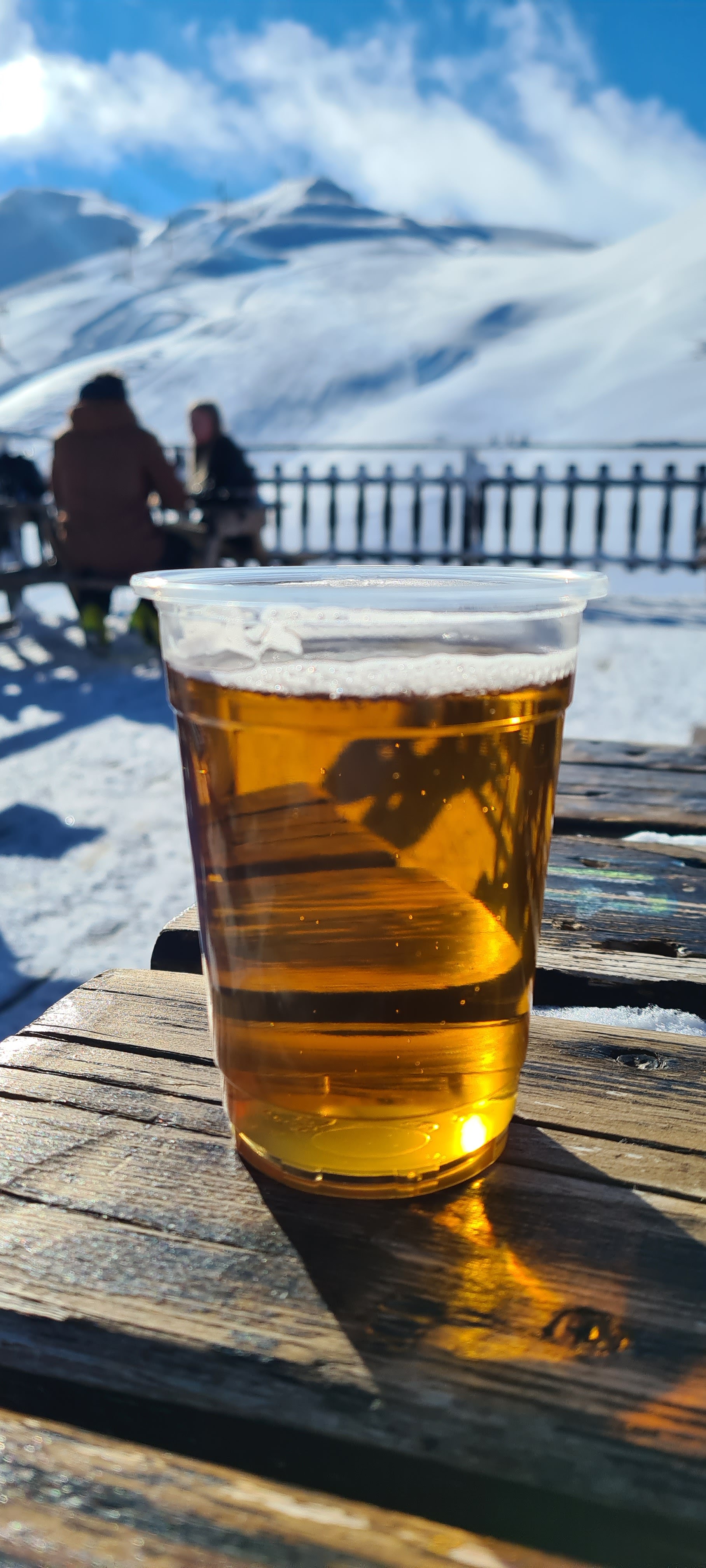 Très sympa de boire un verre en haut des pistes. Avec un magnifique soleil et une vue incroyable