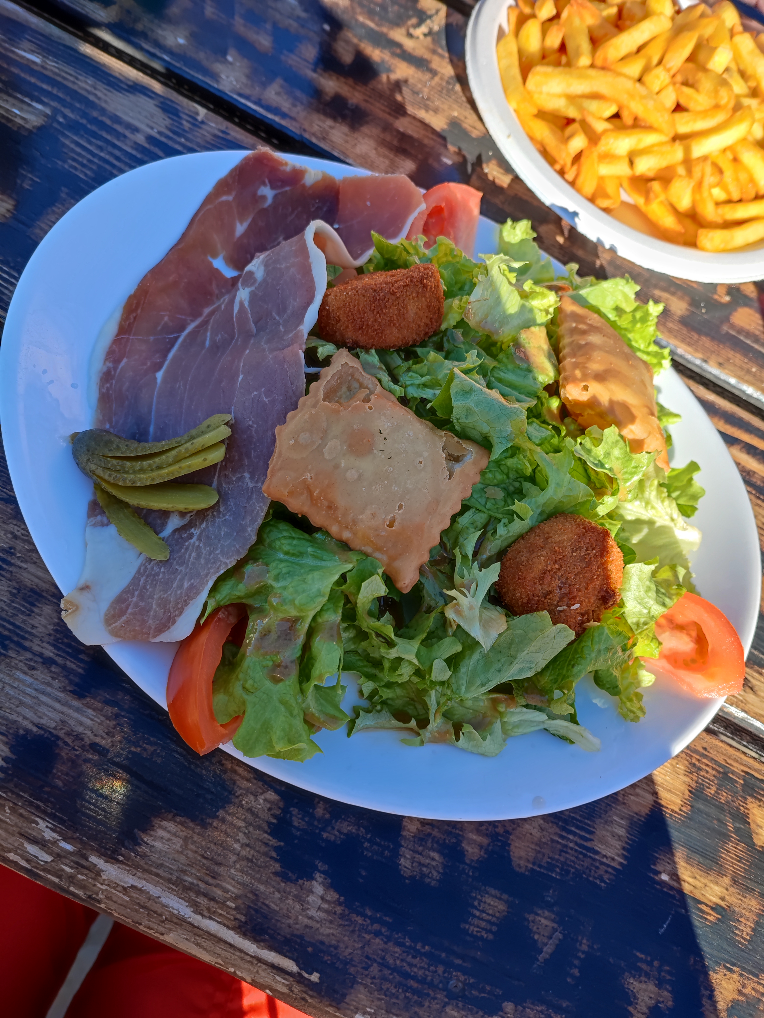 Nourriture plutôt bonne pour un prix correct. Belle terrasse ensoleillée. Il faudrait cependant installer plus de toilettes.