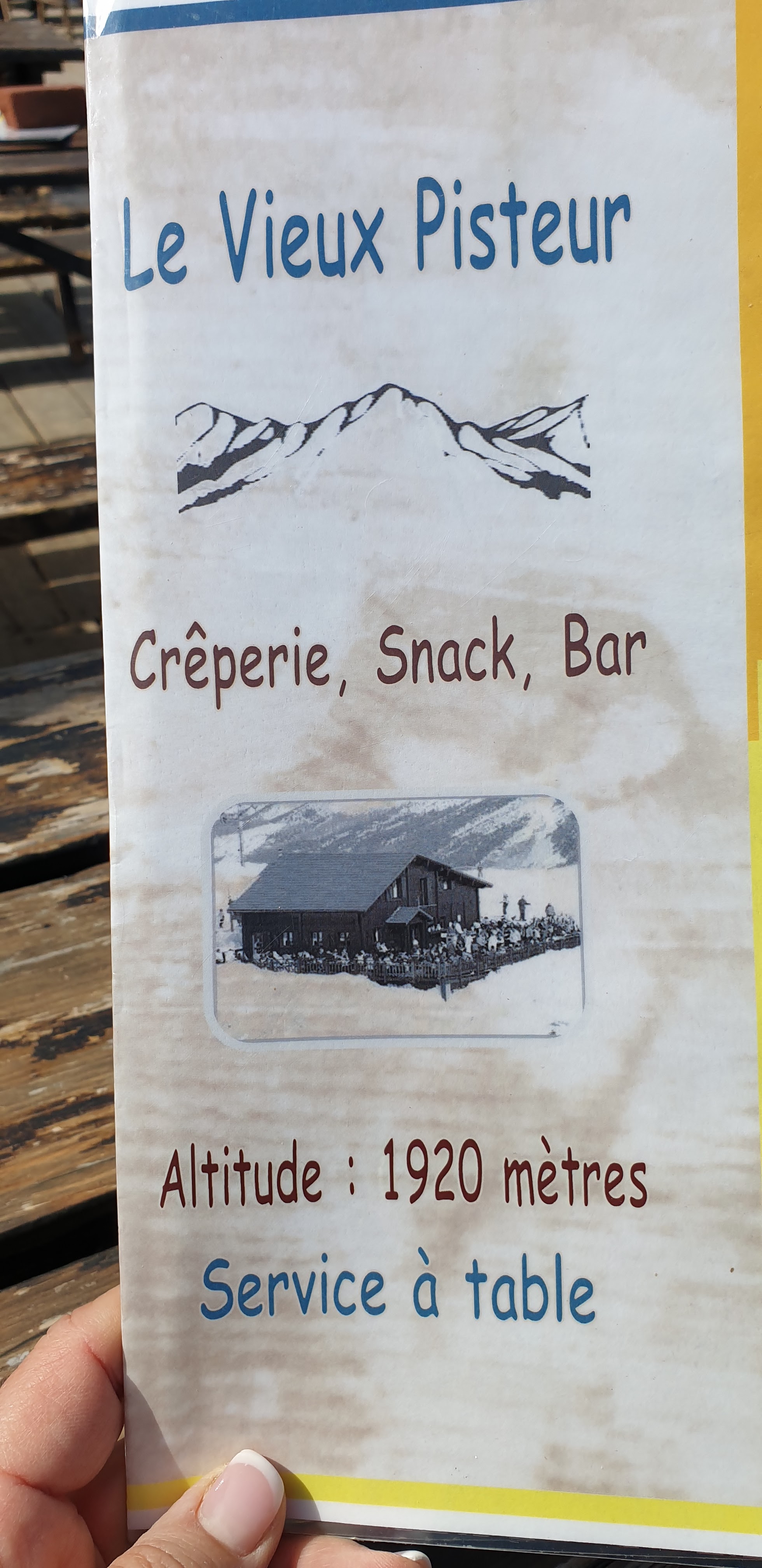 Super spot, super accueil par une dame, peut-être la gérante.... Nous avons déjeunés 2 crêpes salées, très correctes. En revanche, j'ai toujours refusé de boire du vin dans des gobelets plastiques même en pique-nique mais là, à 2000 M d'altitude c'était soit ça soit rien!!!😒🤣 La prochaine fois, je monte avec mon verre à pied!!! 👌🤣🤣