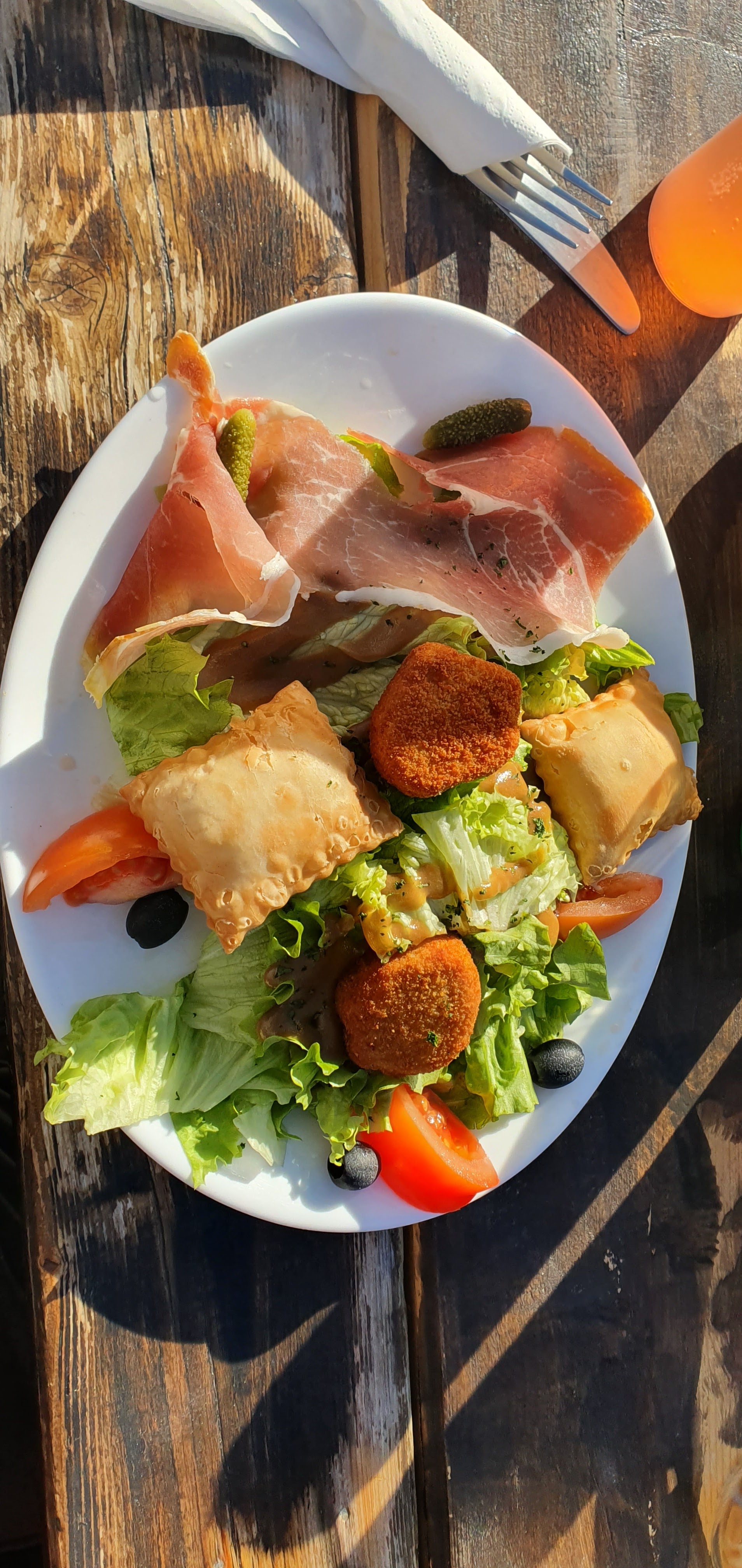 Personnel super sympa et efficace comme la nourriture en général excellente. Exposition idéale magnifique terrasse. A recommander ne changez rien.