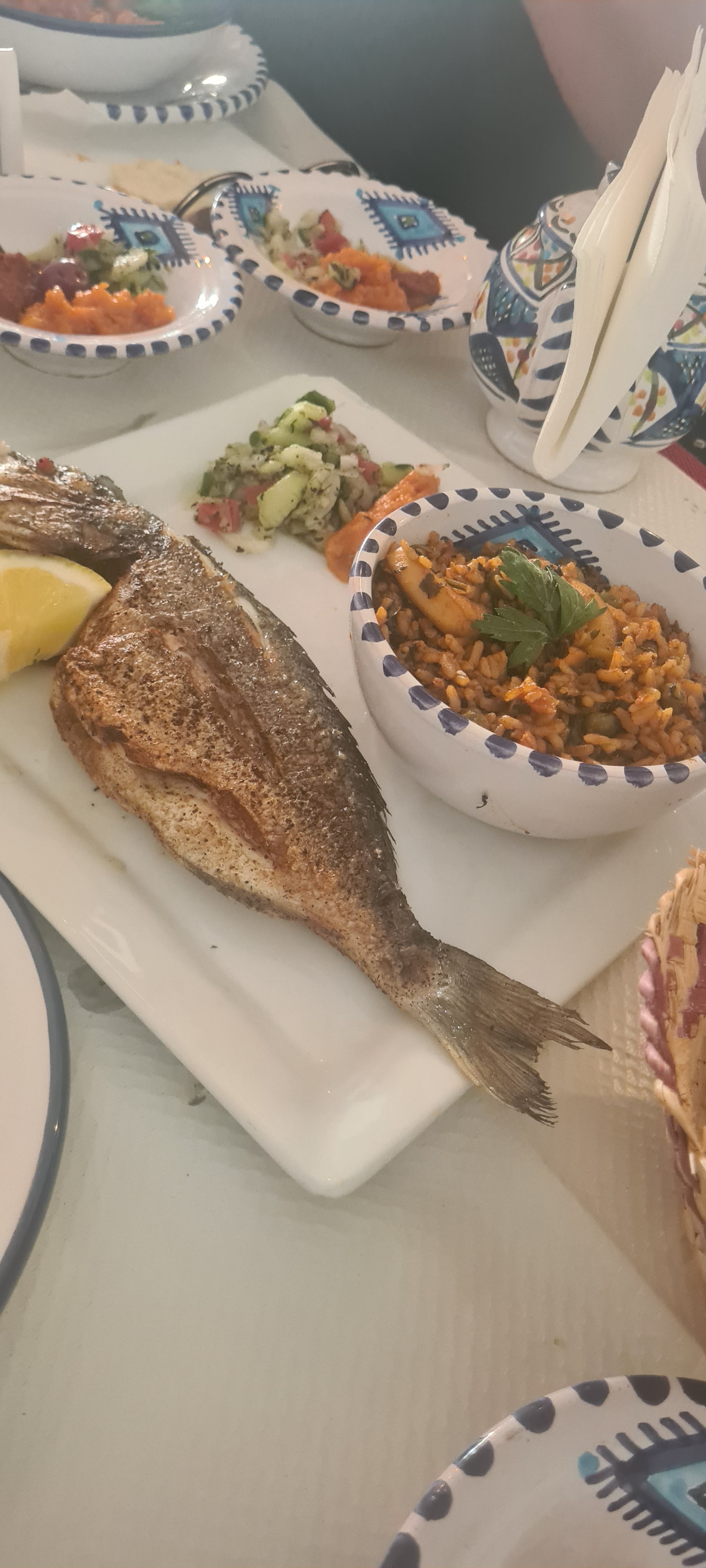 Très bonne ambiance, bon service Toutefois vraiment mais vraiment très déçu par les plats couscous poisson froid sauce sans goût vraiment a revoir le riz djerbien a éviter insipide .