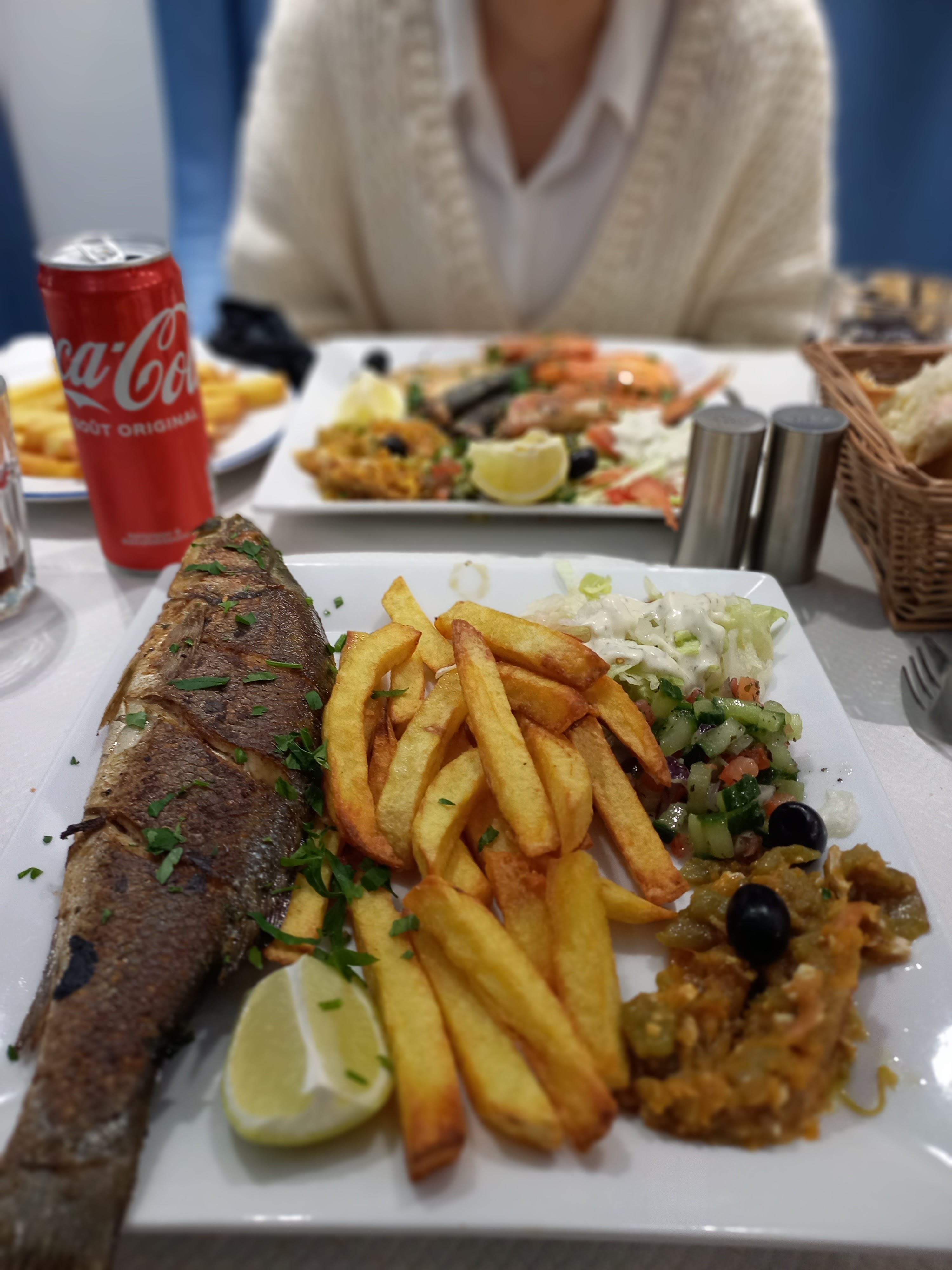 Très bon et personnel sympathique. Salade et thé offerts à la fin. Le couscous calamar est très bon dommage qu'il n'y avait pas avec osbane. La daurade grillée aussi très bonne. Rien à dire au top👌🏼.