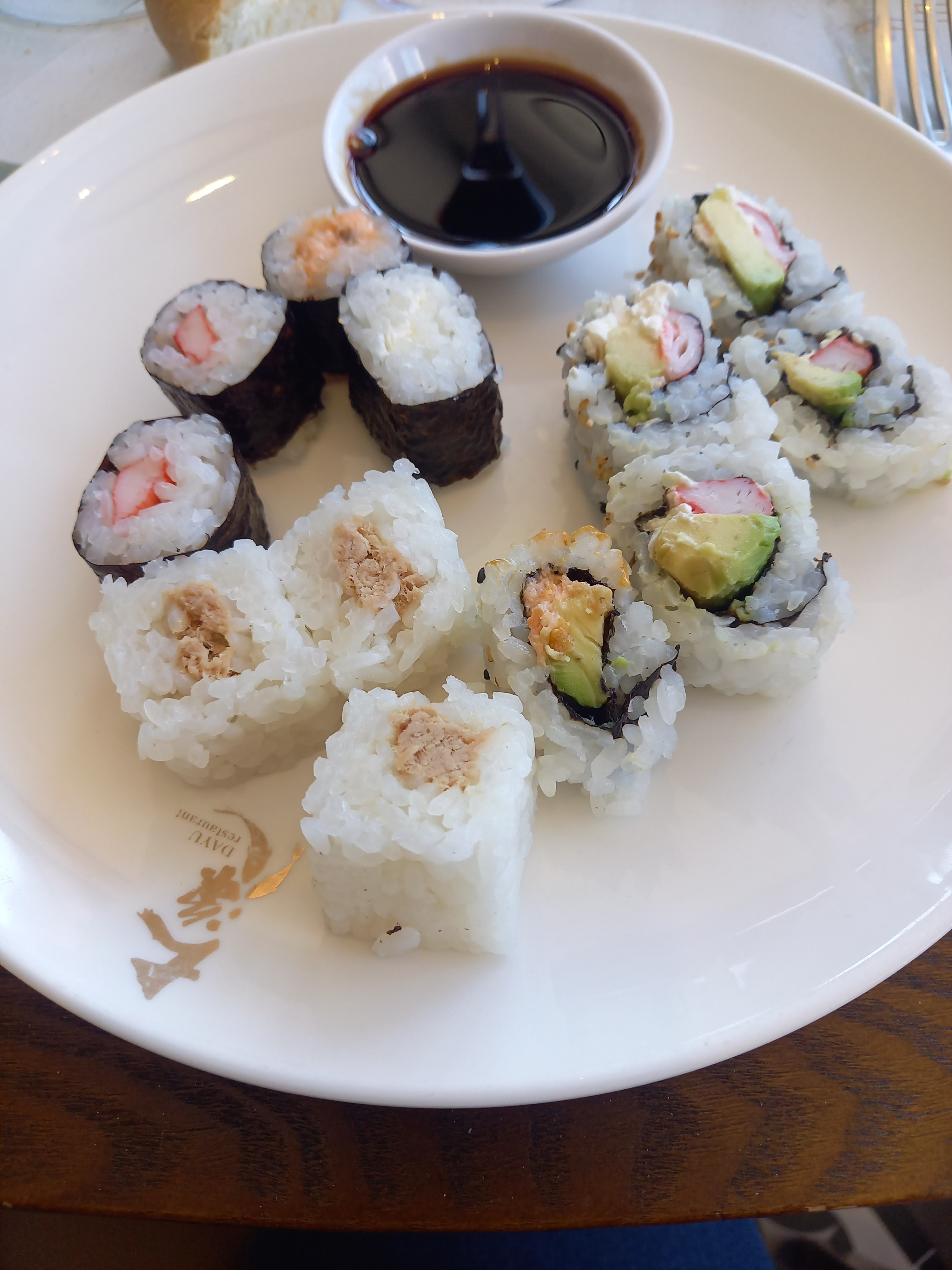 Les sushis sont bons pour un buffet à volonté, le choix des plats est varié mais pas pour les desserts, ça reste pour moi léger. La personne qui nous a placé est très froide, pas un sourire, à peine un bonjour ou un au revoir. Le prix reste convenable et les enfants de moins de 3ans ne payent pas. Point positif. Après ça reste un buffet à volonté comme on en voit de partout.
