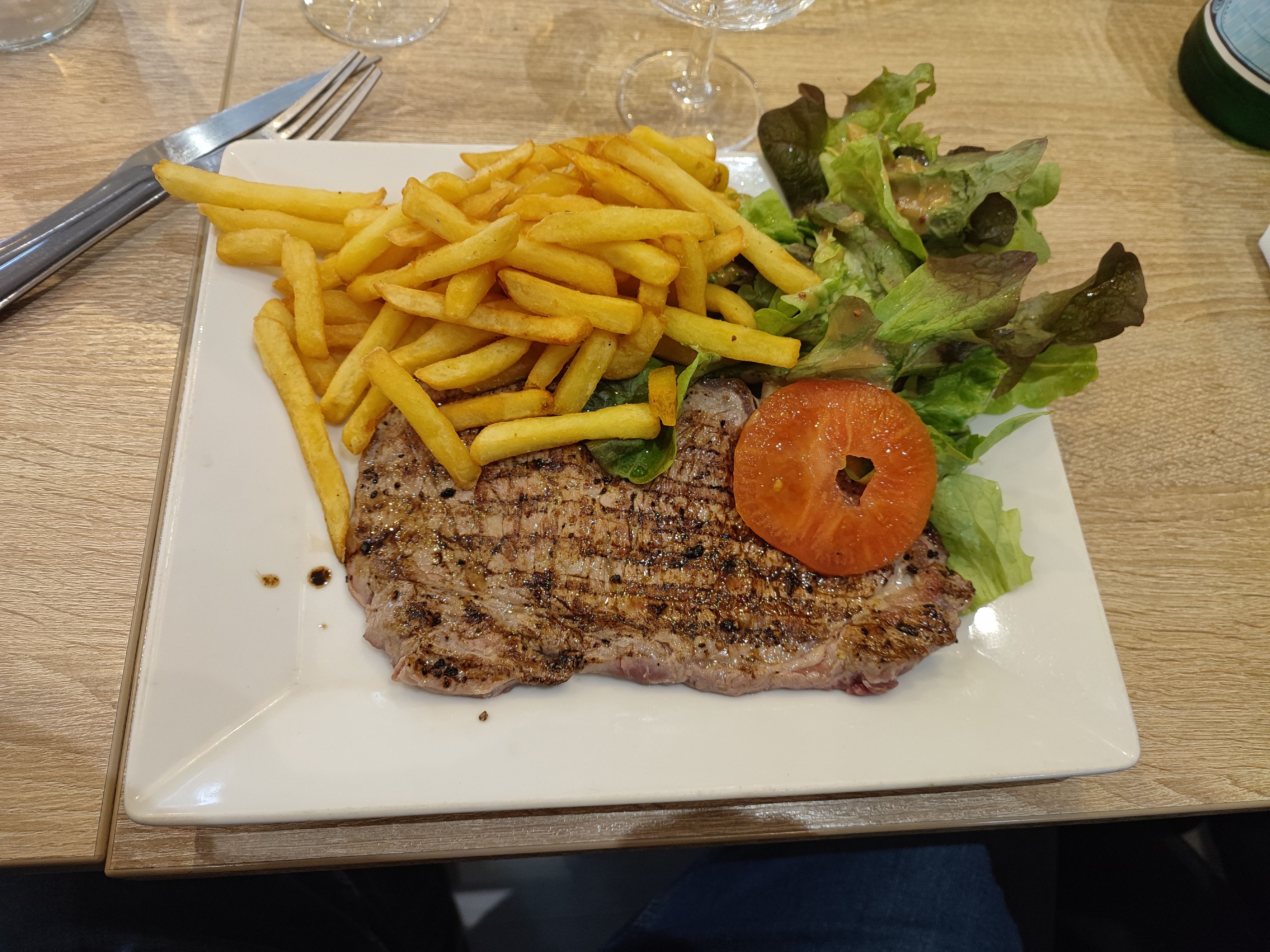 Alors, par où commencer, Accueil froid et pas cordial… le monsieur a pas voulu qu’on change de table car trop la flemme on suppose… Ensuite niveau nourriture : j’ai pris un steak qui ressemblait plus à une chambre à air qu’à un steak. Les pâtes étaient immangeables… Ma copine a pris un 1/4 de poulet qui était plutôt bon mais qui nous est rester à tout les deux sur le ventres… Bref adresse à fuir, il y a bien mieux ailleurs! Point positif: pas grand chose mis à part que la salade était pas si mal!