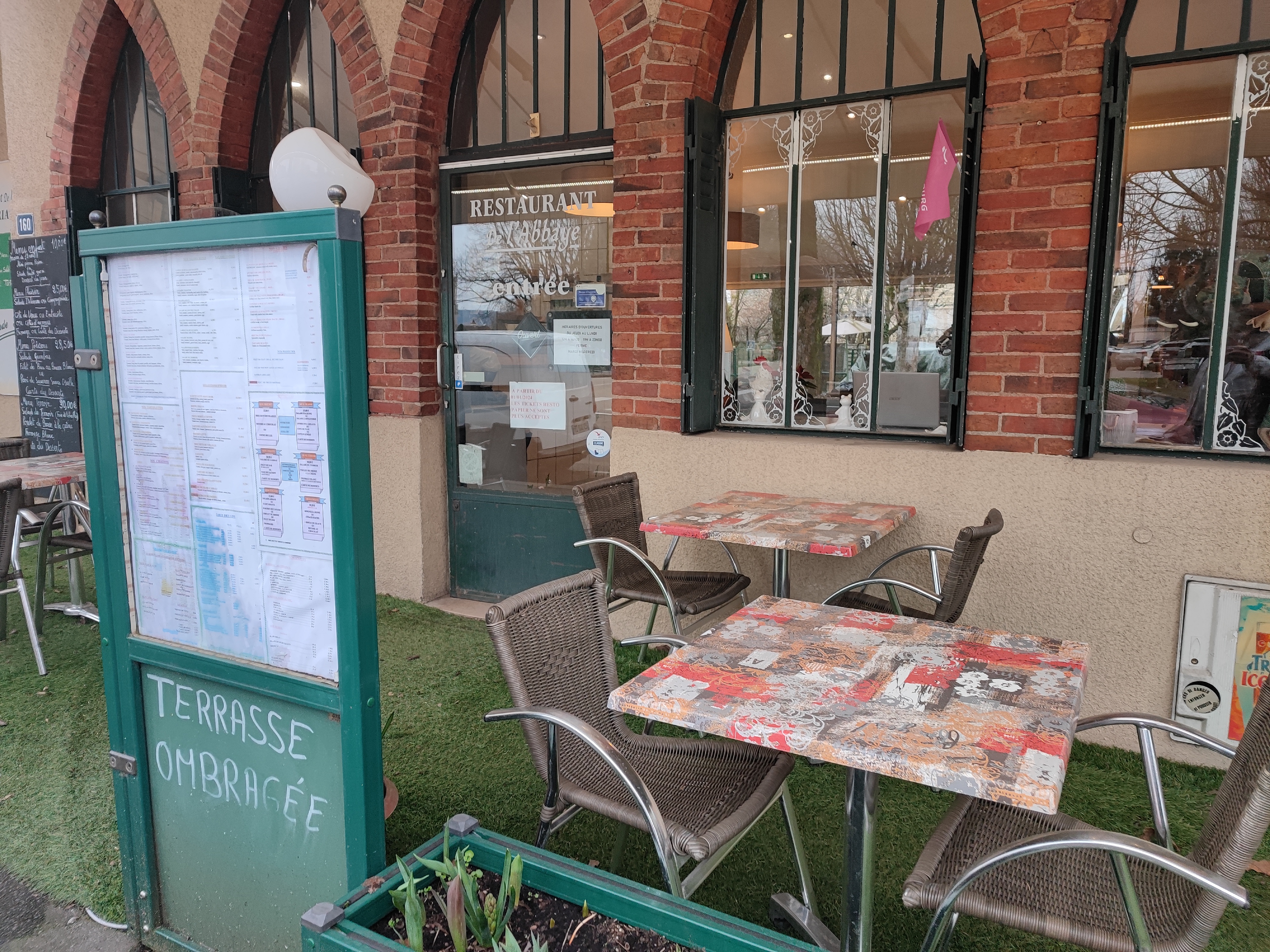 Cadre sympathique aussi bien à l'extérieur, le restaurant est situé en face de l'abbaye, qu'à l'intérieur. La cuisine est bonne et les serveurs souriants