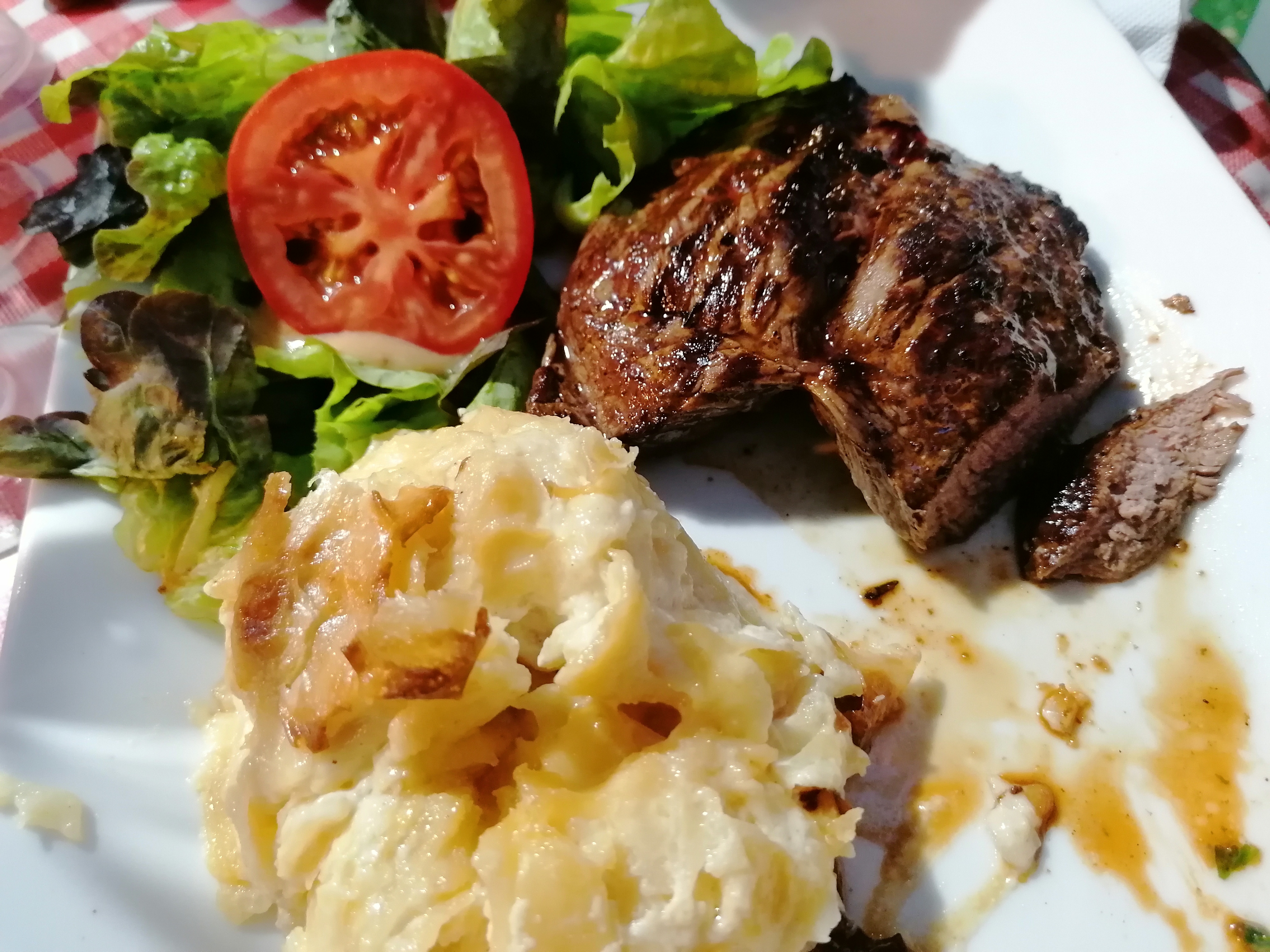 Rien d'exceptionnel. Frites surgelés. Gratin dauphinois idem. Viande demandée bien cuite arrivée à point. En rapport qualité prix je suis septique