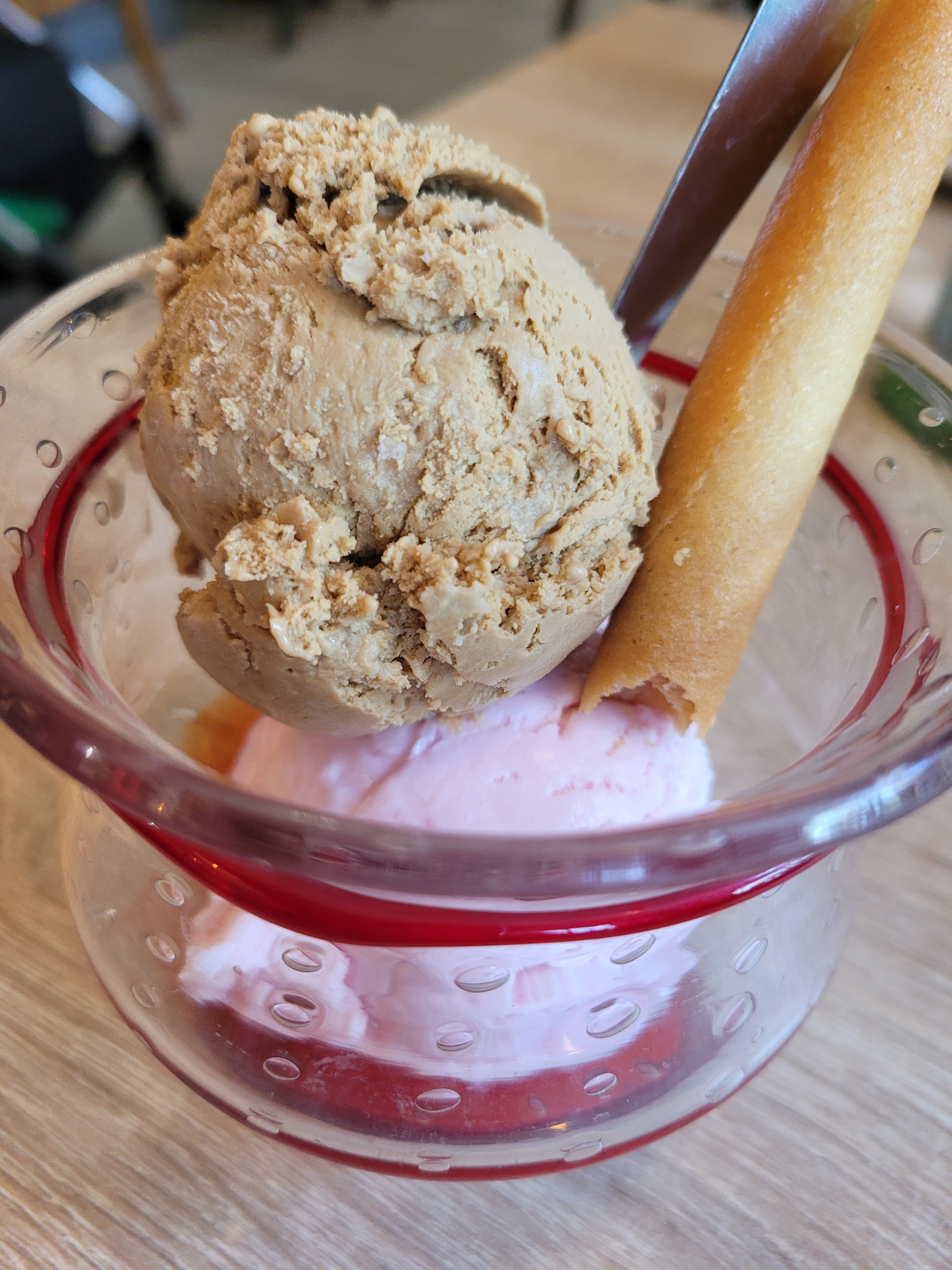 Très bon, pas trop d'attente, petit regret j'ai commandé une glace ardechoise avec de la glace aux marrons à la place café et pistache. Je recommande...
