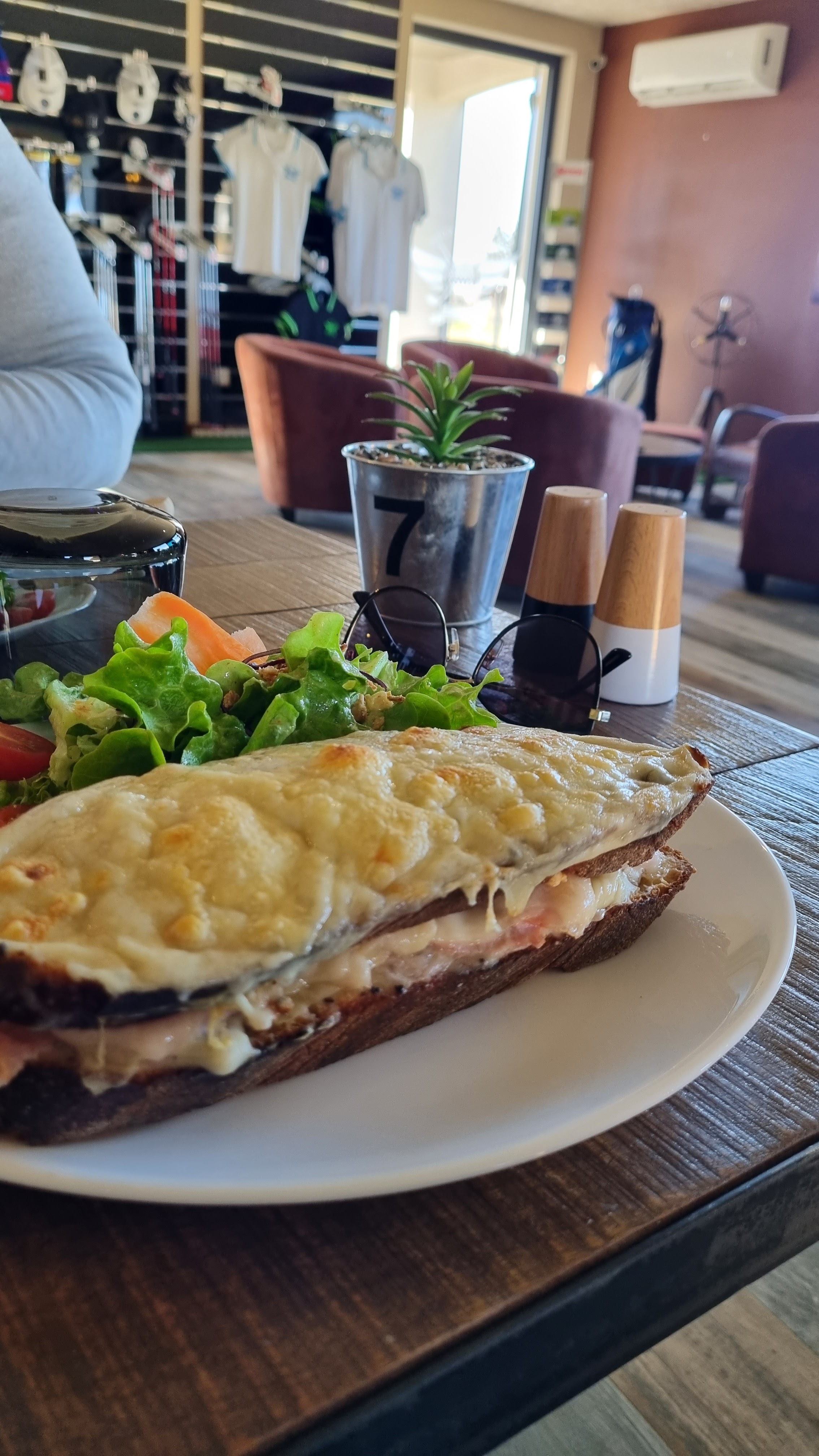 Très bon restaurant, proche de béziers produits frais de qualité. Du vrai fait maison .Coup de cœur pour le croc' truffes. Accueil très sympathique . Belle déco de ce club house face au practice de golf.Ça vaut un petit détour ..