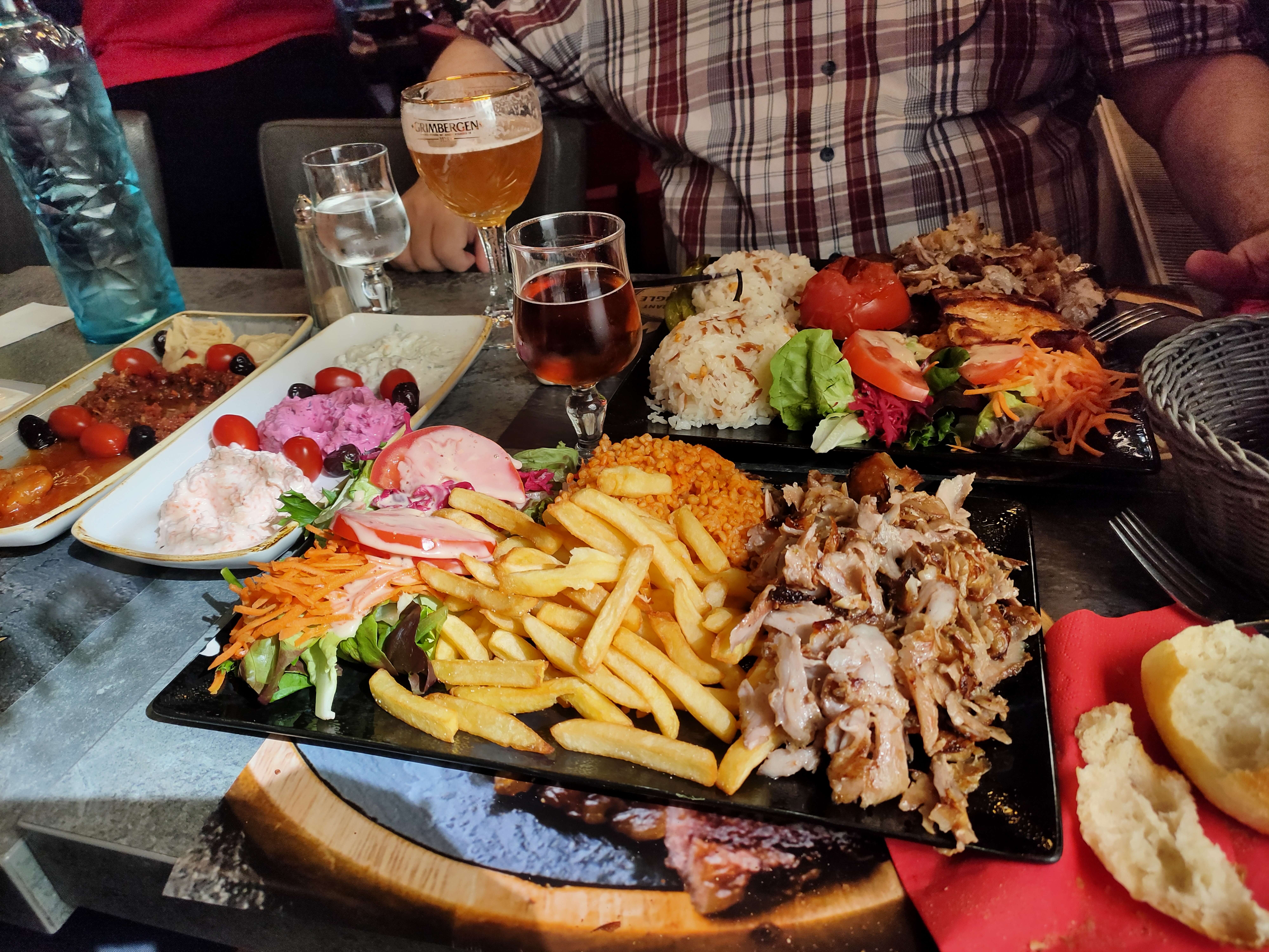 Malgré un effort des serveurs de rattraper la qualité de la nourriture, on quitte le restaurant avec un mauvais goût en bouche. Kebab qui dégouline de gras, frites molles... Lorsque qu'on part, nous disons bonne soirée à vous à celui qui nous encaisse (le grand/gros grisonnant) on aurait cru qu'on avait insulté sa mère, pas de réponse, regard médisant À éviter