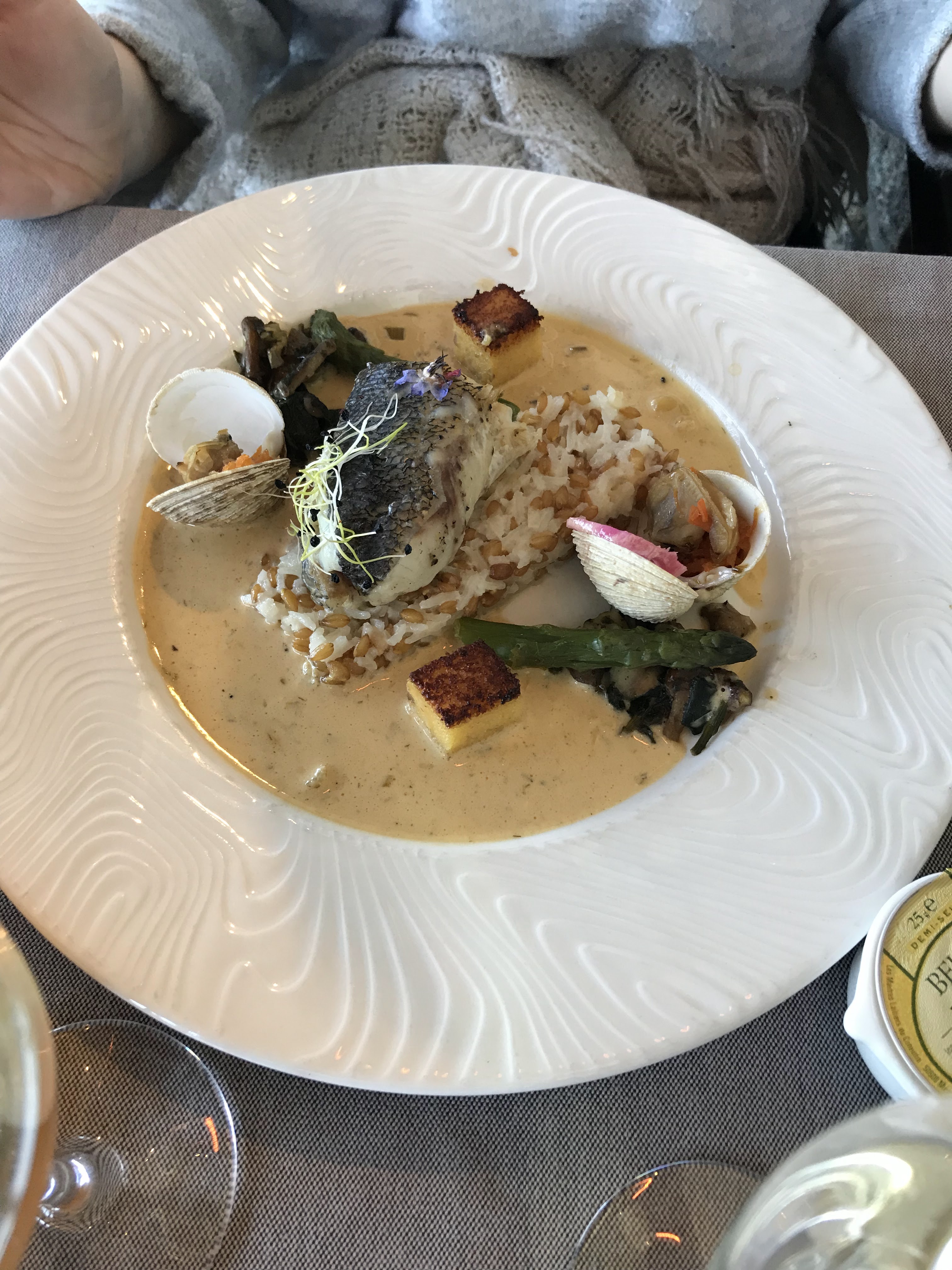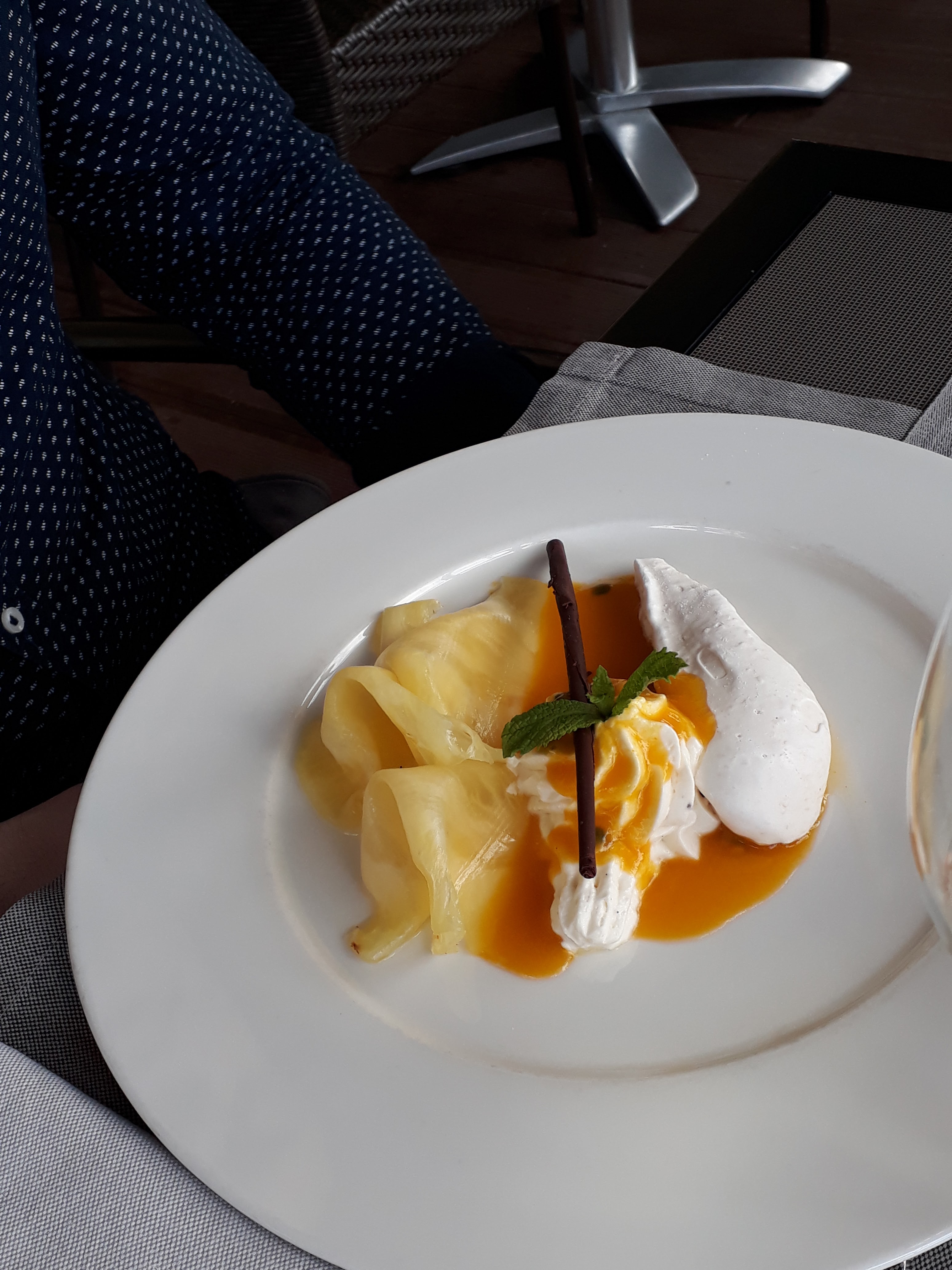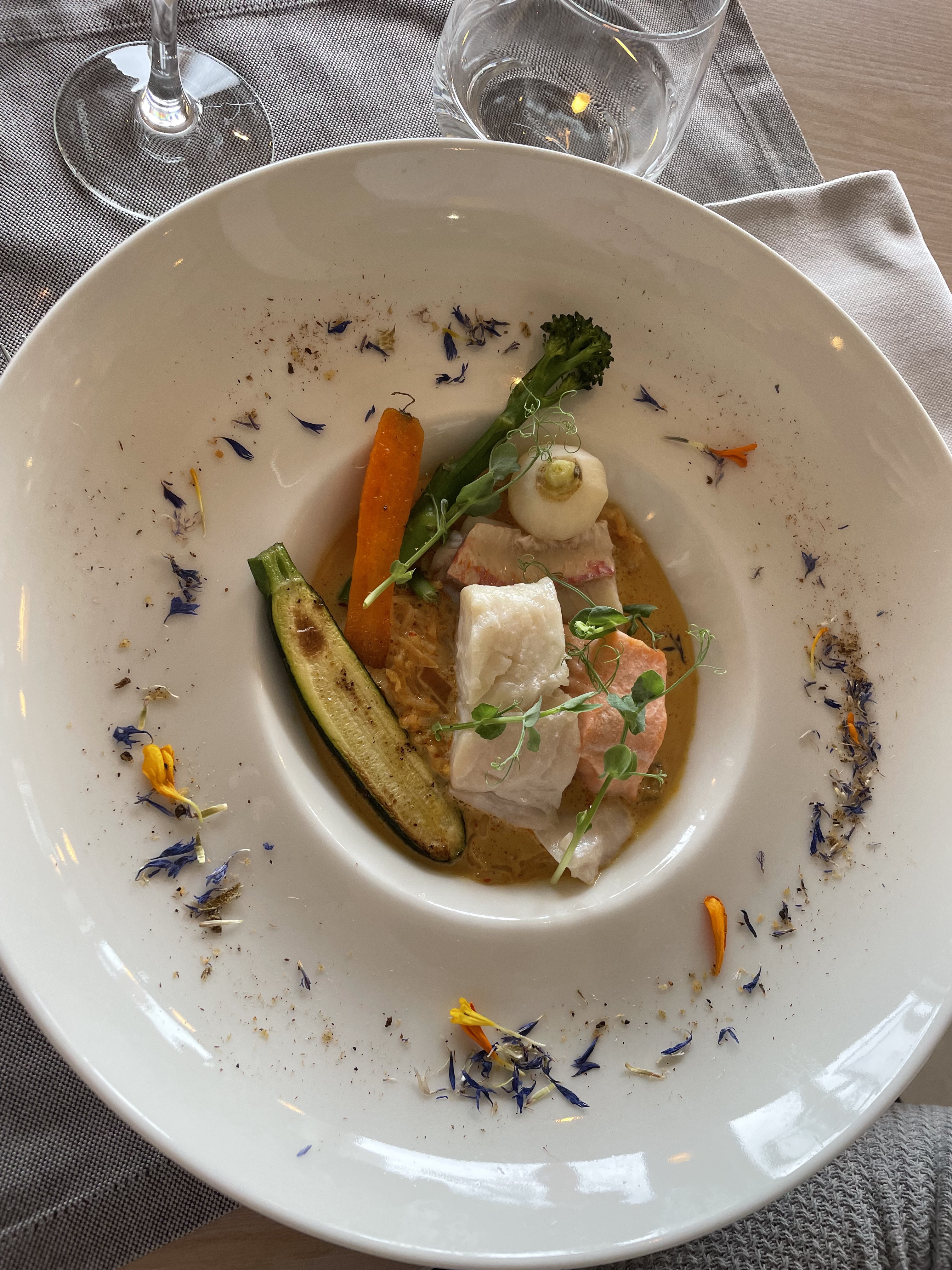 Nous avons eu la chance d'avoir une table prêt de la fenêtre et avons pu admirer le paysage, la vue mer. La cuisine est bonne, assez classique dans les saveurs, très joliement présenté. Le service presque trop rapide, même pas le temps de finir la dernière bouchée que l'assiette est enlevée... Mais tout le monde est aimable.