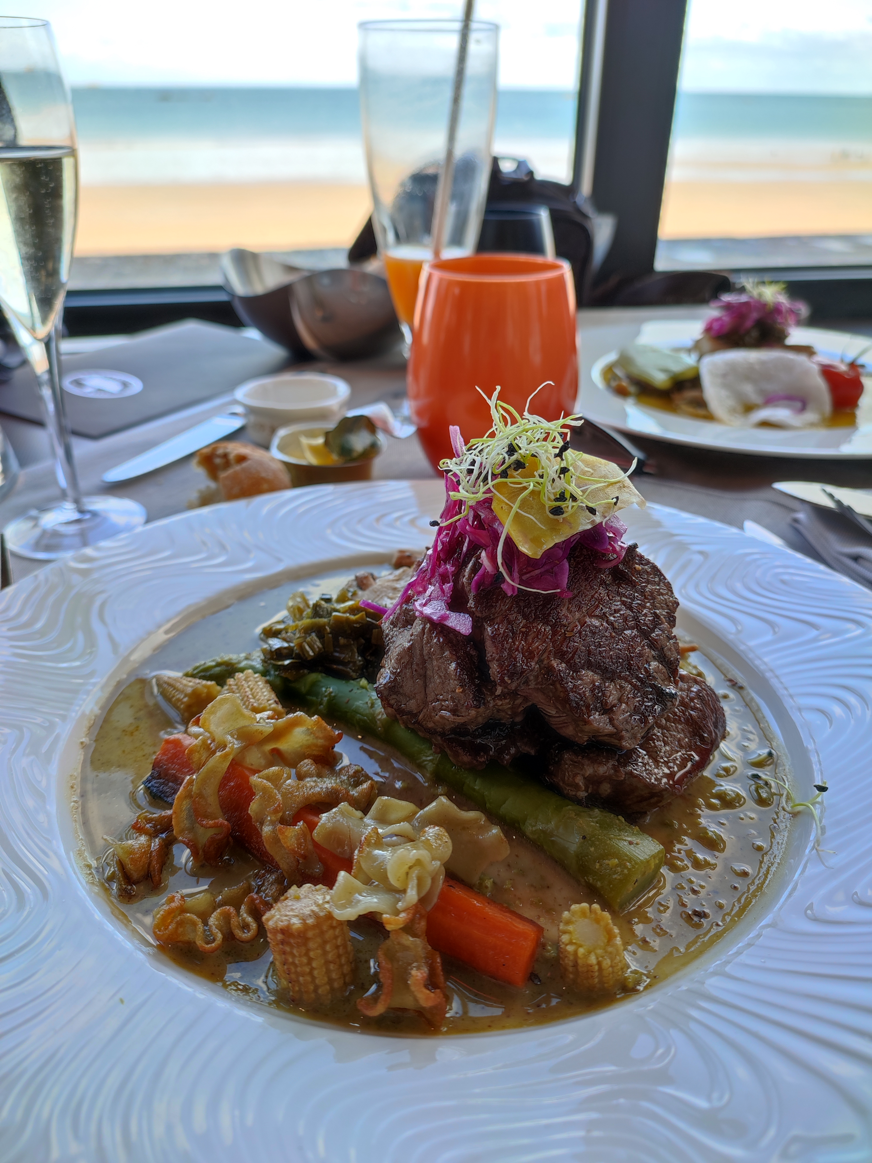 Les plats sont aussi beaux que bons. Le service très professionnel. Vue sur mer. Je recommande