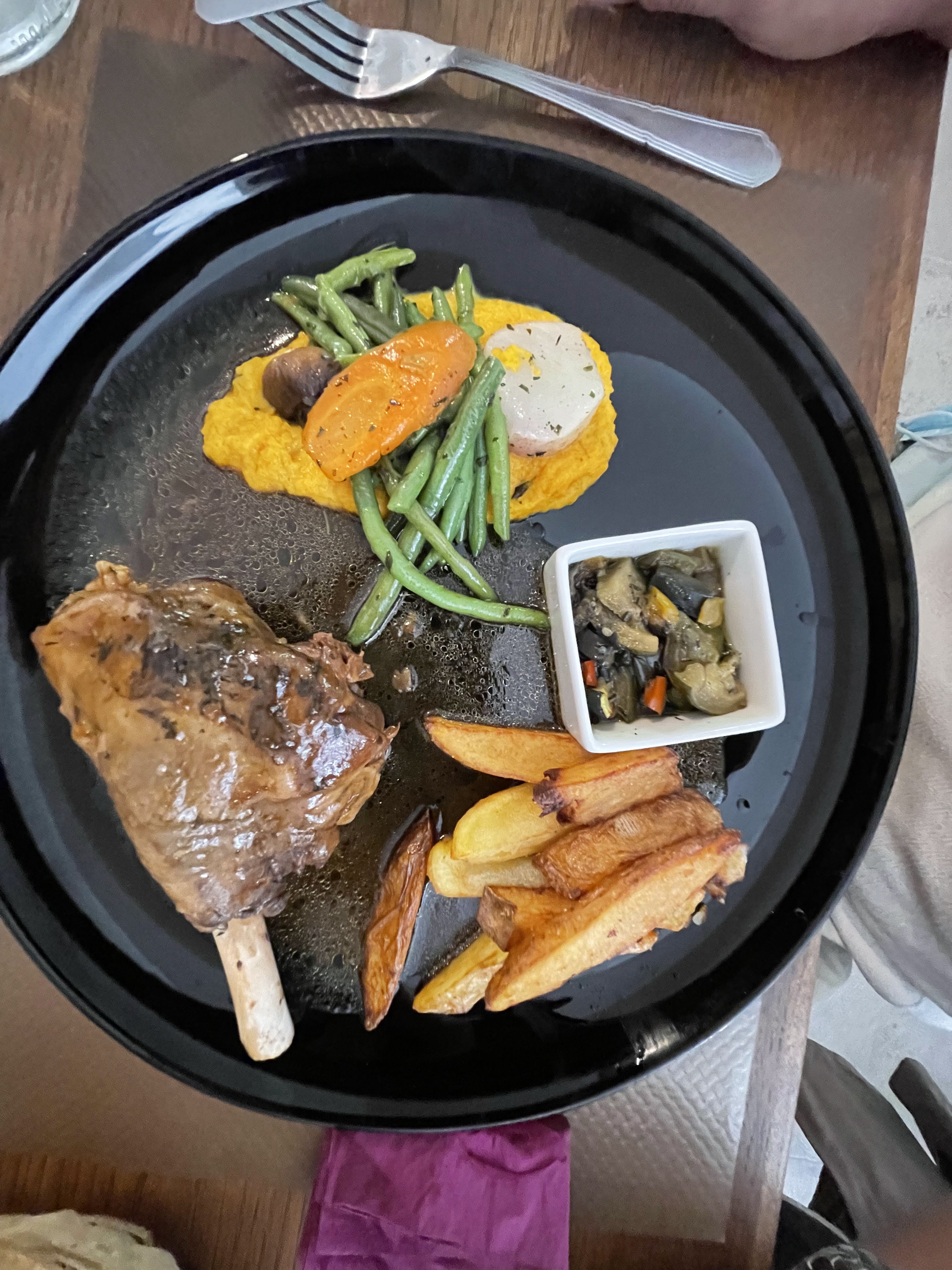Quoi de mieux que de mettre une photo d’une assiette vide pour prouver la qualité du plat .. cuisine faite maison, délicieuse.. une régalade dans un cadre charmant et le personnel très accueillant! Je recommande +++++ et encore +