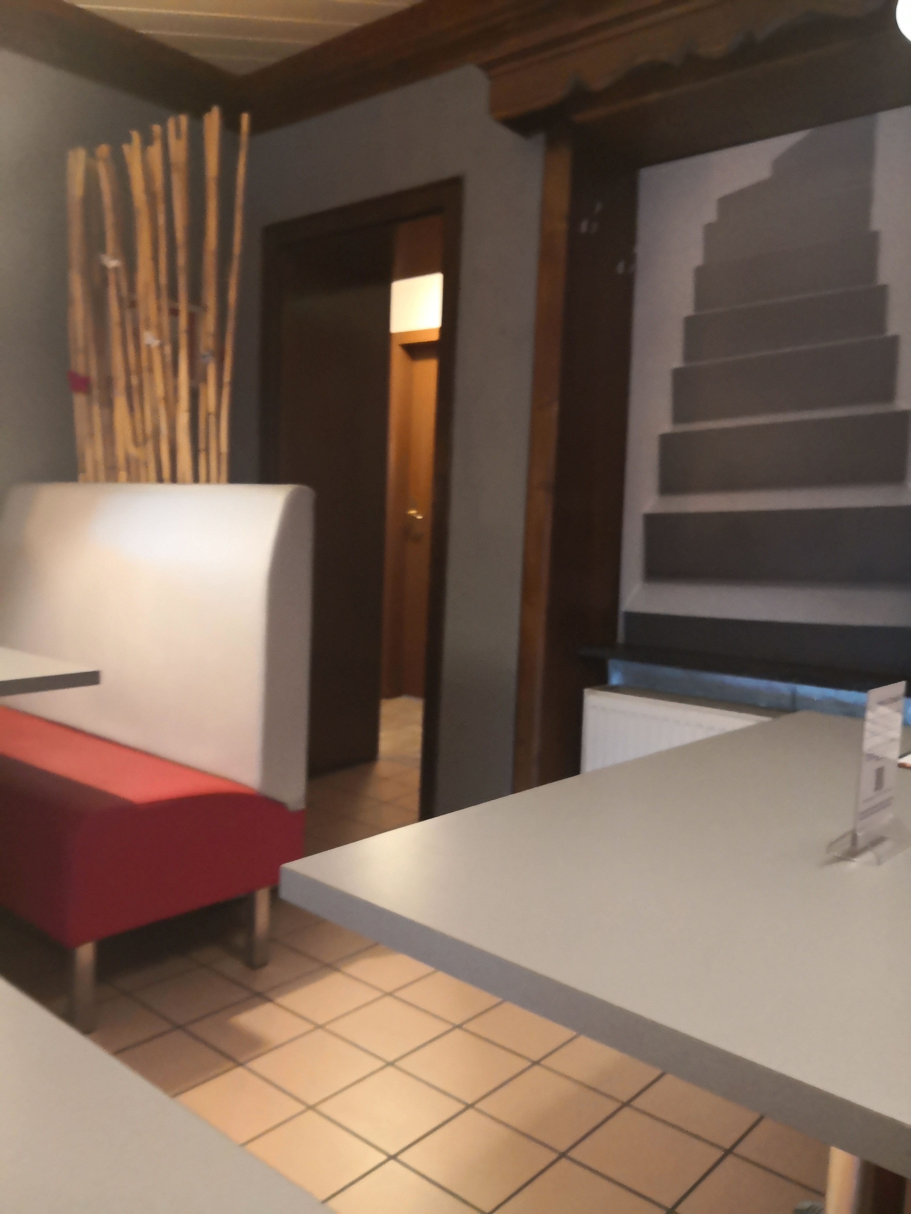 Personnel antipathique. Prix élevés. Il y a une terrasse de jardin qui peut être recouverte d'un store à moitié abaissé. Nous nous sommes assis à ciel ouvert car c'était une belle soirée. Dès que nous nous sommes assis, il faisait sombre au-dessus de nous lorsque les stores ont été encore étendus, même s'il restait encore quelques tables libres sous les stores. Nous nous sommes spécifiquement assis à ciel ouvert. Il n'y a eu aucune réponse à notre demande de relever à nouveau les blinds. Lorsque nous avons ensuite décliné l'apéritif et la carte des vins, la convivialité a pris fin. Résultat : notre bonne humeur avait disparu. Ensuite, nous avons reçu la tarte flambée que nous avions commandée, qui a été brûlée à de nombreux endroits. Je n'y retournerai pas !