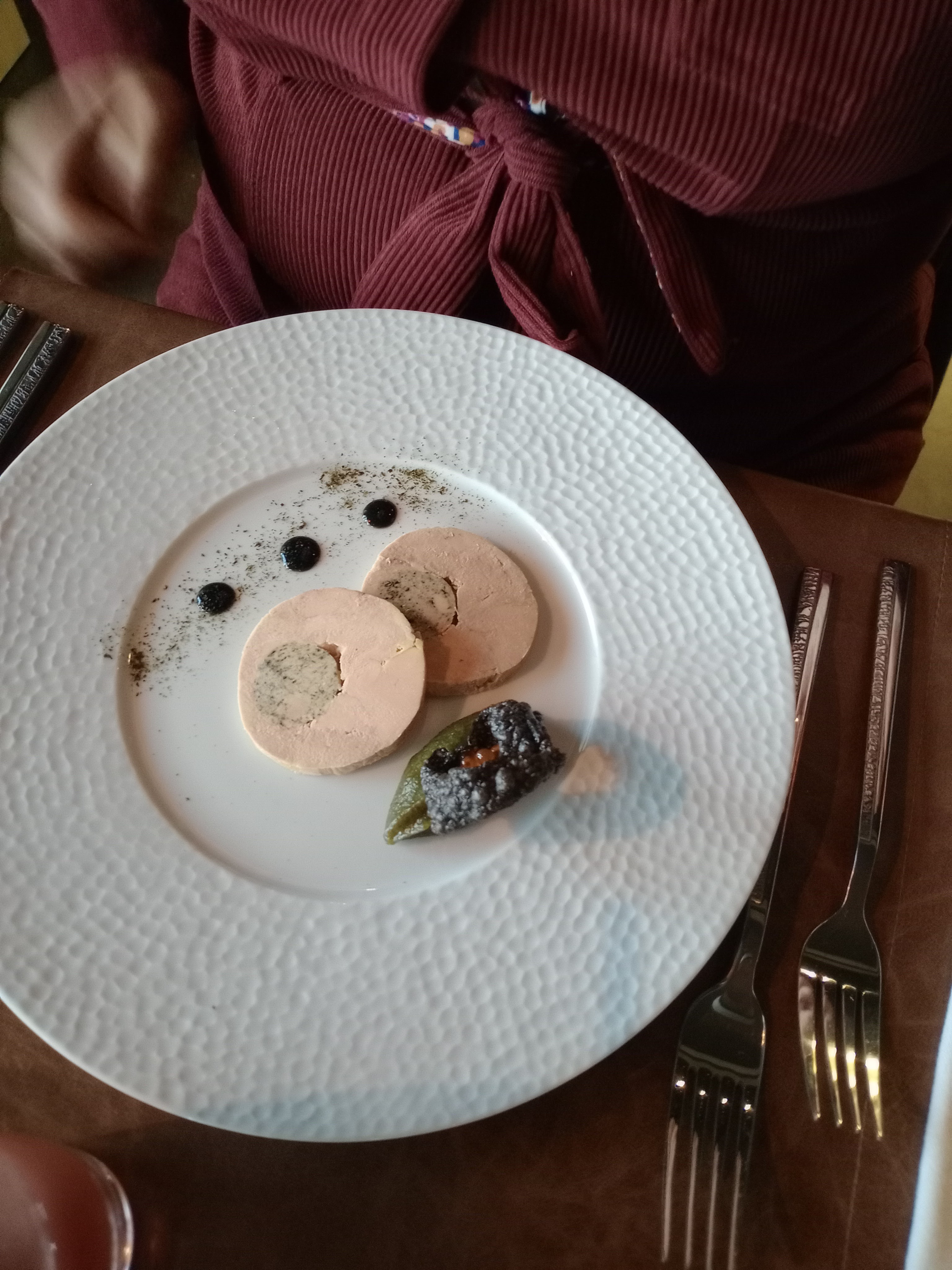 Entrée : belle tranche de foie gras Plat : bien cuisinée mais peu copieux pas beaucoup de légumes idem pour le dessert. Si non Beau cadre. A vous de voir