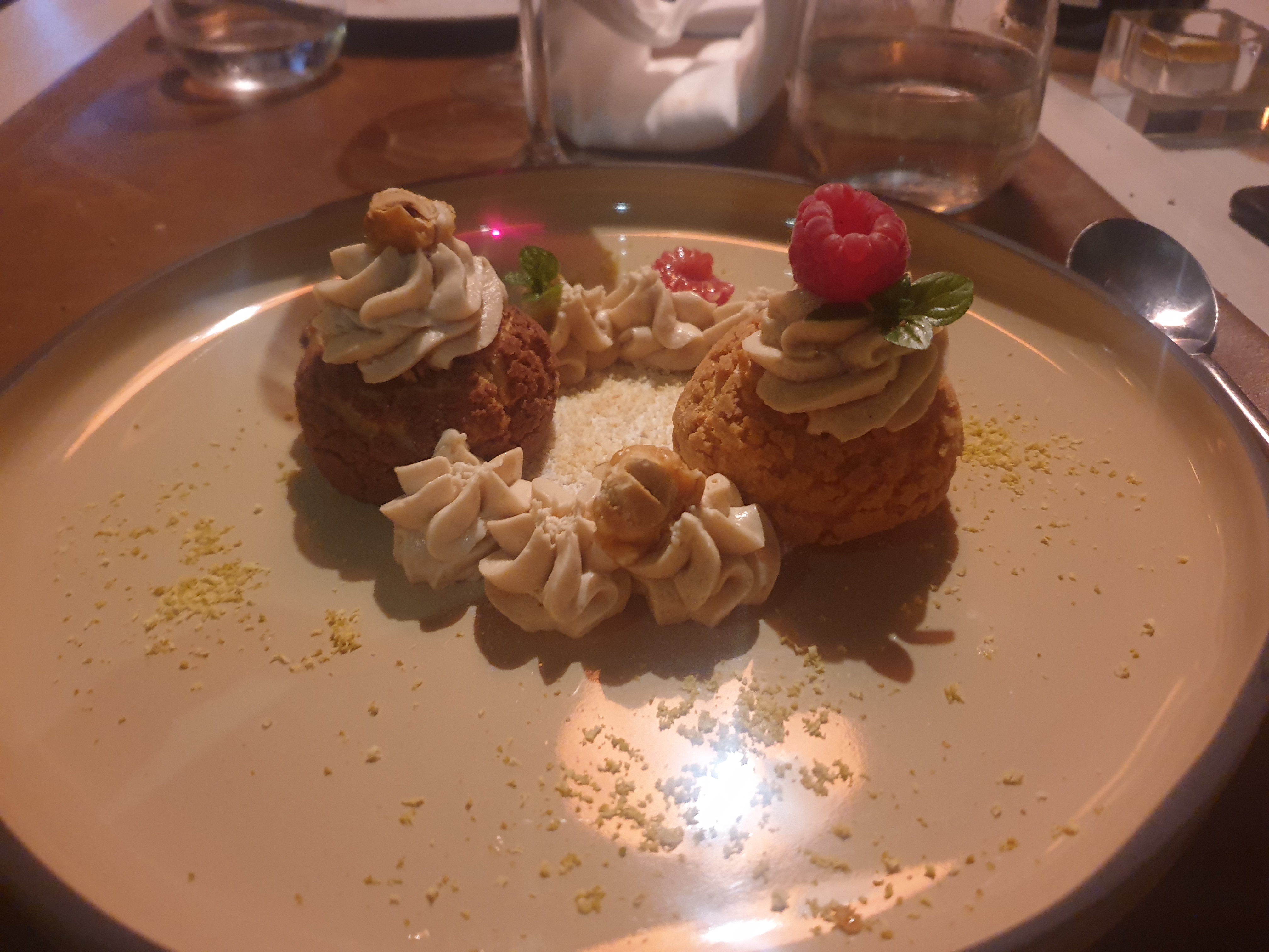 Joli cadre, accueil agréable. Nous avons pris le menu à 35€: huîtres pochées en entrée, juste minimaliste. Pour suivre un turbot en balotine cuit vapeur et purée de carotte, bien cuisiné mais hyper petite proportion. En dessert 2 choux craquelin pistache, délicieux. En conclusion , bien cuisiné mais vraiment trop juste en quantité. Nos hommes on prit un dessert à la maison en rentrant !