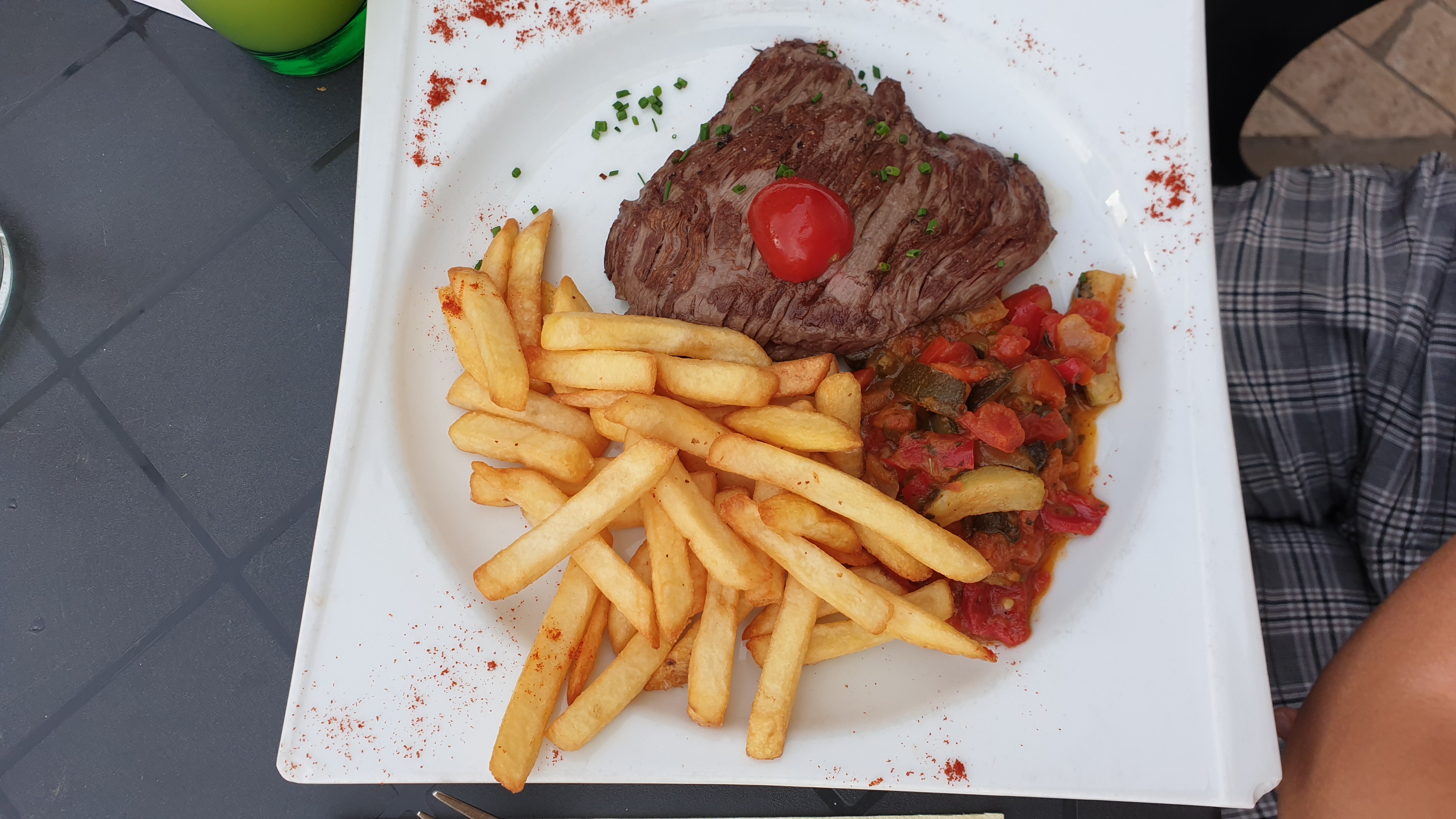 Conseil du serveur : une côte de bœuf ...on m'a servi un morceau de viande qui s'est avéré immangeable. Mon couteau n'arrivait pas à couper les nerfs et tendons. J'ai tout laissé dans l'assiette après que le serveur m'ait apporté un autre couteau qui n'a pas fait mieux. Frites congelées, légumes en très faible quantité, vin quelconque...propreté à revoir. A fuir.
